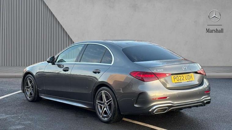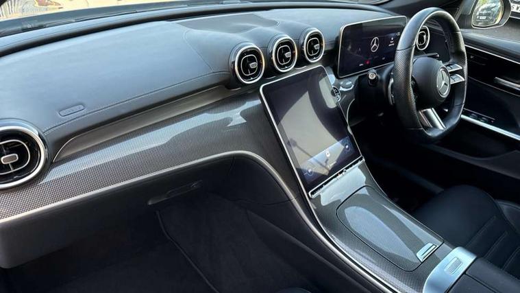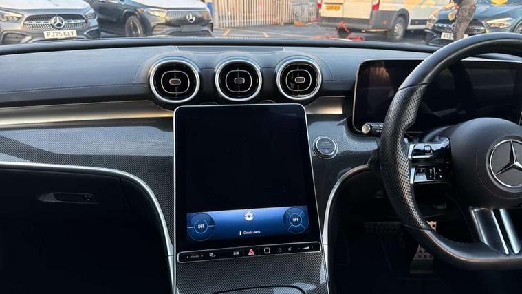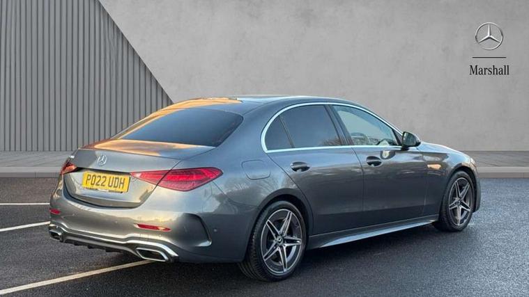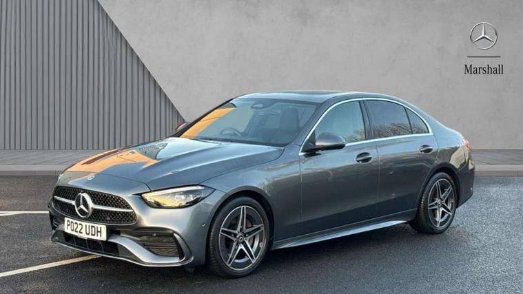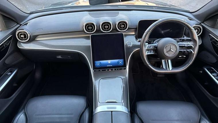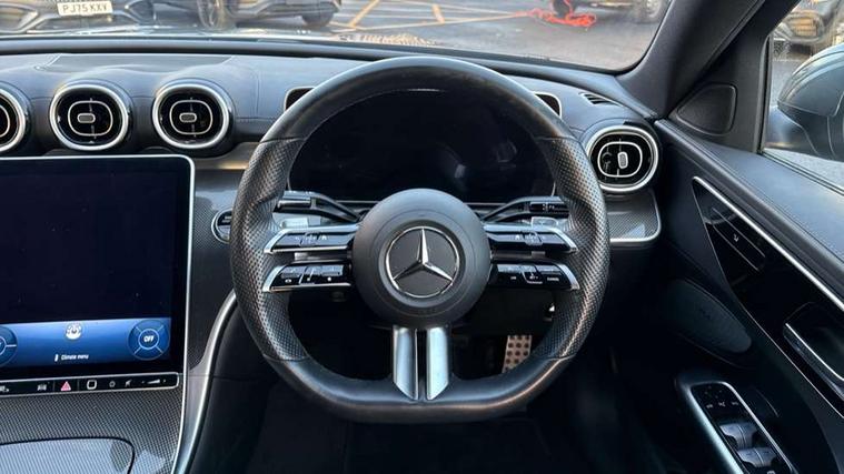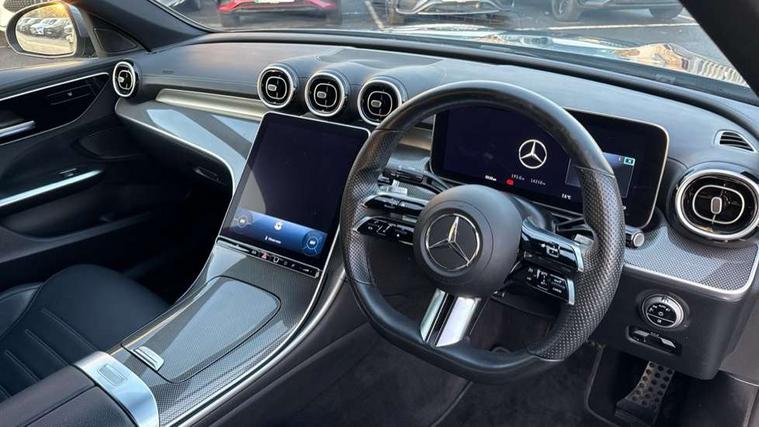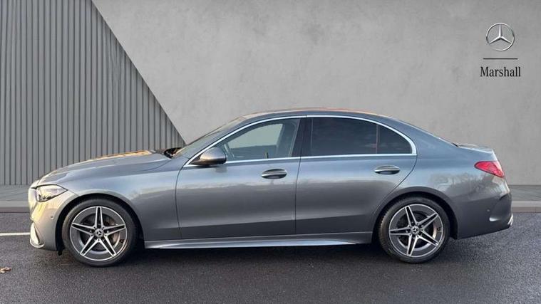 11.9" high resolution multimedia colour display, 12.3" digital instrument cluster display, Active blind spot assist, Active brake assist plus, Active lane keeping assist, Attention assist, Cruise control with speedtronic variable speed limiter, DYNAMIC SELECT with a choice of driving modes (ECO, Comfort, Sport, Sport+ and Individual), E-call, Extended MBUX functions, Finger print sensor, Fluorescent jacket for driver, MBUX navigation premium, MBUX voice control activated by keywords "Hey Mercedes", Mercedes connect me, Mercedes me remote services, Outside temperature gauge, Pre-installation for digital key transfer, Remote boot release, Service indicator (ASSYST), Smartphone integration, Sports direct steer speed sensitive steering, Status display for rear seat belts in instrument cluster, Wireless charging system for mobile devices, 66l fuel tank with increased capacity, 9G TRONIC 9 speed automatic transmission, Petrol Particulate Filter, Sports suspension with selective damping system and lowered by 15 mm, Sporty engine sound system, DAB Digital radio, MBUX multimedia system, Steering wheel mounted audio controls, Adaptive brake lights, Adaptive high beam assist, AMG body styling front apron, rear apron and side skirts, AMG front bumper with sporty air intakes and chrome elements, AMG rear bumper with high gloss chrome elements, AMG side skirts in vehicle colour, B-pillar trim in glossy black, Body coloured bumpers, Body coloured door mirrors, Chrome beltline trim, Daytime running lights, Electric windows with one touch opening/closing and obstruction sensors, Electrically adjustable and heated door mirrors, Green tinted glass, LED high performance headlamps, LED Indicators, LED tail lights, LED third brake light, Powerdomes on bonnet, Privacy glass, Radiator diamond grille with integrated Mercedes Benz star and louvre silver with chrome pins, Radio aerial integrated into rear window, Rain sensor with automatic windscreen wiper activation, Rear boot, Rear side wing doors, Side windows surround in polished aluminium, Two visible exhaust pipes integrated into rear bumper, 3 spoke flattened bottom AMG multifunction steering wheel in black nappa leather with chrome inserts and perforated leather in grip area, AMG sports seats, Auto Mercedes-Benz child seat recognition sensor, Black air vents with silver chrome elements, Black floor mats with AMG lettering, Black roof liner, Door trim elements high gloss black with silver chrome surroundings and switches, Double cupholder in centre console, Folding rear seat backrest, Front and rear head restraints, Front centre armrest with storage compartment, Front door sills with Mercedes Benz lettering, Gearshift paddles on steering wheel, Heated front seats, Illuminated glove compartment stowage, Leather upholstery, Manually height and reach adjustable steering column, Overhead control unit in high gloss black, Rear top tether child seat ISOFIX attachment, Single front passenger seat, Sports pedals with stainless steel surfaces and rubber studs, Sunvisors with illuminated vanity mirrors, THERMATIC 2 zone automatic climate control, Interior lighting package - C Class, Mirror pack - C Class, Parking package with reversing camera - C Class, Seat comfort pack - C Class, Stowage space pack - C Class, USB package - C Class, 3 rear 3 point seatbelts, Active bonnet pedestrian safety measure which detects an impact and raises bonnet, Adaptive brake system with HOLD function and brake drying in the wet, Anti-lock braking system (ABS), Black seat belts, Brake calipers with Mercedes-Benz lettering + perforated front brake discs, Child proof door locks, Drivers knee airbag, Drivers pelvis airbag, Dual stage driver/passenger airbags, Electric parking brake, Electronic Stability Programme (ESP), Front centre airbag between driver and front passenger seats, Front side airbags, Larger brake discs on front axle, Rear passenger airbag, Rear seatbelt warning indicator, Sports braking system with perforated front disc brakes, Tyre pressure monitoring system, Warning triangle and first aid kit, Window airbags, Central locking with interior switch, automatic locking and crash sensor with emergency opening function, Chrome surround electric key, Urban guard vehicle protection - Thatcham Category 1 consisting of breakin, anti-theft alarm system (ATA), interior monitoring and tow away protection, Artico man-made leather dashboard with contrast stitching, Centre console trim in metal weave, 18" AMG 5 spoke design aerodynamically optimised alloy wheels painted in tantalite grey with high sheen finish, Summer tyres, TIREFIT with tyre inflation compressor,