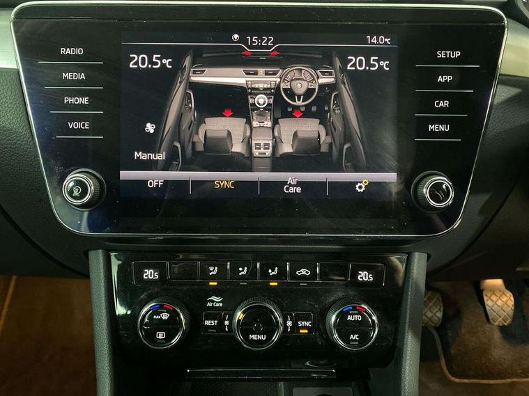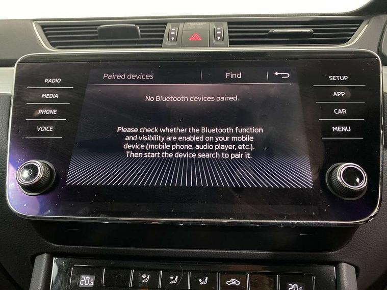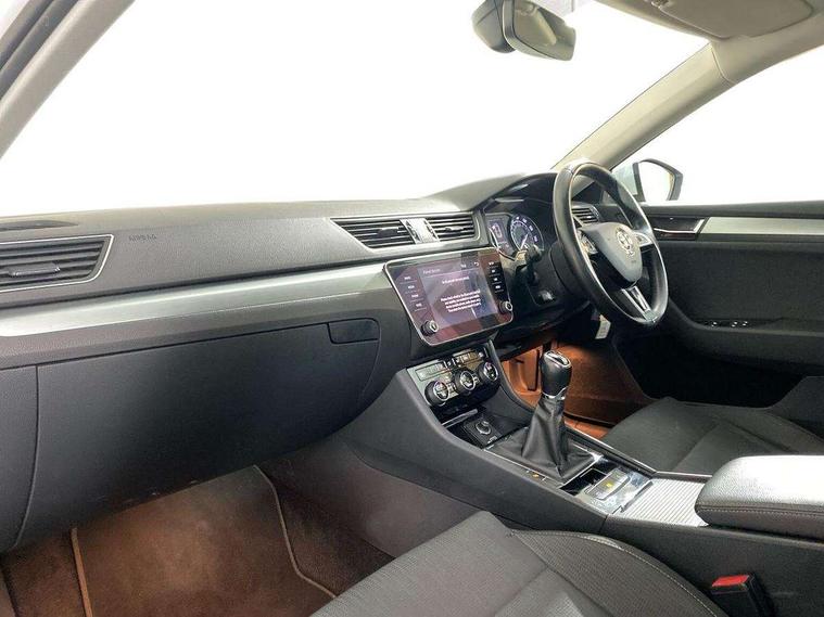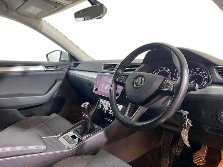 Adaptive cruise control, Bluetooth system, CareConnect and Emergency Call, Driver fatigue sensor, Electromechanical power steering, External temperature gauge, Front assist including automatic braking function, Remote fuel cap release, Service interval indicator, Speed warning indicator, Stop/start engine system and energy recovery, Voice control system, XDS+, DAB Digital radio, In-car voice enhancement, Aero wiper + intermittent function, Auto dimming rear view mirror, Body colour bumpers, Body colour door mirrors and handles, Chrome plated radiator grille, Cornering front fog lights, Electrically folding door mirrors with illuminated boarding spots, Front and rear electric windows, Fuel filler cap, Heated/electric door mirrors with integrated indicators, LED brake lights, Rain sensor, 12v power point in centre console, 12V power point in luggage area, 3 rear height adjustable headrests, Auxiliary heater, Front armrest with storage box, Height adjustable drivers seat, Height adjustable front and rear head restraints, Height adjustable passenger seat, Height/reach adjust steering wheel, Illuminated air conditioned glovebox, Illuminated luggage compartment, Interior lights with control switches, Isofix child seat fittings on outer rear seats, Leather gearknob and handbrake lever, Manual lumbar support, Overhead glasses storage compartment, Rear centre armrest with cupholders, Removable LED light in boot, Removable rear parcel shelf, Split folding rear seats, Ticket holder, Umbrella compartments in front doors with umbrellas, Small Leather pack - Superb, 3 point height adj front seatbelts + pretensioners, 3 rear 3 point seatbelts + pretensioners, 7 airbags - Front, front side, curtain, driver's knee airbag with front passenger deactivation switch, Door open warning, Driver and passenger seatbelts with warning light, Electronic parking brake, ESC including ABS, EBV, MSR, ASR, EDS, HBA, DSR, RBS, CBC, multi-collision brake (MKB) and Auto hold, Rear door child safety locks, Tyre pressure monitor, Alarm with interior monitoring tilt sensor and back up horn, Electronic engine immobiliser, Remote central locking with SAFE system,
