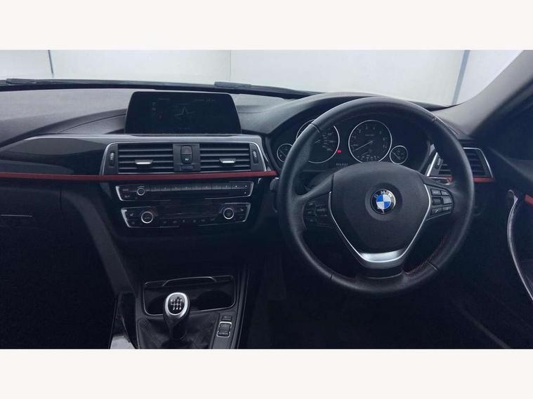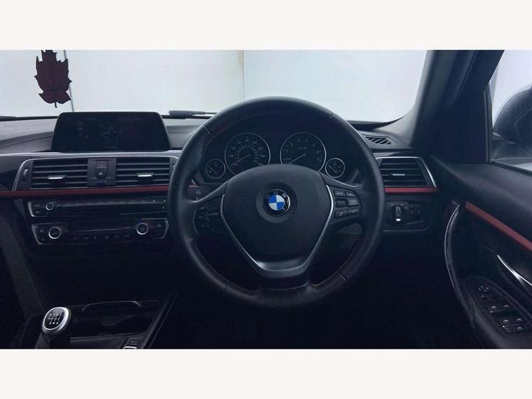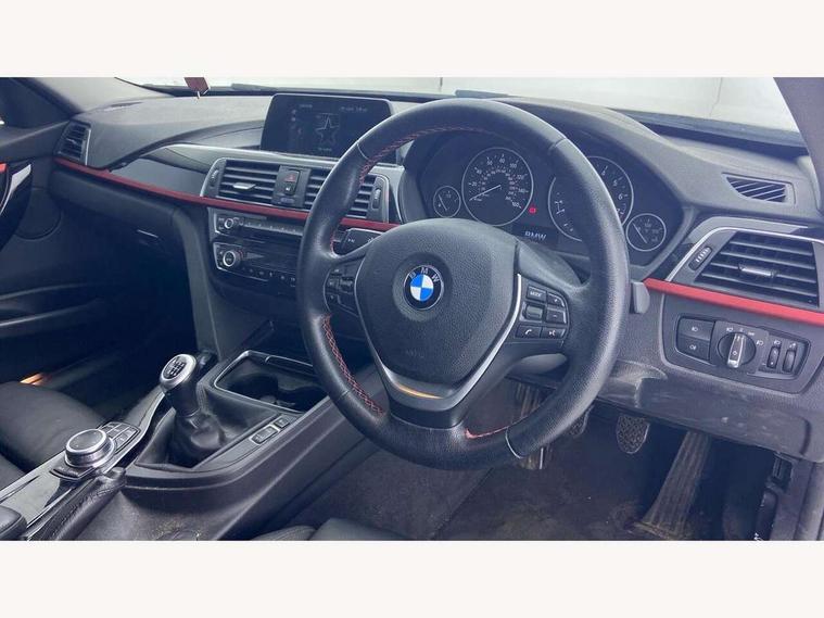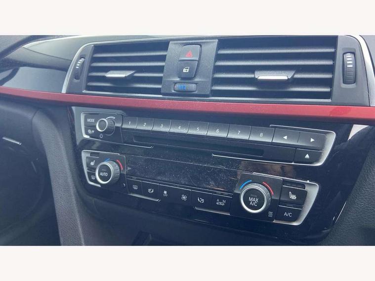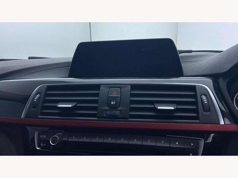 Automatic start/stop system, Average speed gauge, BMW iDrive controller on centre console, BMW Online services, BMW remote services, BMW Teleservices, Brake force display, Brake pad wear indicator in front and rear, Check Control warning system for monitoring of lights and door/luggage compartment open warning, Controller and Control Display+6.5" monitor, Cruise control with brake function + speed limiter, Digital clock, Door/boot open warning light, Instrument cluster with speedometer with mph readout, tachometer, fuel gauge and oil temperature gauge, Lights on warning, Odometer, Oil sensor for level and grade, On board computer, On board diagnostics, Operation warning of all exterior lights, Optimum shift indicator, Outside temperature display, Pesonal profile, Real time traffic information, Run flat tyre indicator, Service interval indicator, Trip computer, Battery cut-out switch, Drive Performance Control, Electronic differential lock, Multi-link rear suspension, BMW professional radio/CD/MP3, CD player, DAB Digital radio, 2 speed adjustable intermittent wipers with wash/wipe function, Active air flap radiator grille, Auto dimming rear view mirror, Automatic headlight beam throw control, Body colour bumpers, Body colour door handles, Body colour roof mouldings, Chrome exhaust tailpipe, Chrome kidney grille with extra wide black, high gloss black vertical slats, Clear indicator lenses, Direction indicator, side repeaters, integrated in exterior mirrors, Dynamic brake lights, Electric front and rear windows with one touch/convenient open/close function, Front and rear bumper system with replaceable deformation elements, Green tinted heat insulating glass, Heated rear window with automatic switch off, Heated windscreen washer jets, High gloss black air inlets, High gloss black finish B pillar, High gloss black rear bumper insert, High level third brake light, LED fog lights, LED rear lights, LED welcome home lights, Matt black exterior trim, Rain sensor + automatic driving lights control, Shark fin roof aerial, Side air inlets in black/aluminium highlights, Visible VIN plate, 12V sockets in front centre console and passenger footwell, 3 rear seat head restraints, 4 foldable grab handles - rear with clothes hook, 4 lashing points on luggage floor, 40:20:40 split folding rear bench seat, Automatic interior light soft on/soft off system, Dual zone automatic air conditioning, Folding front centre armrest + storage, Front and rear door armrests, Front and rear velour floor mats, Front door storage bins with bottle holder, Front sports seats with electric side bolster adjustment, Glovebox light, Glovebox opener with chrome spider, Height adjustable front headrests, Indirect front interior illumination - soft-light function, Leather gear knob, Leather gear selector lever handle, Leather handbrake lever, Luggage compartment lighting, Reach + rake adjustable steering column, Rear centre armrest with 2 cupholders, Rear child seat isofix attachment with passenger airbag deactivation, Storage compartment in rear centre console, front and rear door trims and under luggage compartment, Sunvisors with illuminated vanity mirrors and ticket pocket, Toolkit located in luggage compartment, Two front cup holders with a sliding lid, Extended lighting package - 3 Series, 3 point seatbelts on all seats (2 front, 3 rear), front pyrotechnic belt tensioners and belt force limiters, rear coded belt buckles, ABS, Automatic Stability Control (ASC), BMW emergency call, Brake drying, Brake energy regeneration, Braking pre-tensioning, Cornering brake control (CBC), Crash sensor, Driver and front passenger front and side airbags with passenger deactivation and ITS front and rear head airbags, DSC+, Dynamic brake control, Dynamic Traction Control - DTC, Hill start assist, Rear child proof door locks, Seatbelt security check for driver seat, Side impact protection, Twin horns, Tyre pressure monitor, Ventilated front and rear disc brakes, Warning triangle and first aid kit, Alarm system (Thatcham 1) with remote control and electronic engine immobiliser, Automatic drive away locking facility, Central locking switch for all doors, fuel filler cap and luggage compartment, Remote control including integrated key with red insert, Start/stop button with Comfort Go keyless engine start and auto Start/stop deactivation button, Air-conditioning and radio control panel with Chrome highlight, Sport instrument cluster with Red highlight, Low rolling resistance tyres, Run-flat tyres,