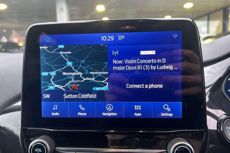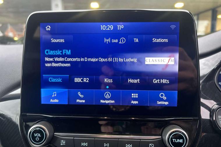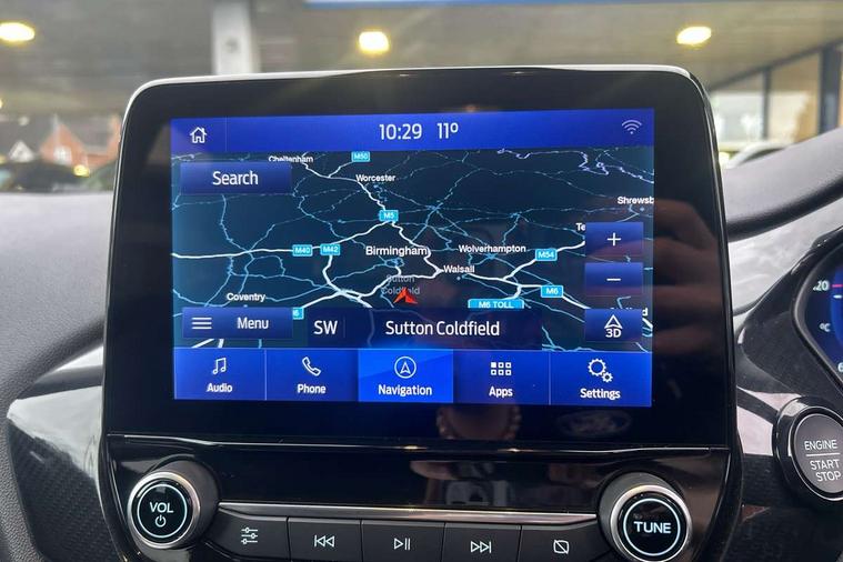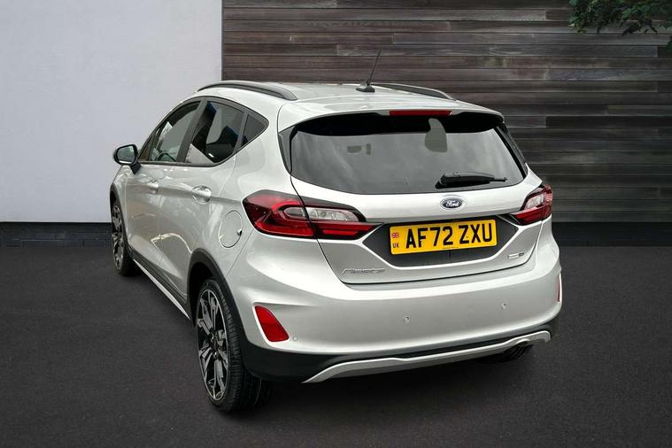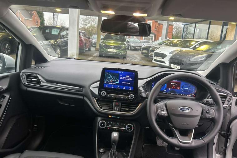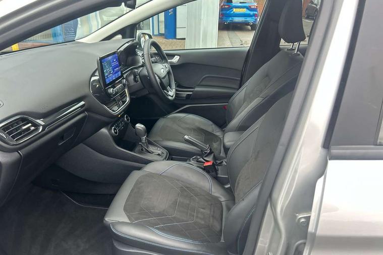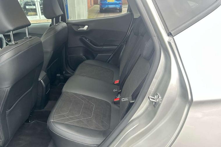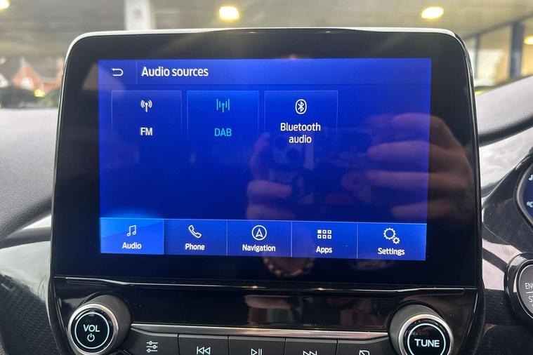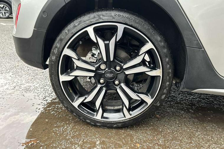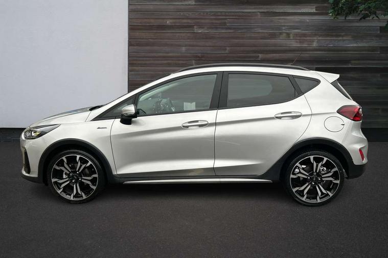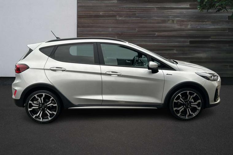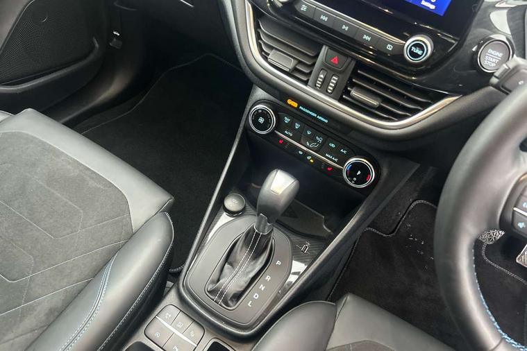 4.2" TFT instrument cluster screen, Bluetooth system, Electric power steering, Extra selectable drive modes ( Trail, Slippery), Ford easy fuel, Rear parking distance sensors, Selectable drive modes (Normal, Sport, Track), Traffic sign recognition, Trip computer, Rough road suspension with increased ride height adjust, 2 USB ports, Auxiliary input socket, B&O Premium audio system with 8" touchscreen, 10 speakers, 360 degree sound system, Ford SYNC 3 navigation system and Ford pass connect, DAB Digital radio, Steering wheel mounted controls, Auto high beam, Body colour bumpers, Body colour door handles, Body colour rear spoiler, Chrome beltline trim, Cornering front fog lights, Electric front windows/one touch facility, Electric rear windows, LED Night signature to rear lights, Mesh design front grille with chrome surround, Power foldable door mirrors with puddle lights, Quickclear heated windscreen, Rain sensing wipers and auto dimming rear view mirror, Rear privacy glass, Rear wiper, Rugged body styling kit with active front wing badges, 3 spoke leather trimmed steering wheel with audio control, 60/40 split folding rear seat, Adjustable head restraints, Boot carpet, Centre console with opening armrest, 2x cupholders, 12v and USB, Chrome inner door handles, Drivers and Passenger lumbar support, EATC - Electronic Auto Temperature control, Footwell illumination, Front floor mats in velour, Front map reading lights, Front seat and rear pockets, Height adjustable passenger seat, Illuminated glovebox, Leather gear knob, LED ambient lighting, Load area light, Manual 4-way driver seat adjust, Overhead console with sunglasses holder, Pollen filter, Rake/reach adjustable steering wheel, Sensico partial premium upholstery, Sensico wrapped steering wheel, NCAP Pack - Fiesta, 3 point seatbelts on all rear seats, ABS+EBA, Curtain airbags, Driver and passenger airbags, Drivers knee airbag, Electronic stability control with hill start assist, Front passenger airbag deactivation, Front side airbags, Seatbelt warning, Two tone horn, Tyre pressure monitoring system, Ford keyfree system with Keyless entry and keyless start, MyKey system, Remote central locking & engine immobiliser, Thatcham Cat.1 alarm, 18" 5 spoke alloy wheels with shadow black machined finish,