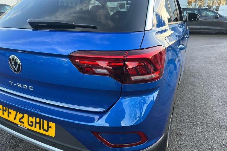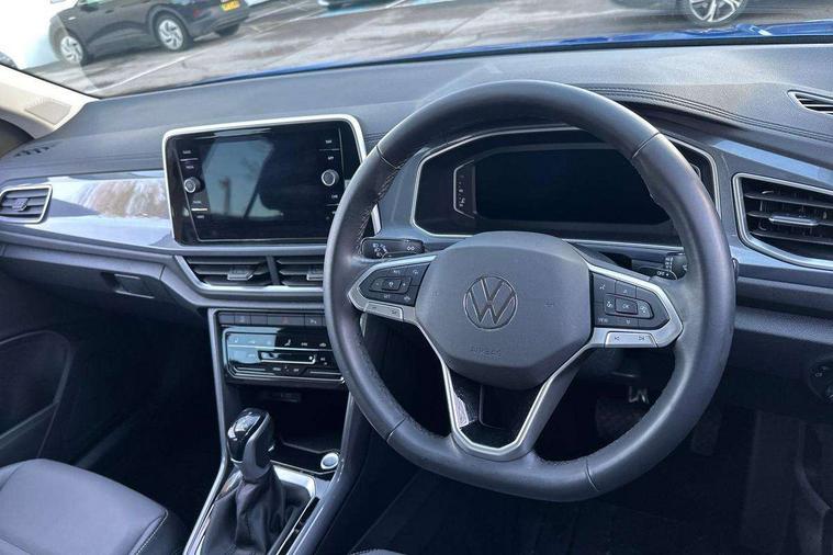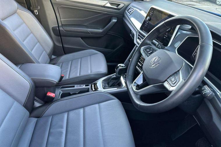 10.25" Digital cockpit pro, Bluetooth mobile phone interface, Driver alert system with fatigue detection, Driver tips and journey analysis, Emergency call service, Lane keeping system Lane Assist, Modified key software - reduce switch off time for key status change to Long no motion, Online services, Park assist including front and rear parking sensors, Service interval indicator, Tailgate/trunk lid release from outside, Think blue trainer driver tips and journey analysis, Warning sound and light for front seatbelts unfastened, Wireless app connect, Battery regeneration during braking, Start/stop function with battery regeneration, Diversity antenna for FM reception, Front and rear 6 speakers, Music playback - MP3, WMA and AAC files, Premium USB cable in choice of either Apple or Android smartphone compatibility, SD card slot, Simultaneous pairing of 2 compatible mobile devices, Title and cover art display, We Connect and We Connect Plus functionality, 3rd brake light, Auto dimming interior rear view mirror, Automatic hazard lights activation under emergency braking, Automatic headlight control with LED separate daytime running lights with coming/leaving home function, Body colour sports bumpers with silver metallic underbody fascia, Dynamic headlight range control with self adjusting whilst driving, Extended roof spoiler, Exterior mirrors aspherical on driver side, convex on front passenger side, External USB type C socket and charging sockets, Front windscreen wiper with intermittent wipe and 4 position delay, Heated rear window, LED Plus headlamps, LED rear combination lamps, LED rear number plate lights, LED tail lamp rear comination lamps, Light mode for poor weather, rain, fog or snow, Power windows with comfort operation and circuit breaker, Rain sensor, Rear exhaust tailpipe, Rear fog light on one side and reversing lights on both sides, Rear side wing doors, Rear wash/wipe with intermittent wipe setting, Remote electrically foldable door mirrors, puddle lights and reverse activated passenger's door mirror, 12V power socket in centre console, 3 rear head restraints, 3 seat bench in 2nd row, 4 load lashing points in luggage compartment, Air care climatronic air conditoning system with active combination filter and 2-zone temperature control, Chrome plated radiator grille inserts, air vent surrounds and light switch surrounds, Door and side trim panel with leatherette insert, Drawer under drivers seat, Front + rear carpet mats, Front centre armrest, Front comfort sports seats, Front cupholders x 2, Front footwell illumination, Instrument lighting, white adjustable panel illumination, Interior ambient lighting and surround lighting, Interior light delay, Isofix child seat preparation, Leather gearshift handle, LED interior light with switch off delay/dimmer and 2 front/rear LED reading lights, Load-through provision with cup holder when folded down ('Unsplit rear seat bench, split folding backrest, with centre armrest), Luggage compartment lighting, Non-folding front passenger seat backrest, Single front passenger seat, Storage compartment in left and right luggage area, Storage compartment in rear doors, Storage compartments in driver and front passenger doors, Sunvisors with illuminated vanity mirrors, Variable boot floor, height adjustable and removable, Driver assistance pack without proactive passenger protection - T-Roc, 3 point height adj front seatbelts + pretensioners, 3 point seatbelts in outer rear with ECE label, ABS, Child locks on rear doors, Driver and front passenger airbag with front passenger airbag deactivation, Driver and front passenger safety-optimised head restraints, Drivers seatbelt reminder, Electronic parking brake, Electronic Stability Control (ESC) inc EDL (Electronic Differential Lock) and ASR (Traction Control), Front and rear passengers curtain airbag system including front side airbags, Front assist with city emergency braking and pedestrian monitoring, Front seat side impact airbags, Predictive pedestrian protection, Rear disc brakes, Single tone horn, Tyre pressure loss indicator, Volkswagen roadside assistance, Alarm with interior protection, Anti-theft alarm system with interior monitoring, backup horn, and towing protection, Remote central locking with SAFELOCK, radio remote control with 2 remote control folding keys, Trims for alloy wheels,
