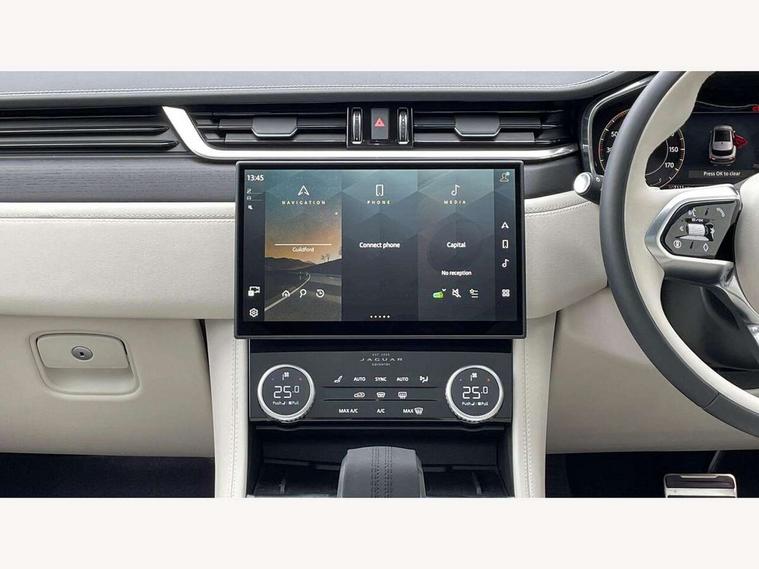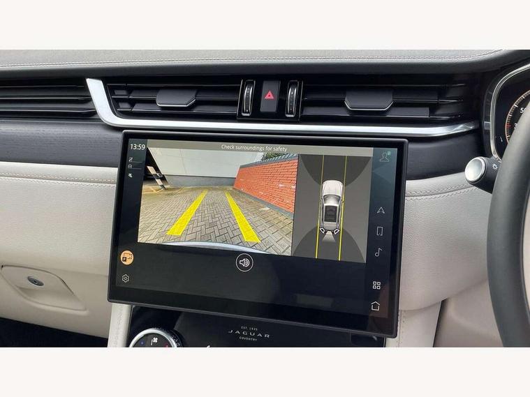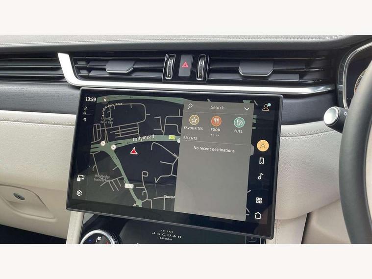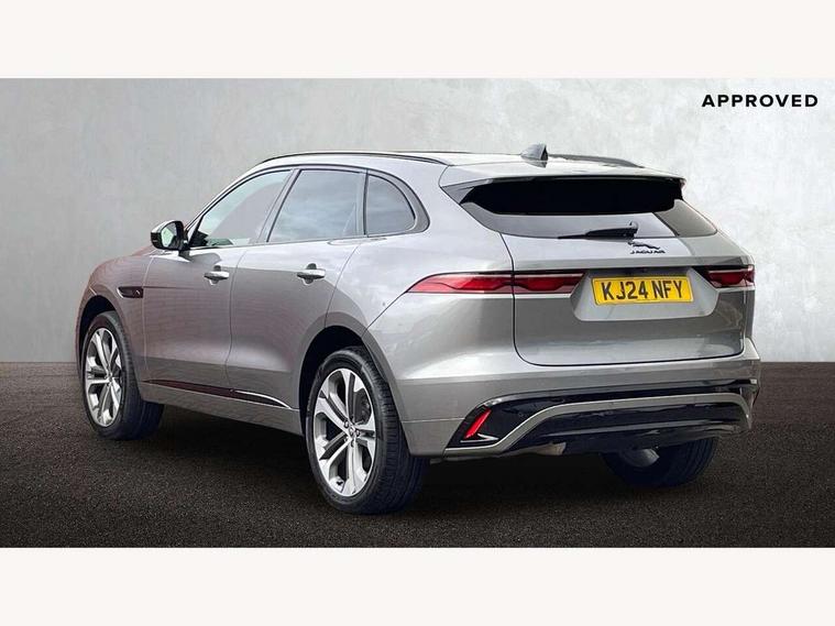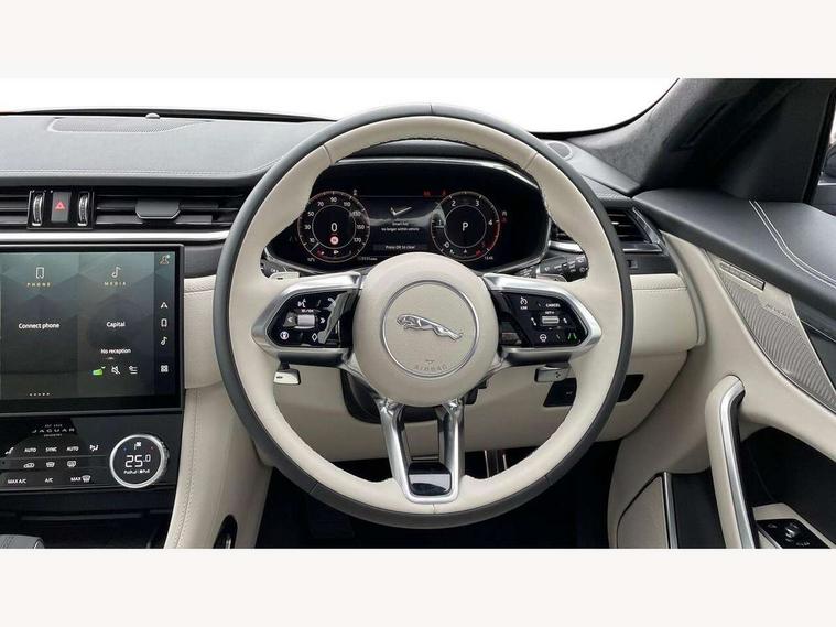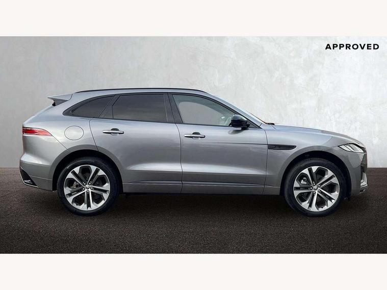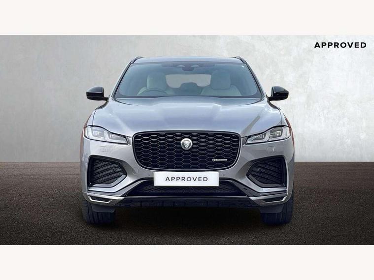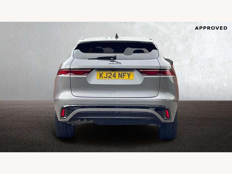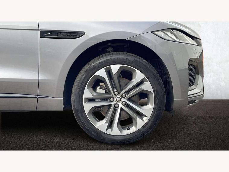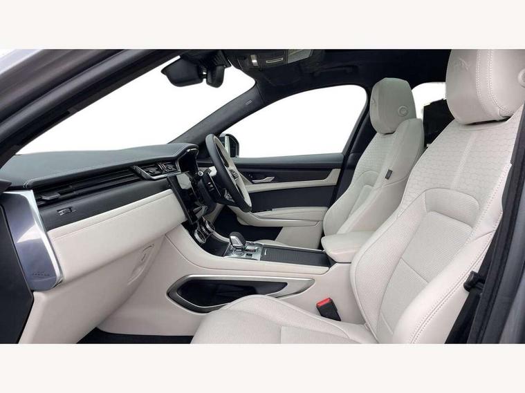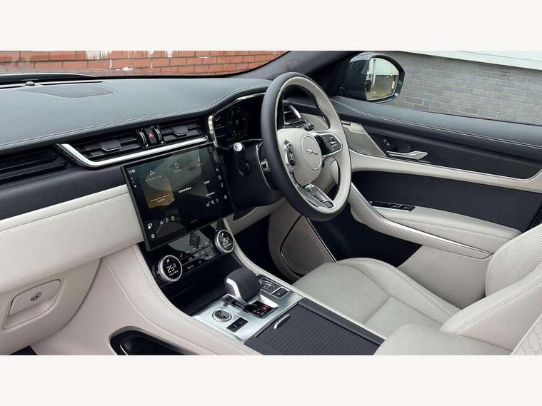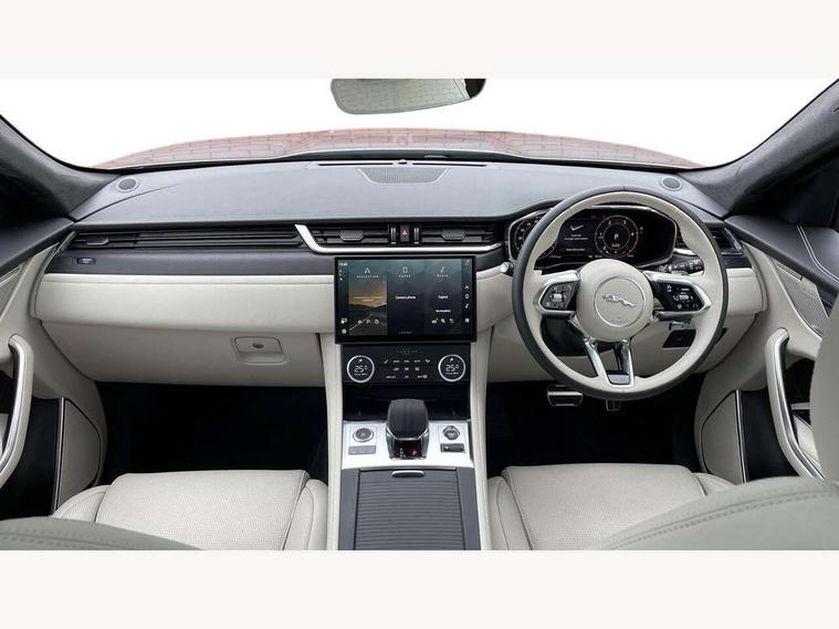 11.4" touchscreen, Adaptive cruise control with steering assist, Android Auto, Apple car play, Blind spot assist, Bluetooth connectivity, Clear exit monitor, Driver alert system, Driver condition monitor, eCall emergency call system, Eco driving style assistant, Electric power assisted steering, InControl remote, Interactive driver display digital with 12" TFT display, Jaguar Toggle shift selector, Lane departure warning system, Lane keep assist, Outside temperature gauge, Personalisation profile management, Pivi pro connected navigation system with app interface and media storage, Pro services and wifi hotspot, Push button starter, Rear collision monitor, Rear traffic monitor, Service interval indicator, Speed proportional steering, Start up sequence with movement in dials and lighting, Traffic sign recognition with adaptive speed limiter, Trip computer, Voice control system, Wireless device charging, 8 speed automatic transmission, Adaptive dynamics, All terrain progress control, All Wheel Drive (AWD), Configurable dynamics, Open differential with torque vectoring by braking, AM/FM radio, Bluetooth streaming, DAB Radio (Digital Audio Broadcasting), Dynamic volume control, InControl apps, InControl protect, iPod integration, 3 flash lane change indicators, AHBA and animated directional indicators, Approach Illumination, Auto dimming rear view mirror, Automatic headlights, Electric heated/power fold memory door mirrors with approach lights and auto dimming driver side, Electric windows with one touch open/close and anti trap, F-Pace and R Dynamic badge, Green tinted glass, Heated front windscreen + heated washer jets, Heated rear window with timer, Illuminated metal tread plates with Jaguar script, Jaguar script and leaper, LED High level third brake light, LED tail lights, Metal load space scuff plates, Non acoustic front windscreen, Privacy glass (rear side windows and rear screen), R Dynamic badge on side door, Rain sensor windscreen wipers, Rear fog lights, Rear metal tread plates, Rear side wing doors, Rear wiper, Trailer stability assist, Variable front intermittent wipers, 12V power point front, 3 rear headrests, 3 seat bench in 2nd row, Additional power sockets - Two additional USB sockets in rear centre console and one 12V socket in trunk, Air distribution speed, Bright metal foot pedals, Centre armrest console, Centre console with side storage, Configurable cabin lighting, Deletion loadspace storage rails, Door sill tread plates, Ebony suede cloth headlining, Electrically adjustable steering column, Fold flat front seats, Front centre armrest with storage compartment, Front door storage space, Glovebox finisher with jaguar script, Heated steering wheel, Hooks in loadspace, Illuminated glovebox, Interior front door handles with separate locking switches, ISOFIX on outer rear seats, Jaguar sense, Leather steering wheel, Luggage tie downs in loadspace, Mist sensing, Multifunction steering wheel, Overhead lighting console, Overhead stowage for sunglasses, Passive front head restraints, Premium carpet mats, Rear air vents, Rear armrest with twin cupholders, Rear centre headrest, Rear door storage space, Reversible boot floor, Satin chrome gearshift paddles, Shopping bag hook, Single front passenger seat, Sunvisors with illuminated vanity mirrors, Twin front cupholders with cover, Online Pack with data plan - F-Pace, 355mm front brakes and 325mm rear brakes, 3x3 point rear seatbelts, ABS, All surface progress control (ASPC), Brake pad warning light, DSC - Dynamic Stability Control, Electric parking brake (EPB), Emergency brake assist, Front airbags with passenger seat occupant detector, Front and rear seatbelt reminder, Front side airbags, Full length side window curtain airbag, Hill launch assist, Power operated child locks, Traction control, Tyre pressure monitoring system, Immobiliser, Keyless entry, Keyless Start, Locking wheel nuts, Perimeter alarm, Remote central locking, Valet mode,