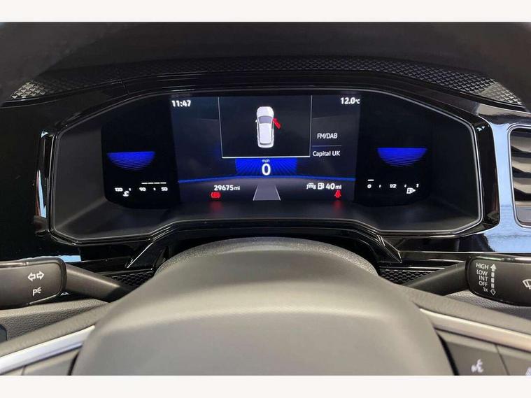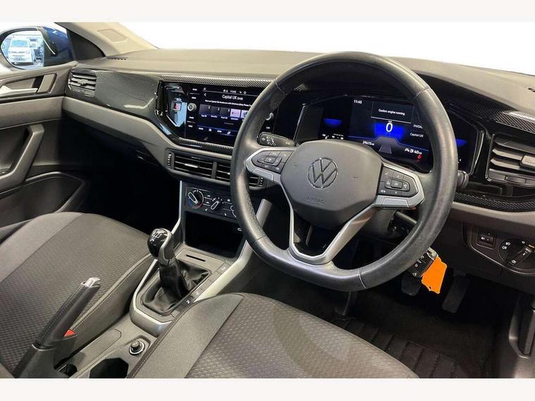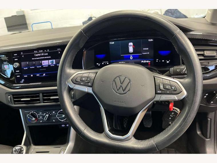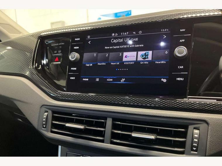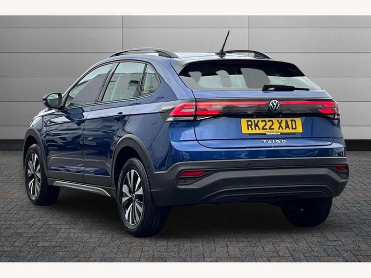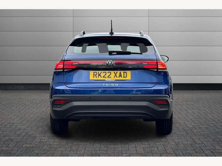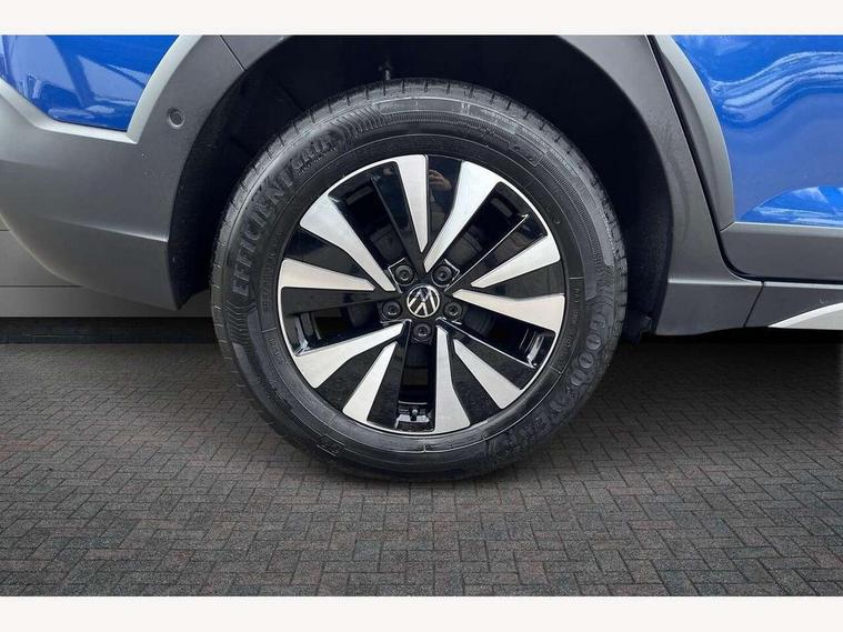App-Connect including App-Connect Wireless, Driver alert system, e-Call (emergency call), Power Steering, Travel assist including emergency assist, Washer fluid level indicator, Wireless Charging including Bluetooth, Start-stop system with battery regeneration (recuperation - energy recovery during braking), Digital radio reception (DAB+), Diversity antenna for FM reception, WeConnect plus, Ambient lighting with logo projection, Aspherical driver's exterior mirror, Auto headlights, Body coloured bumpers, Body coloured exterior mirror housings and door handles, Electric windows, External USB type C socket and charging sockets, Front fog lamps with cornering function, Headlight range control, Heat insulating glass windscreen, LED headlamps, LED rear combination lamp, LED third brake light, Left convex exterior mirror, Power folding adjustable/heated exterior mirrors and front passenger exterior mirror lowering function, Rear fog light on one side, reversing light on both sides, Rear side wing doors, Rear wash/wipe with intermittent wipe setting, 'Slash/ Austin' Cloth upholstery, 12V socket in centre console, 2 front reading lights, 3 rear head restraints, 3 seat bench in 2nd row, Black carpets, Child seat anchor for child seat system i-Size, 2x top tether and child seat anchor in front on front passenger side, Door and side trim panels in titan black, Driver and front passenger seat height adjustment, Front centre armrest, Handbrake lever handle in leather, Height and reach adjustable steering wheel, Leather trimmed gear knob, Leather wrapped multifunction steering wheel, Luggage compartment floor, Luggage compartment light, Lumbar support for driver's and front passengers seat, Seat covers in titanium black, Single front passenger seat, Split folding backrest with centre armrest and unsplit rear seat bench, Storage compartment under front seats, Sun visors with illuminated vanity mirrors, Chrome Package - Taigo, Drivers assistance pack - Taigo, Light and Sight pack including High beam assist - Taigo, 2 x 3-point seatbelts/outer rear seats with ECE label, 3-point seat belts in front with pretensioner and height adjustment, 3-point seatbelt for centre rear seat, Driver and front passenger airbags with front passenger airbag de-activation, front side and curtain airbags, Driver and front passenger safety-optimised head restraints, Electronic stability control, Extended and predictive pedestrian/ cyclist protection, Front and rear disc brakes, Front curtain and side airbags with center airbag, Hill start assist, Manual rear child locks, Single tone horn, Tyre pressure loss indicator, Anti-theft alarm system with interior monitoring, backup horn, and towing protection, Anti-theft wheel bolts, Lava stone black gloss/matt decorative inserts in dash and front door panels, Low rolling resistance tyres,