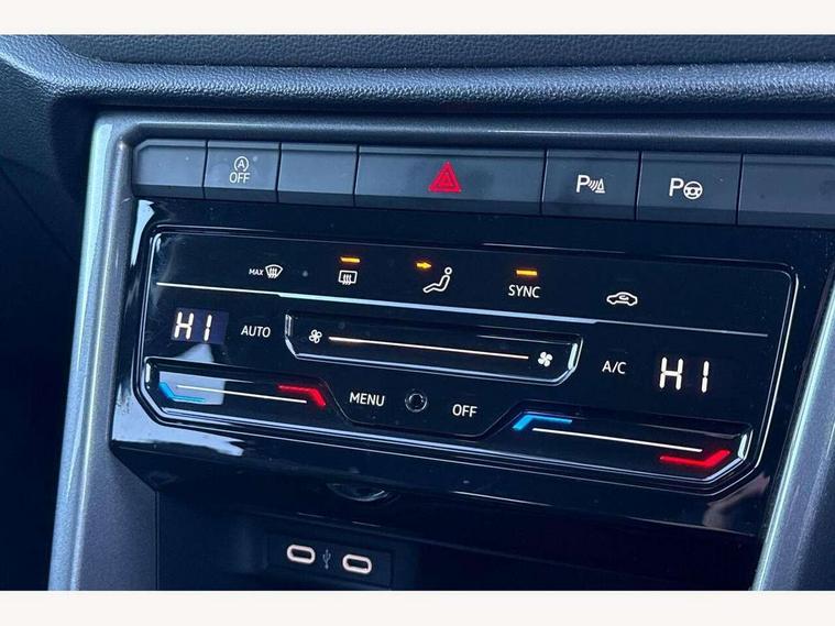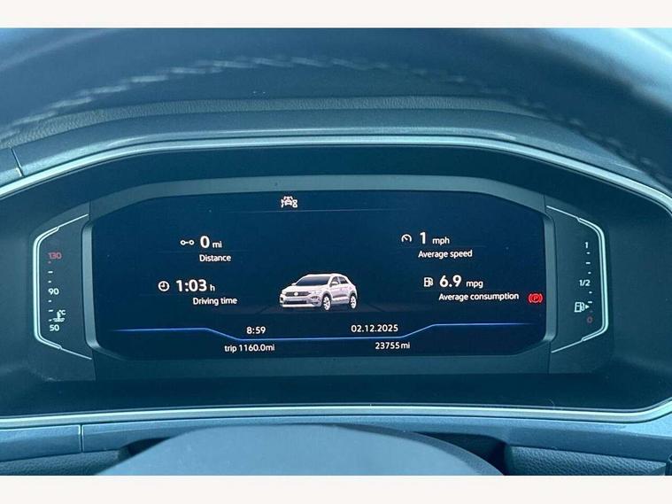 10.25" Digital cockpit pro, Bluetooth mobile phone interface, Driver alert system with fatigue detection, Driver tips and journey analysis, Dynamic road sign display, Emergency call service, Lane keeping system Lane Assist, Modified key software - reduce switch off time for key status change to Long no motion, Online services, Park assist including front and rear parking sensors, Power assisted speed sensitive steering, Service interval indicator, Tailgate/trunk lid release from outside, Think blue trainer driver tips and journey analysis, Warning sound and light for front seatbelts unfastened, Wireless app connect, Battery regeneration during braking, Front shock absorption, Rear shock absorption chassis with increased ride height, Start/stop function with battery regeneration, Diversity antenna for FM reception, Front and rear 6 speakers, Music playback - MP3, WMA and AAC files, Premium USB cable in choice of either Apple or Android smartphone compatibility, SD card slot, Simultaneous pairing of 2 compatible mobile devices, Title and cover art display, We Connect and We Connect Plus functionality, 3rd brake light, Auto dimming interior rear view mirror, Automatic hazard lights activation under emergency braking, Automatic headlight control with LED separate daytime running lights with coming/leaving home function, Body colour sports bumpers with silver metallic underbody fascia, Dynamic headlight range control with self adjusting whilst driving, Extended roof spoiler, Exterior mirrors aspherical on driver side, convex on front passenger side, External USB type C socket and charging sockets, Front windscreen wiper with intermittent wipe and 4 position delay, Heated rear window, LED Plus headlamps, LED rear combination lamps, LED rear number plate lights, LED tail lamp rear comination lamps, Light mode for poor weather, rain, fog or snow, Power windows with comfort operation and circuit breaker, Rain sensor, Rear exhaust tailpipe, Rear fog light on one side and reversing lights on both sides, Rear side wing doors, Rear wash/wipe with intermittent wipe setting, Remote electrically foldable door mirrors, puddle lights and reverse activated passenger's door mirror, 12V power socket in centre console, 3 rear head restraints, 3 seat bench in 2nd row, 4 load lashing points in luggage compartment, Air care climatronic air conditoning system with active combination filter and 2-zone temperature control, Chrome plated radiator grille inserts, air vent surrounds and light switch surrounds, Door and side trim panel with leatherette insert, Drawer under drivers seat, Front + rear carpet mats, Front centre armrest, Front comfort sports seats, Front cupholders x 2, Front footwell illumination, Instrument lighting, white adjustable panel illumination, Interior ambient lighting and surround lighting, Interior light delay, Isofix child seat preparation, Leather gearshift handle, LED interior light with switch off delay/dimmer and 2 front/rear LED reading lights, Load-through provision with cup holder when folded down ('Unsplit rear seat bench, split folding backrest, with centre armrest), Luggage compartment lighting, Non-folding front passenger seat backrest, Single front passenger seat, Storage compartment in left and right luggage area, Storage compartment in rear doors, Storage compartments in driver and front passenger doors, Sunvisors with illuminated vanity mirrors, Variable boot floor, height adjustable and removable, Driver assistance pack without proactive passenger protection - T-Roc, 3 point height adj front seatbelts + pretensioners, 3 point seatbelts in outer rear with ECE label, ABS, Child locks on rear doors, Driver and front passenger airbag with front passenger airbag deactivation, Driver and front passenger safety-optimised head restraints, Drivers seatbelt reminder, Electronic parking brake, Electronic Stability Control (ESC) inc EDL (Electronic Differential Lock) and ASR (Traction Control), Front and rear passengers curtain airbag system including front side airbags, Front assist with city emergency braking and pedestrian monitoring, Front disc brakes, Front seat side impact airbags, Predictive pedestrian protection, Rear disc brakes, Single tone horn, Tyre pressure loss indicator, Volkswagen roadside assistance, Alarm with interior protection, Anti-theft alarm system with interior monitoring, backup horn, and towing protection, Remote central locking with SAFELOCK, radio remote control with 2 remote control folding keys, Trims for alloy wheels,