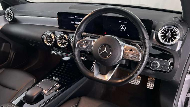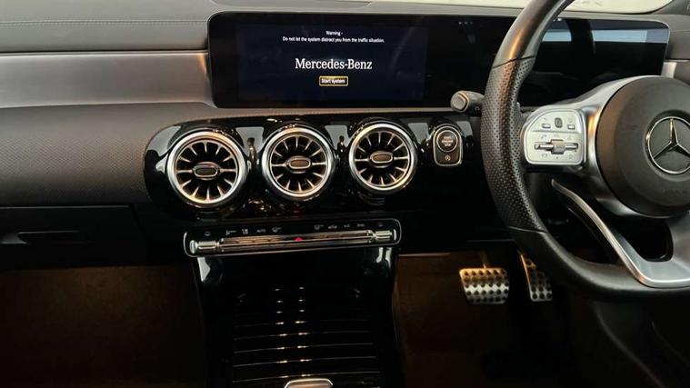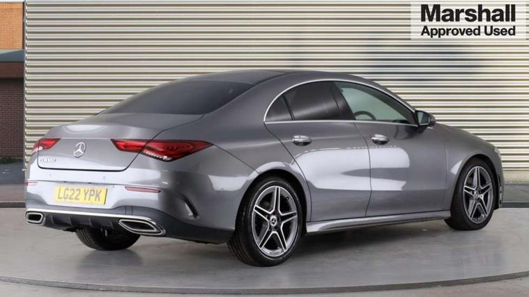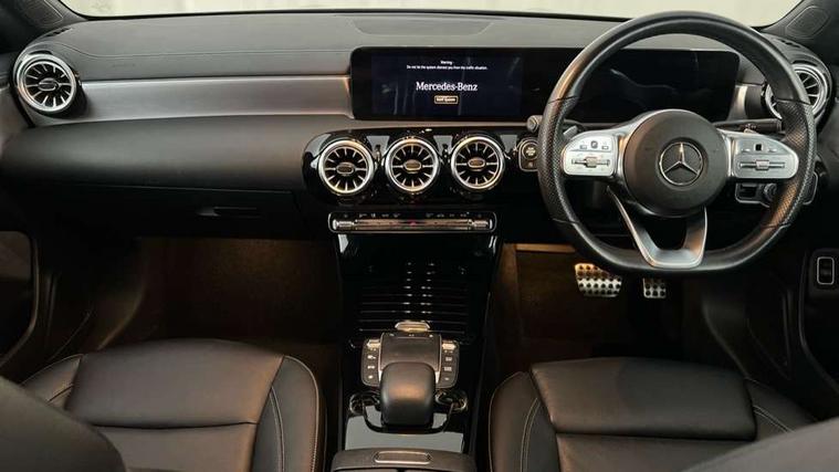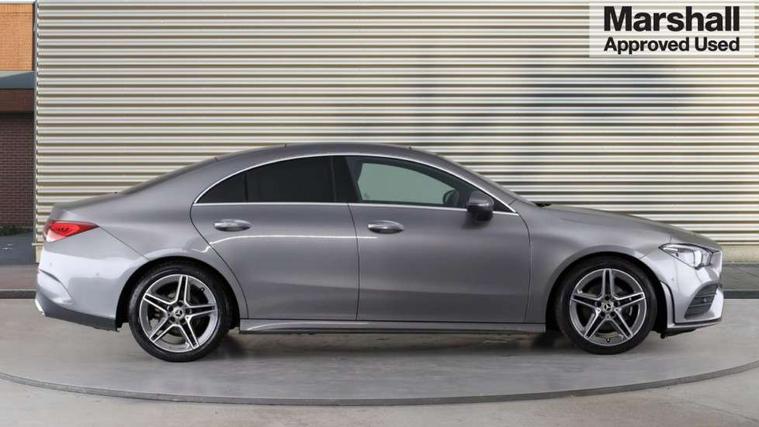 10.25 inch Instrument display with digital cockpit, 10.25 inch touchscreen central media display, Attention assist - Monitors steering behaviour and long journey fatigue, Bluetooth connection, Car wash mode, DYNAMIC SELECT with a choice of driving modes (ECO, Comfort, Sport and Individual), ECO start/stop function, Fluid level warning indicator for fuel, oil, coolant and washer fluid, Hard-disk navigation, Hey Mercedes Voice activation, Lamp failure indicator, Mercedes me connect including emergency call system, accident recovery, breakdown and maintenance management, Mercedes me remote services, Outside temperature gauge, Owners manual and service booklet in English, Pre-installation of private car share, Preinstallation for Mercedes Benz link, Radio aerial integrated into front and rear windshields, Service indicator (ASSYST), Smartphone integration with Apple CarPlay and Android auto, Traffic sign assist, Trip computer in multifunction display with current consumption indicator, 7G-DCT 7 speed automatic transmission, Lowered comfort suspension, Rear axle multi-link, DAB digital radio tuner, MBUX multimedia system with DAB digital radio and touchpad including satellite navigation, Mid-range sound system, USB (type C) ports (2) in stowage compartment and 1 in front of centre console, Adaptive brake lights, AMG body styling with AMG front apron and rear apron and visible exhaust tailpipe in chrome trim elements, AMG bodystyling side skirts, Auto headlights, Body colour bumpers, Body colour door handles, Chrome beltline strips, Chrome weather strip, Diamond radiator grille pins in chrome with silver painted louvres and chrome insert, Electric panoramic sliding sunroof, Electric windows, Electrically adjustable and heated door mirrors with integrated LED indicators, Exhaust system with 2 Visible tailpipe trim elements and rear apron with trim in chrome, Headlamp assist automatic headlamp activation, Heated glass rear windscreen + timer control, High level LED third brake light, Integrated LED daytime running lights, Interior mirror with black reading lamps and frameless, LED tail lamp, Multibeam LED headlamps with adaptive highbeam assist plus, Privacy glass with dark tinting on rear side windows and rear window, Rain sensing windscreen wipers with two sensitivity settings, Rear boot, Rear fog lamp, Rear side wing doors, Window line trim strip in chrome, 3 seat bench in 2nd row, 3 spoke flattened bottom nappa leather multifunction steering wheel with perforated leather in grip area, 40:20:40 split folding rear seat backrests, Air conditioning - Two zone thermotronic luxury automatic climate control with display, Air vents with surround in silver chrome, Automatic child seat recognition sensor, Black roof lining, Brushed stainless steel sports pedals with rubber studs, Floor mats with stitched AMG lettering, Front centre armrest with stowage, Galvanished gear shift paddles on steering wheel, Heated front seats, Illuminated front door sills with changeable cover, Illuminated glove compartment stowage, Interior lighting - 64 colour Ambient lighting, Luggage net on driver/front passenger seat backrest, Manually height and reach adjustable steering column, Rear armrest with two integral cup holders for drinks, Rear head restraints, Single front passenger seat, Sport seats with fixed head restraints, Stowage compartment in centre console with retractable cover, Sunvisors with illuminated vanity mirrors, Touchpad on center console, Twin front cupholders, Two outer rear seat isofix and top tether child seat fixing points, Keyless go pack - CLA, Light and sight pack - CLA, Mirror pack - CLA, Parking package - CLA, Seat comfort pack - CLA, Active bonnet pedestrain safety measure which detects an impact and raises bonnet by 65mm, Adaptive brake assist with hold function and hill start assist, Anti-lock braking system (ABS), Black seat belts, Bonnet with power domes, Brake pad wear warning indicator, Childproof locks manually operated for rear doors and electrically operated for rear power windows, Crash responsive emergency lighting, Driver and front passenger head and sidebags, Driver and front passenger windowbags, Drivers knee airbag, Dual stage driver and front passenger airbags, Electric parking brake, Electronic stability programme with acceleration skid control, ESP curve dynamic assist, Front and rear seatbelt reminder, Front passenger seat occupancy sensor, Three point rear seat belts, Tyre pressure monitoring system, Warning triangle and first aid kit, Remote central locking and crash sensor with emergency opening function, Urban guard vehicle protection system with immobiliser and interior protection, Light aluminium with longitudinal grain interior trim, 18" 5 twin spoke design alloy wheels painted in titanium grey with high sheen finish, Summer tyres, Tirefit tyre sealant kit,
