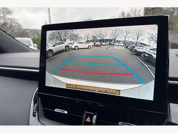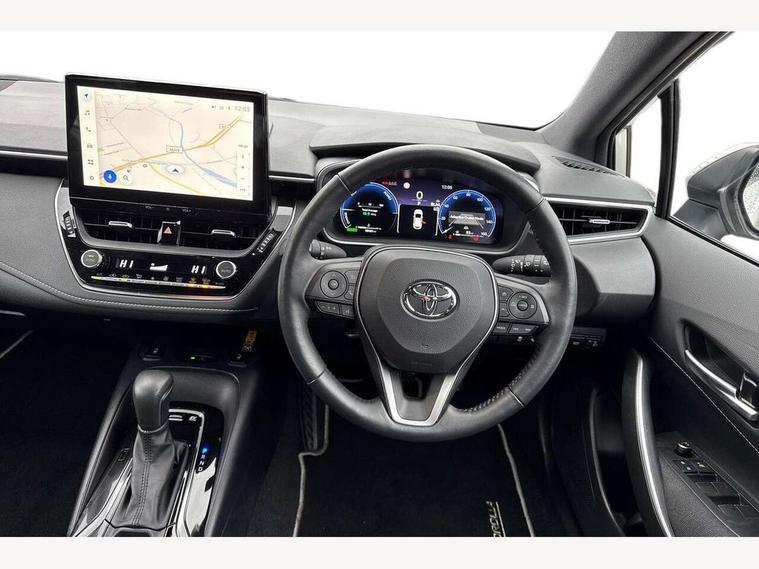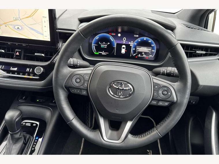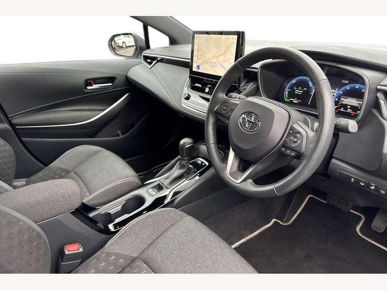 10.5" Multimedia display screen, Bluetooth telephone connectivity, Connected car functionality upgrade, tracker, remote status and e-care, Drive mode select (Eco, Normal), E-call, Electrically assisted power steering, EV drive indicator, Front and rear parking sensors with auto brake, Full Digital 12.3" TFT Digital Combimeter, Key reminder warning, Lane Departure Alert (LDA) switch on steering wheel, Memory on adjustable speed limiter, MyT connected services, Proactive driving assist (PDA), Reversing camera, Smart entry and push button start, Smartphone integration with Apple CarPlay and wired android auto, Tailgate, Toyota remote services, Toyota smart connect navigation, Wireless charger, Gasoline particulate filter, Vehicle Stability Control (VSC), 6 speakers, AM/FM radio, DAB Digital radio, Front USB-C in dashboard, Smart voice assist/ Voice recognition, USB and Aux in connectors + 12V front outlet, Anti-jam protection on power windows, Auto up and down function on all power windows, Automatic headlights with high beam assist, Black centre and side air vents, Black meshed front grille, Black toyota logo in front, Body coloured bumpers, Body coloured door mirrors, Body coloured front spoiler, Body coloured outside door handles, Body coloured rear under guard, COROLLA alloy door scuff plates, Follow me home headlights, LED daytime running lights, LED front fog lights, LED High mounted stop light, LED multi beam headlights, LED multi reflector in headlights, LED rear combi lights with LED lightguide, Manual day/night rear view mirror, Manual headlight levelling system, New grille pattern, Noise reduction layer on windscreen, Piano black diffuser, Power adjustable heated door mirrors, Power front windows, Power rear windows, Rain sensor, Rear side wing doors, Rear window defogger, Rear window wiper, Satin chrome insert on front air vents, Satin chrome insert on front door assist grips, Shark fin antenna, Time adjustment on intermittent wiper, Turning signal integrated indicators in door mirrors, Unique lower skirt, Unique side rocker with black insert, UV-filter on driver and passenger windows, 2 Shopping bag hooks in luggage compartment, 3 rear headrests, 3 seat bench in 2nd row, 3 spoke leather steering wheel with satin insert + gear knob, 4 tie down hooks in luggage compartment, 60/40 split folding rear seat, Adaptive cruise control (ACC) switch on steering wheel, Adjustable speed limiter switch on steering wheel, Audio, multimedia and telephone switches on steering wheel, Black armrest on centre console box, Black gear shift console, Boot light, Centre room light, Driver and front passenger personal light, Driver and passenger assist grip, Driver and passenger sun visor with mirror and light, Dual zone automatic air conditioning with ECO mode switch, Fabric upholstery, Front and rear cup and bottle holders, Front door pockets, Front head restraints, Front passenger seat, Front sliding fabric armrest, Heated seats, Illuminated entry system in room lamp, ISOFIX seat fixing (2 fixings on rear outer seats), Leather gear shift with satin chrome on gear shift console, Manual height adjustable for driver and front passenger seat, Manually tilt with sliding driver and front passenger seat, Parcel shelf, Passenger seat back pocket, Pollen filter, Power adjustable lumbar support on driver seat, Power window switches with satin chrome inserts, Rear armrest with 2 cupholders, Rear passenger coat hooks (2), Remote air conditioning, Satin chrome inside door handles, Satin chrome surround on heater control panel, Satin chrome surround on speedometer, Sliding armrest on centre console box, Slow opening glovebox with lights, Textile floor mats, Tilt/telescopic steering column, Voice recognition switch on steering wheel, Whiplash Injury Lessening (WIL) feature (active headrest) for seats, Toyota safety sense 3 pack - Corolla, 3x3 point rear seatbelts, Adjustable driver and front passenger seat belt extender to top anchor point, Anti lock braking system + Electronic brake force distribution, Brake assist function, Child locks on rear doors, Downhill Assist Control (DAC), Electronic parking brake, Emergency brake light signal (EBS), Front passenger airbag on/off switch, Front seatbelt reminder, HAC - Hill start assist control, Rear seat belt reminder, Seatbelt pretensioners and force limiters, Supplemental restraint system (SRS) 7 airbags - dual driver, dual side curtain, side impact and driver knee airbags, Traction control, Tyre pressure warning system, Acoustic vehicle alert system (AVAS), Alarm with motion sensor and immobilizer, Power passenger window lock, Remote central locking + deadlocks, Satin chrome dash trim, Soft touch texture on upper dashboard, Stitching on lower dashboard, 16" 5 double spoke alloy wheels, Tyre repair kit, Unique wheel finish with red wheel cap,