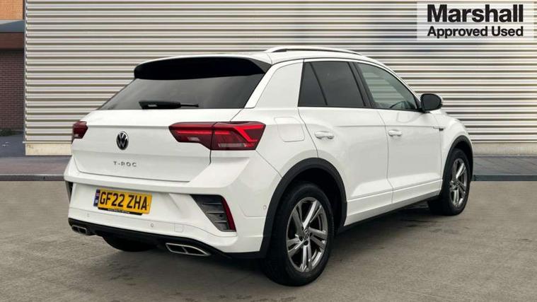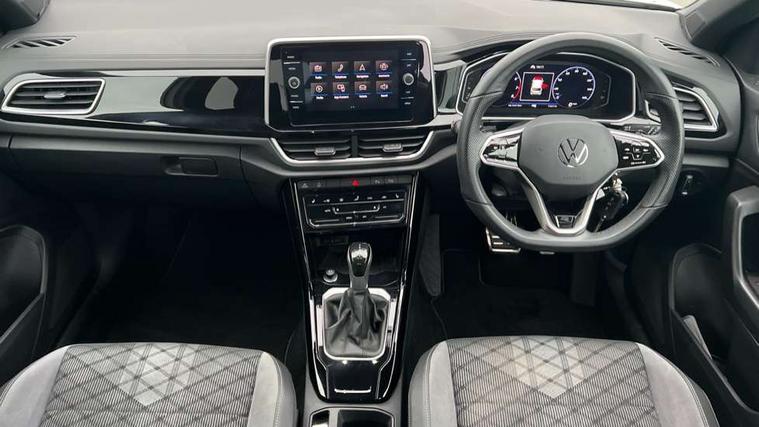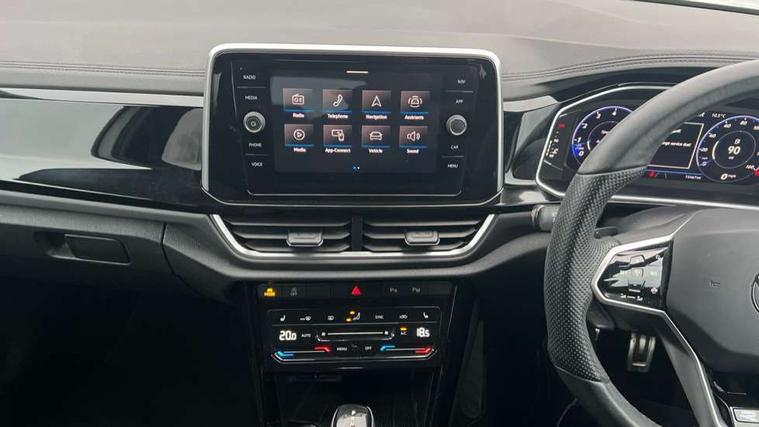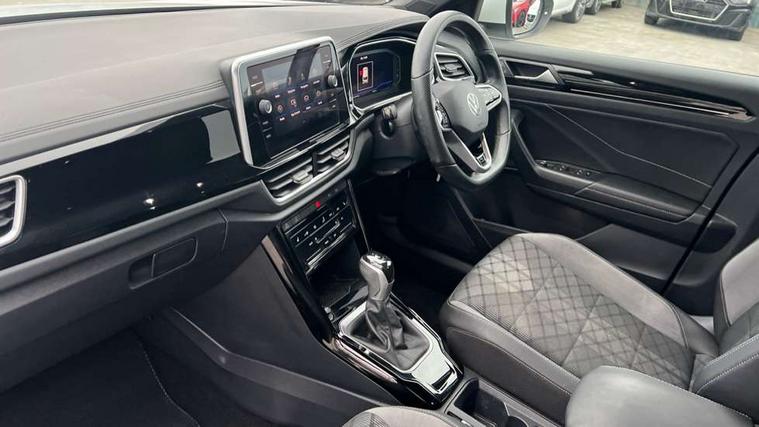 10.25" Digital cockpit pro, Bluetooth mobile phone interface, Driver alert system with fatigue detection, Driver tips and journey analysis, Emergency call service, Lane keeping system Lane Assist, Modified key software - reduce switch off time for key status change to Long no motion, Online services, Park assist including front and rear parking sensors, Service interval indicator, Tailgate/trunk lid release from outside, Think blue trainer driver tips and journey analysis, Warning sound and light for front seatbelts unfastened, Wireless app connect, Battery regeneration during braking, Start/stop function with battery regeneration, Diversity antenna for FM reception, Front and rear 6 speakers, Music playback - MP3, WMA and AAC files, Premium USB cable in choice of either Apple or Android smartphone compatibility, SD card slot, Simultaneous pairing of 2 compatible mobile devices, Title and cover art display, We Connect and We Connect Plus functionality, 3rd brake light, Auto dimming interior rear view mirror, Automatic hazard lights activation under emergency braking, Automatic headlight control with LED separate daytime running lights with coming/leaving home function, Extended roof spoiler, Exterior mirrors aspherical on driver side, convex on front passenger side, External USB type C socket and charging sockets, Front windscreen wiper with intermittent wipe and 4 position delay, Heated rear window, LED Plus headlamps, LED rear combination lamps, LED rear number plate lights, LED tail lamp rear comination lamps, Power windows with comfort operation and circuit breaker, R-Line design body coloured bumpers, Rain sensor, Rear exhaust tailpipe, Rear fog light on one side and reversing lights on both sides, Rear side wing doors, Rear wash/wipe with intermittent wipe setting, Remote electrically foldable door mirrors, puddle lights and reverse activated passenger's door mirror, 12V power socket in centre console, 3 rear head restraints, 3 seat bench in 2nd row, 4 load lashing points in luggage compartment, Air care climatronic air conditoning system with active combination filter and 2-zone temperature control, Black roof lining, Chrome plated radiator grille inserts, air vent surrounds and light switch surrounds, Door and side trim panel with leatherette insert, Drawer under drivers seat, Front + rear carpet mats, Front centre armrest, Front cupholders x 2, Front footwell illumination, Front reading light, Front scuff plates with R logo, Instrument lighting, white adjustable panel illumination, Interior ambient lighting and surround lighting, Interior light delay, Isofix child seat preparation, Leather gearshift handle, Load-through provision with cup holder when folded down ('Unsplit rear seat bench, split folding backrest, with centre armrest), Luggage compartment lighting, Single front passenger seat, Stainless steel pedals, Storage compartment in left and right luggage area, Storage compartment in rear doors, Storage compartments in driver and front passenger doors, Sunvisors with illuminated vanity mirrors, Variable boot floor, height adjustable and removable, Driver assistance pack - T-Roc, 3 point height adj front seatbelts + pretensioners, 3 point seatbelts in outer rear with ECE label, ABS, Child locks on rear doors, Driver and front passenger airbag with front passenger airbag deactivation, Driver and front passenger safety-optimised head restraints, Drivers seatbelt reminder, Electronic parking brake, Electronic Stability Control (ESC) inc EDL (Electronic Differential Lock) and ASR (Traction Control), Front and rear passengers curtain airbag system including front side airbags, Front assist with city emergency braking and pedestrian monitoring, Front seat side impact airbags, Hill start assist, Predictive pedestrian protection, Rear disc brakes, Single tone horn, Tyre pressure loss indicator, Volkswagen roadside assistance, Alarm with interior protection, Anti-theft alarm system with interior monitoring, backup horn, and towing protection, Remote central locking with SAFELOCK, radio remote control with 2 remote control folding keys, Trims for alloy wheels,
