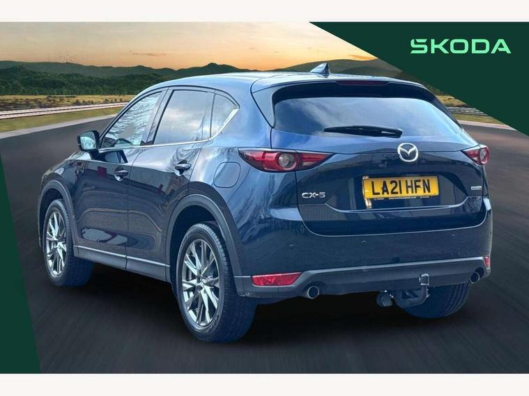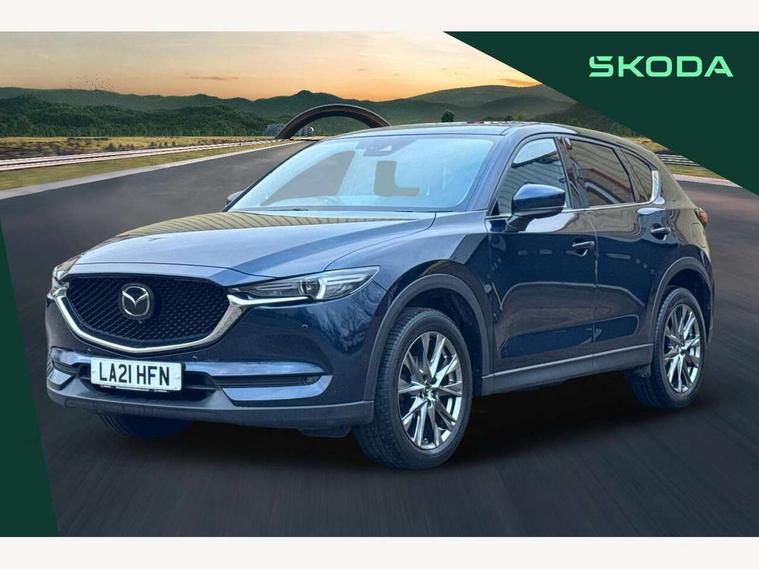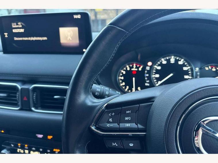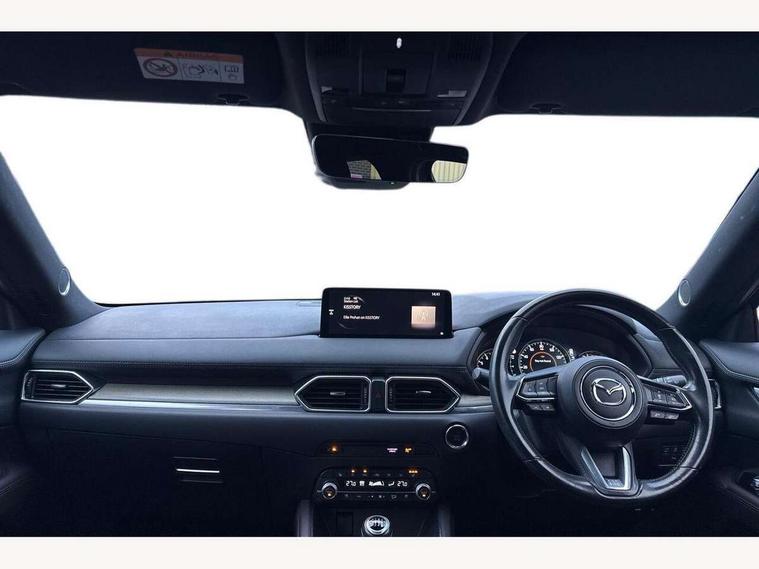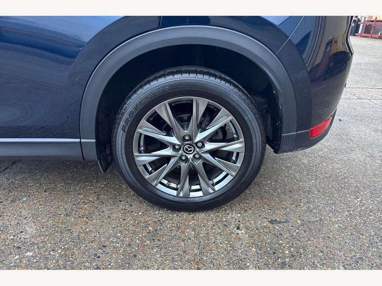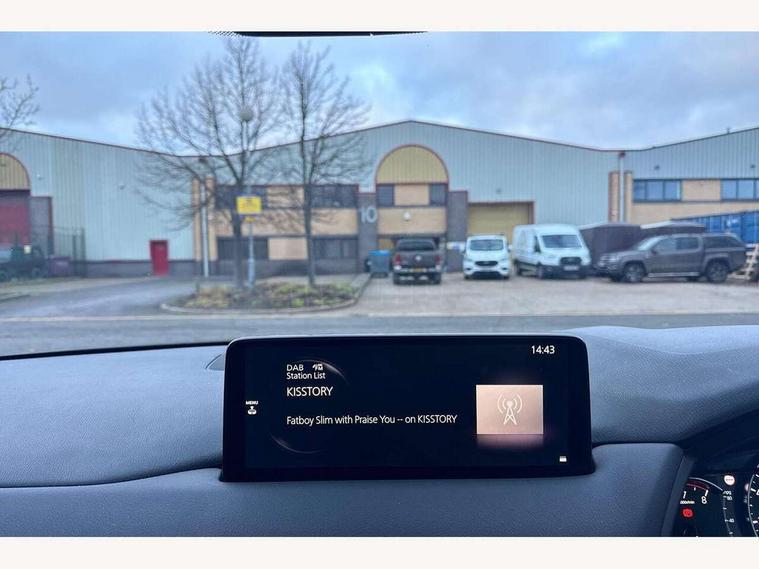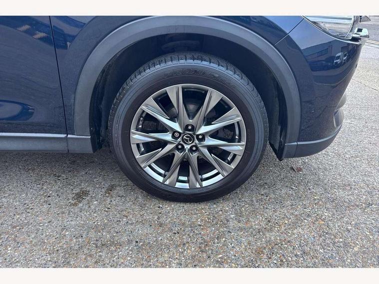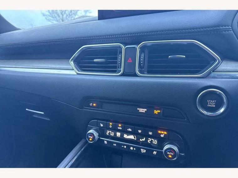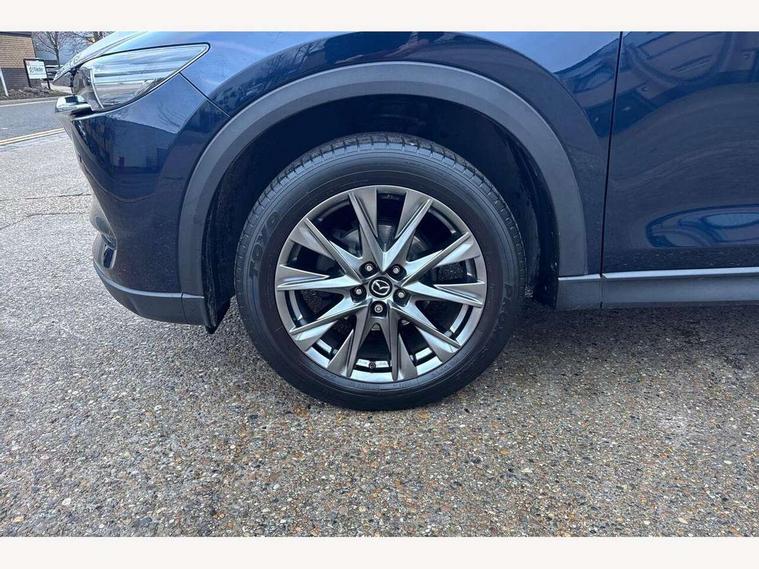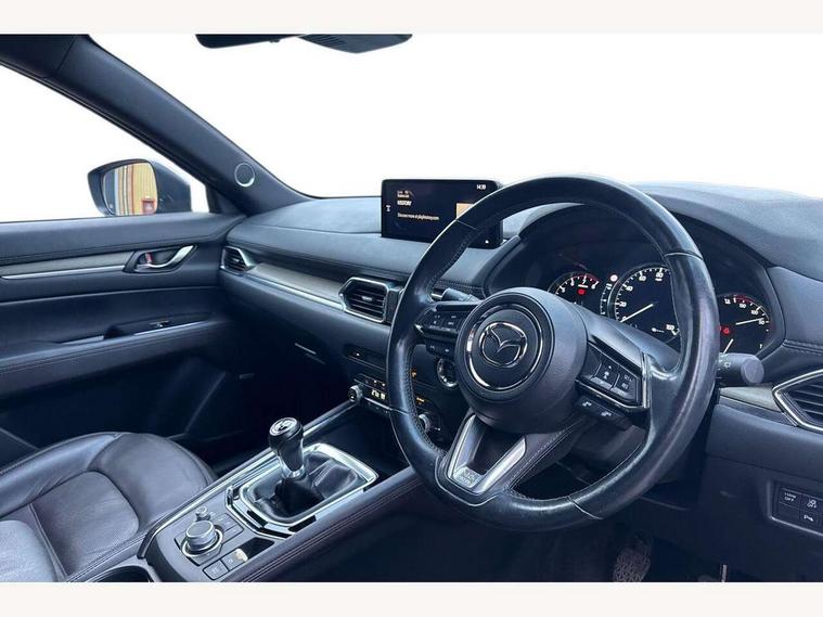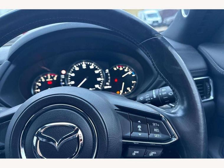 10.25" display with Mazda Connect infotainment, 360 degree surround camera, 7" colour TFT display, Apple car play/Android Auto, Blind spot monitoring with rear cross traffic alert, Bluetooth connectivity with voice control, Collision prevention assist, Colour head up display, Connected services, Driver attention alert system, Electric power steering, Emergency stop signalling system, Engine start/stop button, Forward collision warning, Front and rear parking sensors, Integrated navigation system, Intelligent speed assist, Lane departure warning system, Lane keep assist, Power tailgate, Radar cruise control, Service indicator, Traffic sign recognition, Trip computer, i-stop, 2 USB sockets in rear, 2x USB sockets in front, AM/FM radio, Bluetooth audio streaming, Bose premium sound system with 10 speakers, DAB Digital radio, Multimedia Commander including separate volume dial, Steering wheel mounted audio controls, Adaptive LED Headlights, Body colour door mirrors, Body colour roof spoiler, Body coloured front bumper with black lower mouldings, Body coloured rear bumper with black lower mouldings, Coming/leaving home lighting function, Door mirror integrated indicators, Dual exhaust pipes, Dusk sensitive headlamps, Electric adjustable/heated/folding door mirrors, Electric front/rear windows/one touch facility, Frameless auto dimming interior rear view mirror, High beam assist, Intermittent rear wash/wipe, LED daytime running lights, LED front fog lights, LED third brake light, Power tilt/slide sunroof, Privacy glass, Rain sensing front wipers, Scuff plates, Shark fin roof aerial, Signature LED rear combination lights, Windscreen wiper de-icer, 2 cupholders, 3 grab handles with rear coat hook, 40:20:40 Karakuri fold-flat seat system, 6 way electric adjustable passenger seat, 8 way electric driver seat with lumbar support + memory, Black roof lining, Driver/passenger front seatback pockets, Driver/passenger sunvisors + illuminated vanity mirrors (drivers with ticket holder), Dual zone climate control, Front and rear door pockets, Front centre armrest, Front centre console storage box, Front seat ventilation, Gear shift indicator, Heated front seats, Heated outer rear seats, Heated steering wheel, Height adjustable head restraints, Humidity sensor, Illuminated glovebox, Interior dome light with integral spotlight, ISOFIX child seat anchorage points attached on outer rear seats, Karakuri tonneau cover, Leather gear knob, Leather steering wheel with unique stitching and chrome centre bezel, LED interior illumination, Luggage compartment lighting, Nappa leather upholstery, Rear air vents, Rear centre armrest with 2 cupholders, Rear headrests, Rear power outlet, Rear seat recline, Sunglasses holder, Tilt/height adjustable steering wheel, 3 point front seatbelts with pre-tensioners, 3 rear 3 point seatbelts, ABS, Advanced Smart City Brake Support - SCBS, DSTC-Dynamic Stability and Traction Control, Dual front airbags, Electronic brake force distribution, Electronic parking brake with auto hold, Front and rear curtain airbags, Front passenger airbag deactivation, Front side airbags, G-Vectoring control, Hill hold assist, Rear smart city brake support, Seatbelt reminder front and rear, Smart brake support with forward obstruction warning, Tyre pressure monitoring system, Automatic door locking when moving off, Deadlock, Immobiliser, Power door locks, Remote central locking, Smart keyless entry, Thatcham Cat.1 alarm, Upper dashboard and door cards wood trim, 19" Bright alloy wheels, Tyre repair kit,