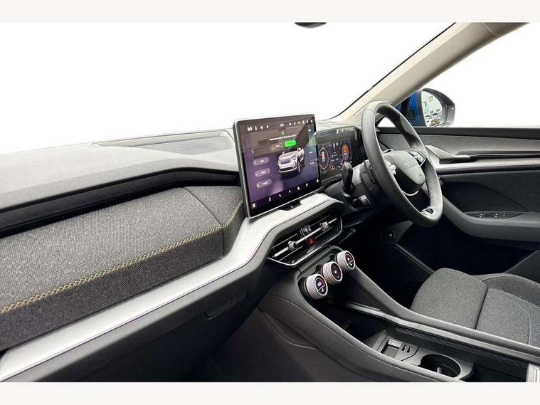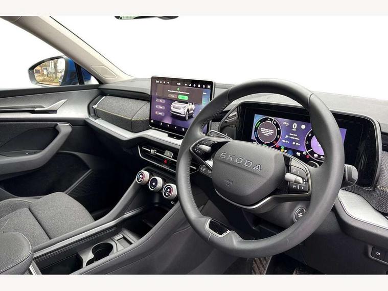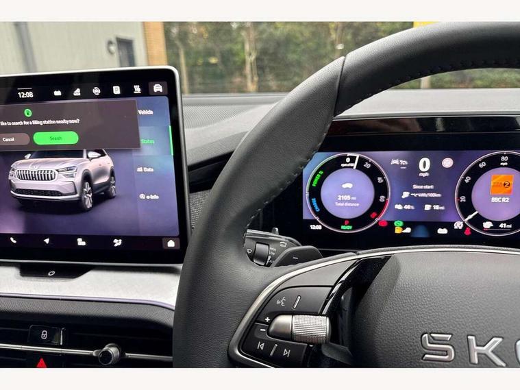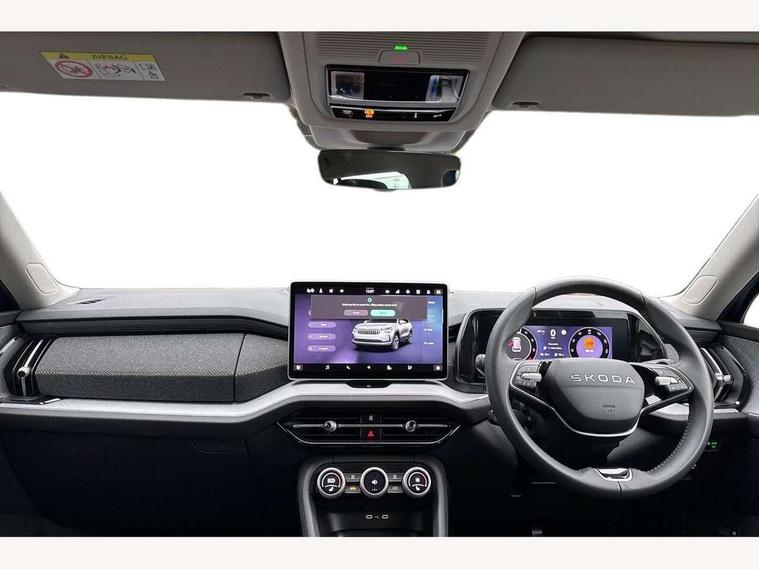 13" satellite navigation touchscreen display, Blind spot detection with door exit warning, Bluetooth system, ChatGPT functionality, Driver alert - Fatigue and drowsiness monitor, Dry display cleaner, Emergency call, Front and rear parking sensors, Front cross traffic assist, Lane assist, PAS, Rear traffic assist, Rear view camera, Tailgate unlocking from outside, Traffic sign recognition, USB C Port x 2 in front centre console, Virtual Cockpit - 10.25" digital display, Voice control system, Wireless charging for two smartphones (15W) with cooling function, Wireless SmartLink for Apple CarPlay and Android Auto, 32A charging cable, Stop/start function, 2x USB-C in the rear, 8 Speakers, DAB Digital radio, Aero front windscreen wipers with intermittent function, All weather light, Auto dimming rear view mirror, Black wheel arch surrounds, Body colour bumpers, Body colour door mirrors and handles, Cornering light and poor weather light, Electric folding /adjustable/separted heated/folding door mirrors, auto dimming with boarding sports and memory function, Electric front and rear windows, Exterior black decorative trims, Heat insulating glass in windshield, Heated rear window, Ice scraper in fuel tank cap, Invisible tailpipe, LED daytime running lights, LED front fog lamps, LED Headlights, LED rear fog light, LED rear lights, LED third brake light in rear spoiler, Light assistant with automatic headlight control and coming home feature, Logo projection in door mirrors, Rear roof spoiler, Rear side wing doors, Rear window wiper, Safety reflectors on front and rear doors, Unique dark chrome design logo on alloy wheels, Window control switches with black trim, Windscreen wipers with rain sensor, Without engine designation, 1.5l bottle holder points in all door, 1x centre rear reading light, 3 configurable smart dials with 32mm coloured display, 3 seat bench in 2nd row, 4 foldable roof handles with rear coat hooks, Ambient interior lighting - Dashboard, front-door stowage compartments, front and rear door panels and footwell lighting, Automatic gear selector on steering column, Chrome interior door handles, Driver/front passenger reading lights, Fabric headlining, Fixed bench 40:60:40 split folding backrests, Front and rear floor mats, Front centre armrest with jumbo box storage compartment, cup holder and 12V socket, Height adjustable front headrests, Isofix child seat fittings in outer rear seats and front passenger with top tether, iV badging on boot, Manual height adjustment for front passenger seats and thigh support extender, Manual lumbar support for front passenger seat, Manually adjustable steering column, Pollen filter, Rear centre armrest with cupholders, Rear seat boot backrest release, Single front passenger seat, Skoda lettering on steering wheel, Storage pocket including mobile phone pockets on the backs of the front seats, Sunvisors with illuminated vanity mirrors, Three rear height adjustable headrests, Ticket holder on A Pillar, Tri zone climate control, Umbrella in door panel x1 made from sustainable materials, Upper and lower glovebox with card holder and coin compartment, USB C port by rear view mirror for charging only (15W), Auto door release and activation of warning lights in the event of an accident, Driver and front passenger airbag with knee airbag and front passenger airbag deactivation, Electric child locks, Electronic parking brake, ESC (incl. ABS+EMD+MSR+ASR+EDL+HBA+DSR+RBS+ESBS+MCB+TSA+XDS), Front assist with braking reaction to vehicles, pedestrians and cyclists, Front disc brakes, Fuel cut off safety device, Height adjustable front 3 point seatbelts + pretensioners, Hill hold assist, Junction assist with automatic emergency braking, Rear disc brakes, Safety vest holder in door, Seat belt reminder for all seats, Three point rear seat belts, Two tone horn, Tyre pressure monitor, Alarm with interior monitoring and tilt sensor with safe function, Anti-theft wheel bolts, Immobiliser, Remote central locking with 2 keys, Breakdown kit, Tool kit,