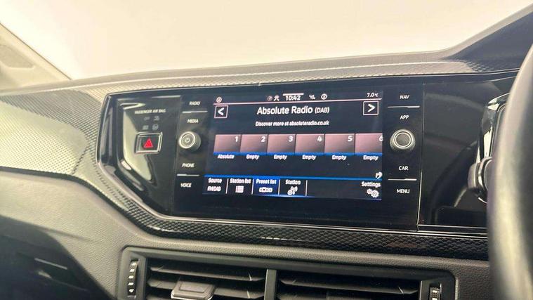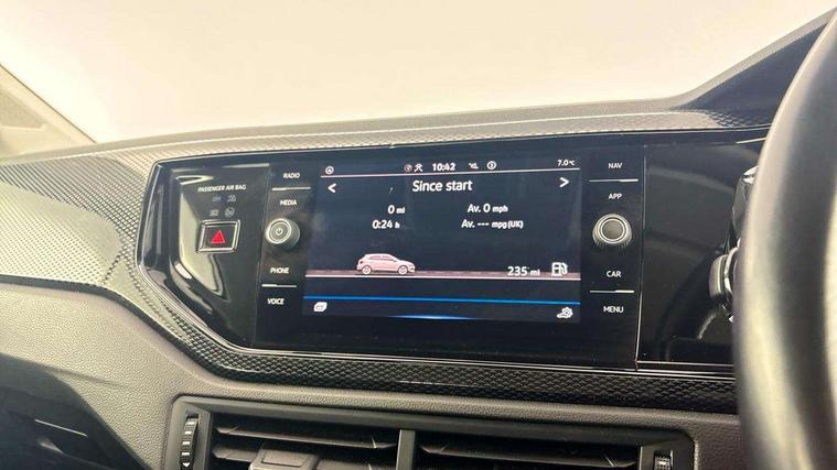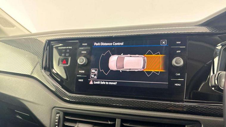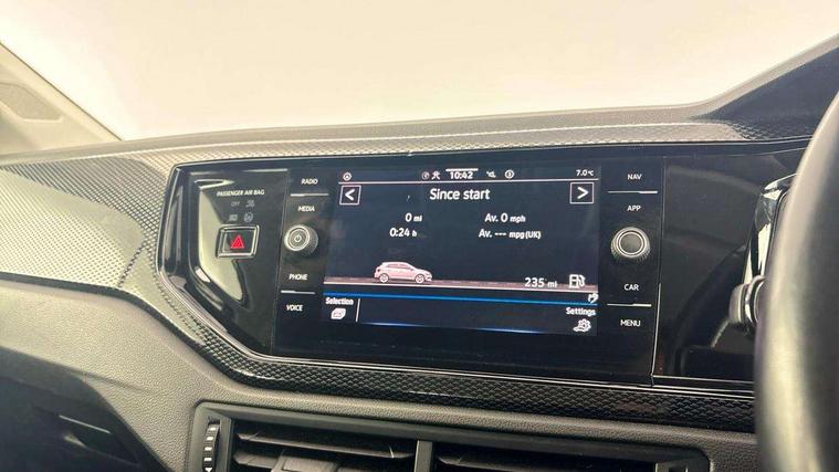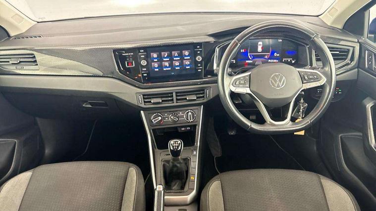 Adaptive cruise control without follow-to-stop and speed limiter, Bluetooth mobile phone interface, Driver alert system, Emergency call service, Front assist system, Power assisted speed sensitive steering, Preparation for We connect and We connect plus, Speedo and rev counter, electronic odometer, trip, service interval display and fuel gauge, Standard rear axle, Travel Assist - Lane keeping system and traffic jam assist, Travel assist including emergency assist, Trip computer, Warning signal and warning light for front and rear seatbelts not fastened, Washer fluid level indicator, Wireless app connect, Front wheel drive, Rear shock absorpion, Start-stop system with battery regeneration (recuperation - energy recovery during braking), DAB Digital radio, Diversity antenna for FM reception, Front and rear 6 speakers, Automatic dimming interior rear view mirror, Body colour bumpers, Body colour door handles, Body colour door mirrors, Electric front windows, Heat insulating darkened glass in side and rear windows, Heat insulating glass windscreen, Power folding adjustable/heated exterior mirrors and front passenger exterior mirror lowering function, Rain sensor, Rear electric windows, Rear fog light, Rear side wing doors, Rear windscreen washer and wiper with interval delay, Third brake light, 12V power socket in centre console, 2 front and 2 rear reading lights, 2 USB-C ports in the front, 2 USB-C charging sockets on the center console in the rear, 3 rear head restraints, 60/40 split folding rear seat and rear seat bench not split, Ceramique headliner, Chrome plated radiator grille inserts, air vent surrounds and light switch surrounds, Door and side trim panel, Driver and front passenger seat height adjustment, Driver/passenger sunvisors with illuminated vanity mirrors, Front centre armrest, Front seat backrest storage pockets, Front standard seats, Handbrake lever handle in leather, Hartley/Thomas cloth upholstery, Isofix child seat preparation easy-fit (for two outer rear seats, and front passenger seat) compatible with I-size, Leather trimmed gear knob, Luggage compartment cover, Luggage compartment floor, Luggage compartment lighting, Multifunction steering wheel, Single front passenger seat, Standard pedal cluster, Light and vision pack - Polo, 3 point height adj front seatbelts + pretensioners, 3x3 point rear seatbelts, ABS, Driver and front passenger airbag with front passenger airbag deactivation, Drivers and front passengers safety optimised head restraints, ESC (Electronic stability control) + EDL (Electronic Differntial lock) and ASR (Traction control), Extended and predictive pedestrian/ cyclist protection, Front curtain and side airbags with center airbag, Front disc brakes, Hill hold control, Manual child lock in rear doors, Rear drum brakes, Single tone horn, Tyre pressure loss indicator, Alarm with interior protection, Anti-theft alarm system with interior monitoring, backup horn, and towing protection, Anti-theft wheel bolts, Electronic engine immobiliser, Lava stone black gloss/matt decorative inserts in dash and front door panels, Low rolling resistance tyres,