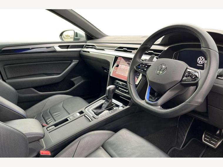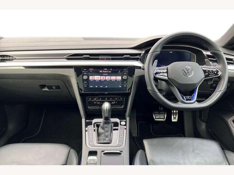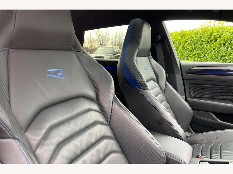 Adaptive cruise control (ACC) with speed limiter, front assist (reacting vehicles pedestrian and cyclists) and follow to stop, Advanced driver attention and drowsiness monitor, App connect including wireless Apple CarPlay, Camera for warning system, Digital cockpit with 10.25" high resolution TFT display screen with customisable menus and information, Driver profile selection including ECO function, Dynamic road sign display, eCall - Emergency call service for SOS calls to emergency response, Emergency assist, Hands free boot opening, Press and drive key, Progressive steering, R driving mode button on steering wheel, Side scan lane change assist including rear cross traffic alert, Speedo and rev counter, electronic odometer, trip, service interval display and exterior temperature gauge, Tailgate, Travel assist - Lane keeping assist and traffic jam assist, Voice activation for telephone and navigation, All wheel drive - 4Motion, Start/stop function with battery regeneration, XDS electronic differential lock, External, USB type C data sockets with increased charging performance front (45 Watt), Premium USB cable in choice of either Apple or Android smartphone compatibility, Auto dimming interior rear view mirror, Automatic coming/leaving home lighting function, Automatic headlights, Body colour door handles, Body colour side skirt, Body coloured top and matt black lower door mirrors with integrated indicators, Chrome side window surrounds, Dynamic headlight range control, Electric folding door mirror, adjustable, heated with front passenger exterior mirror lowering function, Front and rear electric windows, Front and rear stainless steel door sill protection, Front windscreen washers and wipers with 4x interval delay, Heat insulating side and rear windows, Heated rear windscreen, Heated windscreen washer jets, LED 3rd brake light, LED rear combination lamp with dynamic indicators, LED rear number plate lights, Left and right chrome effect twin trapezoid exhaust tailpipe surrounds, Panoramic sunroof with tilting and sliding including integrated roller blind, R Line design body coloured bumpers, R logo light projection, R logo on radiator grille, side panels and rear, R specific radiator grille, R specific rear bumper and R specific diffusor in black, Rain sensor, Rear fog lamp on one side and reversing lamp on both sides, Rear side wing doors, Rear tinted glass from B pillar backwards, approx 65% tinted, Rear windscreen washer and wiper with interval delay, Roof spoiler, 12V socket in front centre console, 12V socket on rear of front centre armrest, 14way electric adj front seats with lumbar + ergoComfort driver seat with memory/massage, comfort entry, integrated front headrest + door mirror memory, 3 rear head restraints, 3 seat bench in 2nd row, 30 colours options interior ambient lighting, 60:40 split folding rear seat backrests with centre armrest, Air care climatronic 3 Zone electronic air conditioning with automatic air recirculation, Chrome trim on upper and lower air vents extending across cockpit, Driver and front passenger sunvisor with vanity mirror, Front cupholders x 2, Front footwell illumination, Glovebox, Heated front seats, Height/reach adjust steering wheel, Isofix child seat preparation easy fit for two outer rear seats, Luggage compartment lighting, Nappa leather upholstery with side bolster and headrest, Pedals and footrest in stainless steel, Premium sports seats with R-logo, R performance leather wrapped heated multi-function sports steering wheel with touch controls and larger shifting paddles, blue stitching and R-logo, R specific floor mats with R-logo and stitching, Removable luggage compartment cover, Single front passenger seat, Split folding front seat backrest with front centre armrest, Titanium black roof lining, Two LED front reading light, 18" performance brakes, 3 rear three point seatbelts, ABS+EBD+Brake assist, Child locks on rear doors, Driver airbag and front passenger airbags with deactivation switch including driver knee airbags, Electronic parking brake, Electronic stability control (ESC) and Electromechanical brake booster, Front disc brakes, Front side airbags with curtain airbags, Hill start assist, Pro active occupant protection to detect critical situations with elevated accident potential from the front, R performance torque vectoring, R specific blue brake calipers, Rear disc brakes, Three point height adjust front seatbelts + pretensioners, Two tone horn, Tyre pressure monitor, Warning buzzer for seatbelts if unfastened, Warning triangle, Alarm with interior protection with deactivation via infotainment system, Electronic engine immobiliser, Keyless entry system including start/stop button on centre console, Remote central locking, Aluminium decorative inserts, Chrome trim on lower doors in front and rear, Leatherette insert on door and side trim panel in foam film, Piano black decorative inserts in centre console, R specific decor inlay aluminium black carbon,