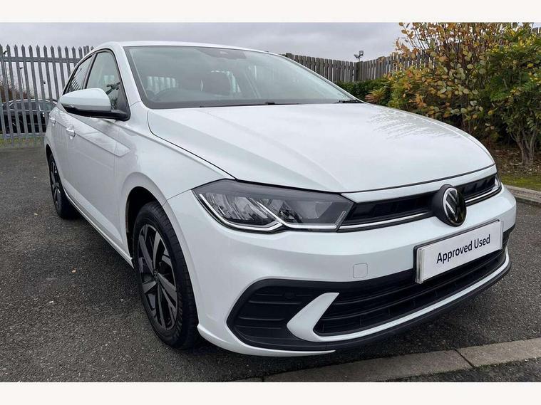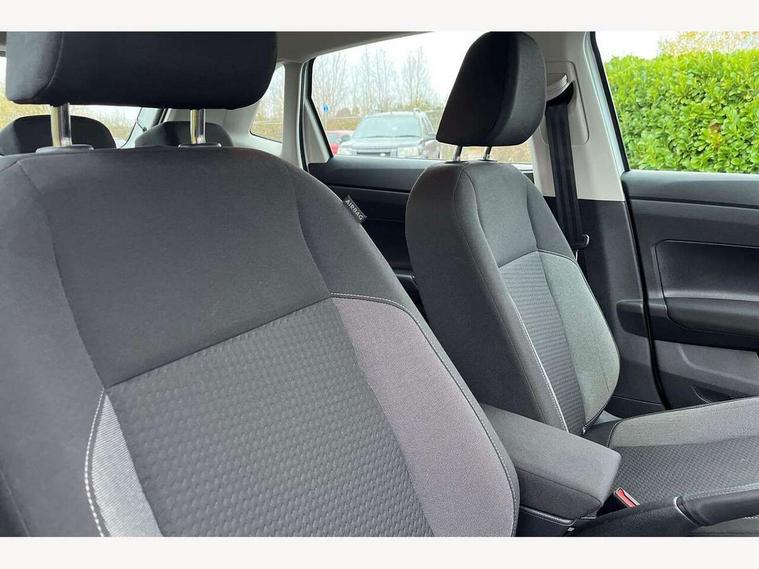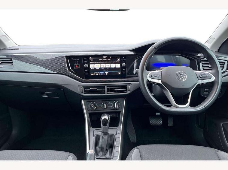 Adaptive cruise control with follow-to-stop and speed limiter, Advanced driver attention and drowsiness monitor, Bluetooth mobile phone interface, Dynamic road sign display, Emergency call service, Multifunction camera, Power assisted speed sensitive steering, Preparation for navigation system with media and internet package, Preparation for We connect and We connect plus, Speedo and rev counter, electronic odometer, trip, service interval display and exterior temperature gauge, Standard rear axle, Travel Assist - Lane keeping system and traffic jam assist, Travel assist including emergency assist, Trip computer, Warning signal and warning light for front and rear seatbelts not fastened, Washer fluid level indicator, Wireless app connect, Front wheel drive, Rear shock absorpion, Start-stop system with battery regeneration (recuperation - energy recovery during braking), DAB Digital radio, Diversity antenna for FM reception, Front and rear 6 speakers, Automatic dimming interior rear view mirror, Automatic headlight control with LED separate daytime running lights with coming/leaving home function, Body colour bumpers with chrome inserts, Body colour door handles, Body colour door mirrors, Electric front windows, Engine badge deletion, Headlight range adjustment, Heat insulating and laminated safety glass windshield, Heat insulating darkened glass in side and rear windows, LED Headlights, LED rear combination lamps, Power folding adjustable/heated exterior mirrors and front passenger exterior mirror lowering function, Rain sensor, Rear electric windows, Rear fog light, Rear side wing doors, Rear windscreen washer and wiper with interval delay, Third brake light, 12V power socket in centre console, 2 front and 2 rear reading lights with switch off delay and dimmer, 2 USB-C ports in the front, 2 USB-C charging sockets on the center console in the rear, 3 rear head restraints, 60/40 split folding rear seat and rear seat bench not split, Ceramique roof lining, Chrome plated radiator grille inserts, air vent surrounds and light switch surrounds, Door and side trim panel, Driver and front passenger seat height adjustment, Driver/passenger sunvisors with illuminated vanity mirrors, Front centre armrest, Front seat backrest storage pockets, Front standard seats, Handbrake lever handle in leather, Hartley/Thomas cloth upholstery, Headliner in recycled material, Isofix child seat preparation easy-fit (for two outer rear seats, and front passenger seat) compatible with I-size, Leather trimmed gear knob, Luggage compartment cover, Luggage compartment lighting, Removable luggage compartment floor, Single front passenger seat, Standard climatic zones, Standard pedal cluster, Three spoke leather wrapped multifunction steering wheel with shifting paddles, Light and vision pack - Polo, 3 point height adj front seatbelts + pretensioners, 3x3 point rear seatbelts, ABS, Driver and front passenger airbag with front passenger airbag deactivation, Drivers and front passengers safety optimised head restraints, ESC (Electronic stability control) + EDL (Electronic Differntial lock) and ASR (Traction control), Extended and predictive pedestrian/ cyclist protection, Front assist with autonomous emergency braking (for Adaptive Cruise Control ACC up to 130 mph), Front curtain and side airbags with center airbag, Front disc brakes, Hill hold control, Manual child lock in rear doors, Rear drum brakes, Single tone horn, Tyre pressure loss indicator, Alarm with interior protection, Anti-theft alarm system with interior monitoring, backup horn, and towing protection, Anti-theft wheel bolts, Electronic engine immobiliser, Lava stone black gloss/matt decorative inserts in dash and front door panels, Low rolling resistance tyres,