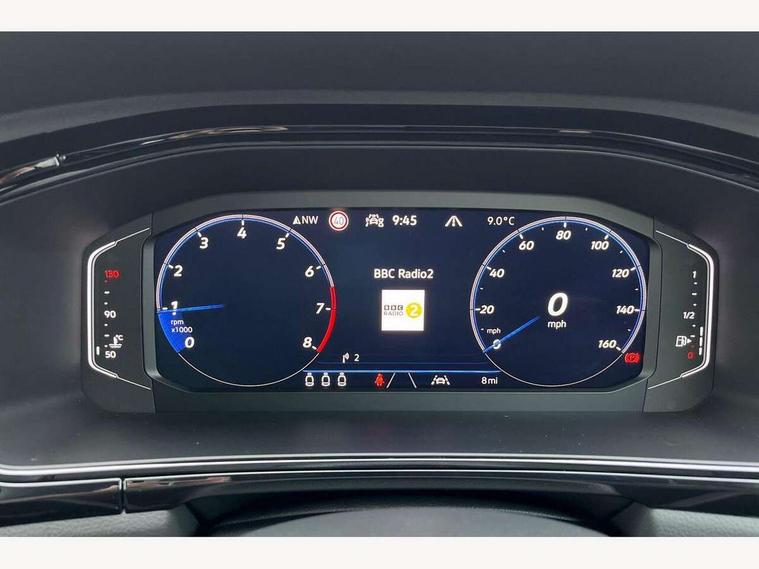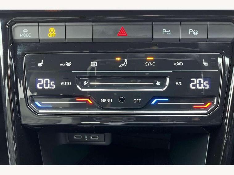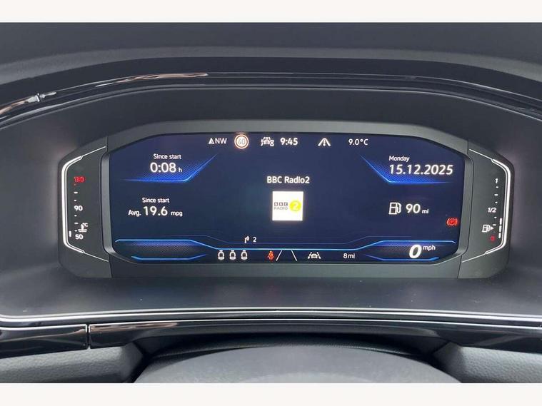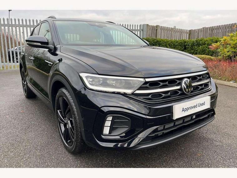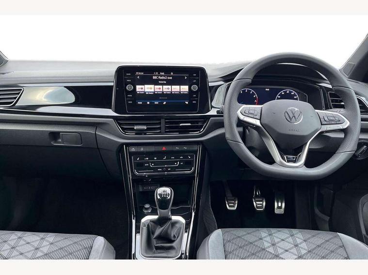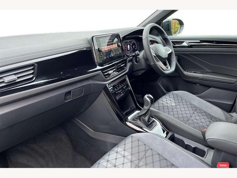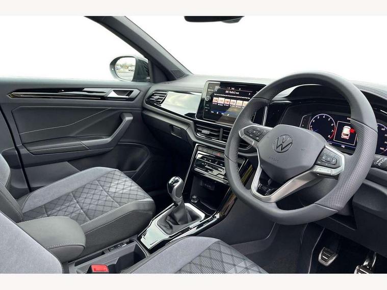 10.25" Digital cockpit pro, Advanced driver attention and drowsiness monitor, Emergency call service, Lane keeping system Lane Assist, Mobile phone interface, Modified key software - reduce switch off time for key status change to Long no motion, Online services, Park assist including front and rear parking sensors, Power assisted speed sensitive steering, Service interval indicator, Tailgate/trunk lid release from outside, Think blue trainer driver tips and journey analysis, Warning sound and light for front seatbelts unfastened, Wireless app connect, Battery regeneration during braking, Rear shock absorption chassis with increased ride height, Start/stop function with battery regeneration, DAB Digital radio, Diversity antenna for FM reception, Front and rear 6 speakers, Music playback - MP3, WMA and AAC files, Premium USB cable in choice of either Apple or Android smartphone compatibility, SD card slot, Simultaneous pairing of 2 compatible mobile devices, Title and cover art display, We Connect and We Connect Plus functionality, Auto dimming interior rear view mirror, Automatic hazard lights activation under emergency braking, Automatic headlight control with LED separate daytime running lights with coming/leaving home function, Dynamic cornering light, Electrically adjustable and heated door mirrors, Extended roof spoiler, Exterior mirrors aspherical on driver side, convex on front passenger side, External USB type C socket and charging sockets, Front windscreen wiper with intermittent wipe and 4 position delay, Heated rear window, Illuminated front grille, IQ LED matrix headlights, LED 3rd brake light, LED rear number plate lights, LED rear tail lights with dynamic turn signal, Light mode for poor weather, rain, fog or snow, Power windows with comfort operation and circuit breaker, R-Line design body coloured bumpers, Rain sensor, Rear exhaust tailpipe, Rear fog light on one side and reversing lights on both sides, Rear side wing doors, Rear wash/wipe with intermittent wipe setting, Remote electrically foldable door mirrors, puddle lights and reverse activated passenger's door mirror, 12V power socket in centre console, 3 rear head restraints, 3 seat bench in 2nd row, 4 load lashing points in luggage compartment, Air care climatronic air conditoning system with active combination filter and 2-zone temperature control, Artvelours cloth upholstery, Black roof lining, Chrome plated radiator grille inserts, air vent surrounds and light switch surrounds, Door and side trim panel with leatherette insert, Drawer under drivers seat, Driver seat height adjust, Driver's seat lumbar support, Front + rear carpet mats, Front centre armrest, Front comfort sports seats, Front cupholders x 2, Front footwell illumination, Front reading light, Front scuff plates with R Line logo, Front seat back storage pockets, Glove compartment door with light, Instrument lighting, white adjustable panel illumination, Interior ambient lighting and surround lighting, Interior light delay, Isofix child seat preparation, Leather gearshift handle, Load-through provision with cup holder when folded down ('Unsplit rear seat bench, split folding backrest, with centre armrest), Luggage compartment lighting, Non-folding front passenger seat backrest, Passenger seat height adjuster, Passenger seat lumbar support, Single front passenger seat, Stainless steel pedals, Storage compartment in left and right luggage area, Storage compartment in rear doors, Storage compartments in driver and front passenger doors, Sunvisors with illuminated vanity mirrors, Variable boot floor, height adjustable and removable, Winter pack without heated windscreen washer jets - T-Roc, 3 point height adj front seatbelts + pretensioners, 3 point seatbelts in outer rear with ECE label, ABS, Child locks on rear doors, City emergency braking and pedestrian monitoring, Driver and front passenger airbag with front passenger airbag deactivation, Driver and front passenger safety-optimised head restraints, Drivers seatbelt reminder, Electronic parking brake, Electronic Stability Control (ESC) inc EDL (Electronic Differential Lock) and ASR (Traction Control), Front and rear passengers curtain airbag system including front side airbags, Front disc brakes, Hill start assist, Predictive pedestrian protection, Rear disc brakes, Two tone horn, Tyre pressure loss indicator, Volkswagen roadside assistance, Tool kit, Trims for alloy wheels, Tyre mobility kit including compressor and sealing foam,