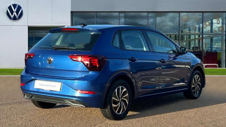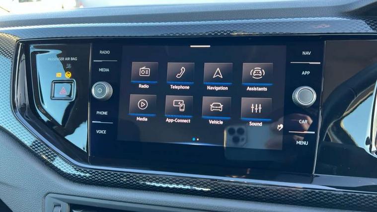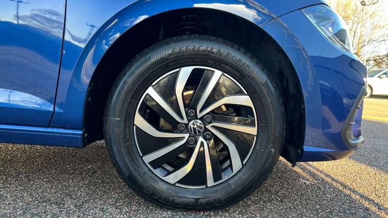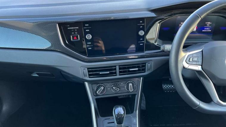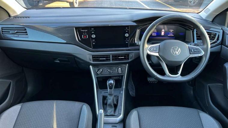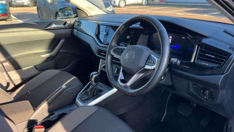 Adaptive cruise control with follow-to-stop and speed limiter, Advanced driver attention and drowsiness monitor, Bluetooth mobile phone interface, Dynamic road sign display, Emergency call service, Multifunction camera, Power assisted speed sensitive steering, Preparation for navigation system with media and internet package, Preparation for We connect and We connect plus, Speedo and rev counter, electronic odometer, trip, service interval display and exterior temperature gauge, Standard rear axle, Travel Assist - Lane keeping system and traffic jam assist, Travel assist including emergency assist, Trip computer, Warning signal and warning light for front and rear seatbelts not fastened, Washer fluid level indicator, Wireless app connect, Front wheel drive, Rear shock absorpion, Start-stop system with battery regeneration (recuperation - energy recovery during braking), DAB Digital radio, Diversity antenna for FM reception, Front and rear 6 speakers, Automatic dimming interior rear view mirror, Automatic headlight control with LED separate daytime running lights with coming/leaving home function, Body colour bumpers with chrome inserts, Body colour door handles, Body colour door mirrors, Electric front windows, Engine badge deletion, Headlight range adjustment, Heat insulating and laminated safety glass windshield, Heat insulating darkened glass in side and rear windows, LED Headlights, LED rear combination lamps, Power folding adjustable/heated exterior mirrors and front passenger exterior mirror lowering function, Rain sensor, Rear electric windows, Rear fog light, Rear side wing doors, Rear windscreen washer and wiper with interval delay, Third brake light, 12V power socket in centre console, 2 front and 2 rear reading lights with switch off delay and dimmer, 2 USB-C ports in the front, 2 USB-C charging sockets on the center console in the rear, 3 rear head restraints, 60/40 split folding rear seat and rear seat bench not split, Ceramique roof lining, Chrome plated radiator grille inserts, air vent surrounds and light switch surrounds, Door and side trim panel, Driver and front passenger seat height adjustment, Driver/passenger sunvisors with illuminated vanity mirrors, Front centre armrest, Front seat backrest storage pockets, Front standard seats, Handbrake lever handle in leather, Hartley/Thomas cloth upholstery, Headliner in recycled material, Isofix child seat preparation easy-fit (for two outer rear seats, and front passenger seat) compatible with I-size, Leather trimmed gear knob, Luggage compartment cover, Luggage compartment lighting, Removable luggage compartment floor, Single front passenger seat, Standard climatic zones, Standard pedal cluster, Three spoke leather wrapped multifunction steering wheel with shifting paddles, Light and vision pack - Polo, 3 point height adj front seatbelts + pretensioners, 3x3 point rear seatbelts, ABS, Driver and front passenger airbag with front passenger airbag deactivation, Drivers and front passengers safety optimised head restraints, ESC (Electronic stability control) + EDL (Electronic Differntial lock) and ASR (Traction control), Extended and predictive pedestrian/ cyclist protection, Front assist with autonomous emergency braking (for Adaptive Cruise Control ACC up to 130 mph), Front curtain and side airbags with center airbag, Front disc brakes, Hill hold control, Manual child lock in rear doors, Rear drum brakes, Single tone horn, Tyre pressure loss indicator, Alarm with interior protection, Anti-theft alarm system with interior monitoring, backup horn, and towing protection, Anti-theft wheel bolts, Electronic engine immobiliser, Lava stone black gloss/matt decorative inserts in dash and front door panels, Low rolling resistance tyres,