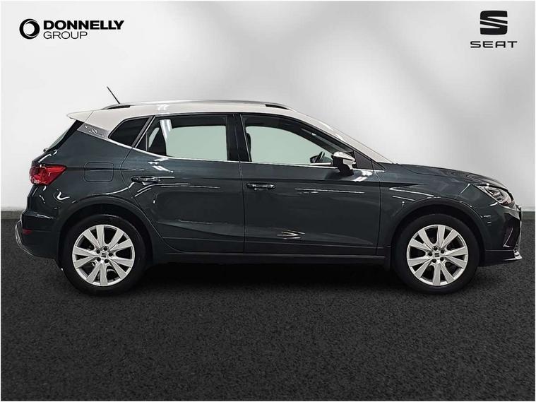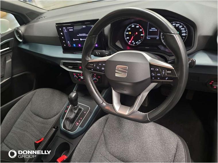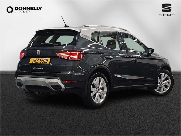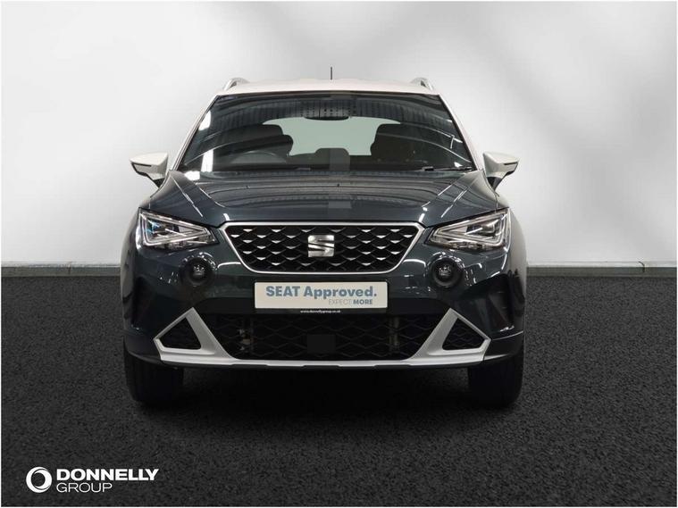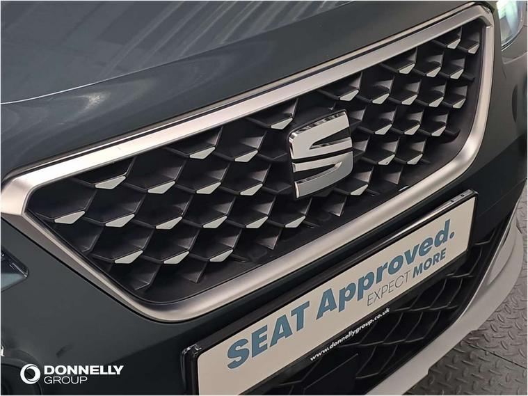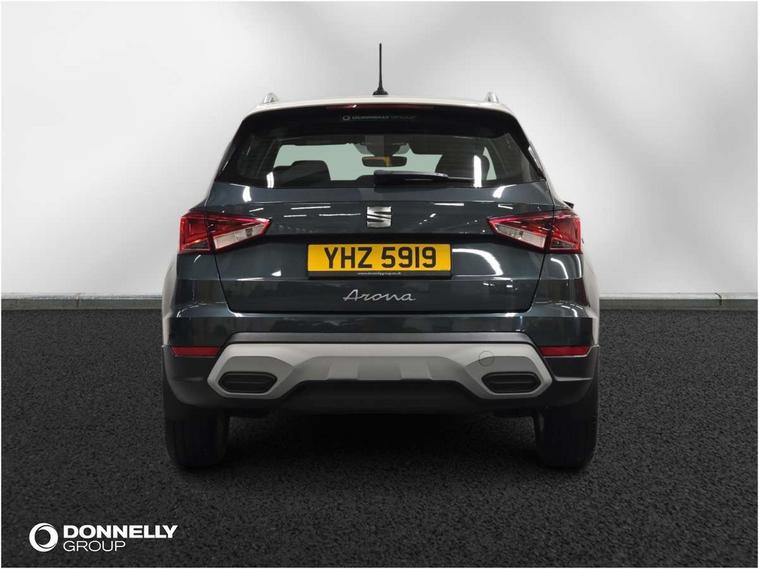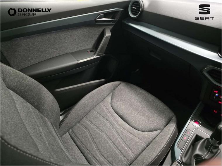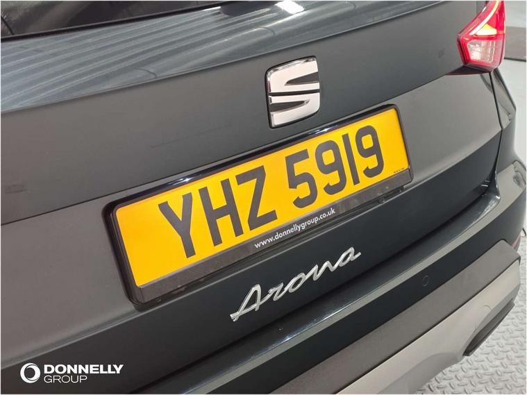 'Lights On' Reminder warning buzzer, Digital clock, E-call, Electric speed sensitive power steering, Full Link Smartphone Integration with Mirror Link, Apple Car Play, Google Android Auto with USB Type C cable for Apple and Android compatibility, Lane keeping system, Low fuel warning light, Outside temperature display, Rear parking sensor, RPM counter, Seat connect with safety, service, remote and online, Trip computer, Bluetooth interface for hands free and audio streaming, DAB digital radio and AM/FM radio, Steering wheel mounted audio controls, Anti theft roof antenna, Auto dimming interior rear view mirror, Automatic activation of hazard warning lights, Body coloured bumpers, Body coloured door handle inserts, Chrome roof rails and window surrounds, Chrome window trim, Electric front/rear windows, Electrically adjustable, heated and folding door mirrors, FULL LED automatic headlights with dynamic headlight range control, coming and leaving home, LED daytime running lights, Hidden exhaust pipe, LED rear tail lights and licence plate lights, Protective side mouldings, Rain sensing wipers, Rear side wing doors, Rear spoiler, Rear window wash/wipe, Roof colour door mirrors, Third brake light, Visible VIN plate, Windshield wiper with intermittent control and potentiometer, 2 cupholders, 3 seat bench in 2nd row, 60/40 split folding rear seat, Aircare filter, Aran green Illuminated coloured air vent, Black interior roof, Cloth upholstery, Double boot floor, Driver sunvisor with covered mirror + card holder, Dual zone climate control, Flat bottomed leather steering wheel/gear knob/handbrake, Front courtesy light with 2x front and 2x rear reading lights, Front seat back storage pockets, Gear shift indicator, Height adjustable front seats, Height/reach adjustable steering column, Illuminated boot, Instrument lighting with brightness control, Interior ambient lighting, Interior light in footwell, central console and door panel, ISOFIX points in outer rear seats with top tether anchorage points, Passenger sunvisor with vanity mirror, Single front passenger seat, Storage net on centre console, Two front and three rear height adjustable headrests, Connectivity pack plus - Arona, Interior chrome pack - Arona, Safety and driving pack (M) - Arona, Storage pack - Arona, 3 point seatbelts on all rear seats, ABS, Active front headrests, Child locks on rear doors, Driver and front passenger airbags with front passenger airbag de activation, front side and curtain airbags, Electronic stability control, Emergency Brake Assist (EBA) and front assist, Front and rear seatbelt reminder, Hill hold control, Multi-Collision braking, Tiredness recognition system, Traction control, Tyre pressure monitoring system, Alarm with back-up horn, Electronic engine immobiliser, KESSY Keyless entry and go, Locking wheel bolts, Remote central locking + deadlocks, Tow away protection, Titan black dashboard, 17" Dynamic alloy wheels,