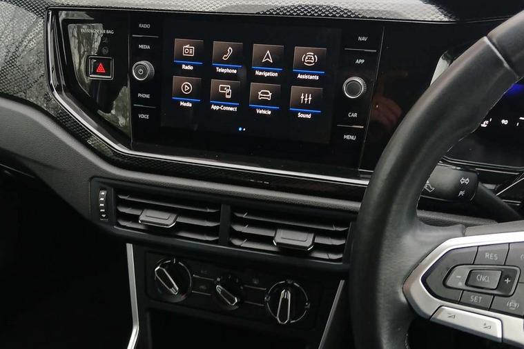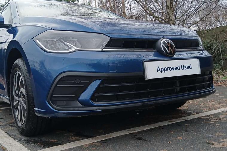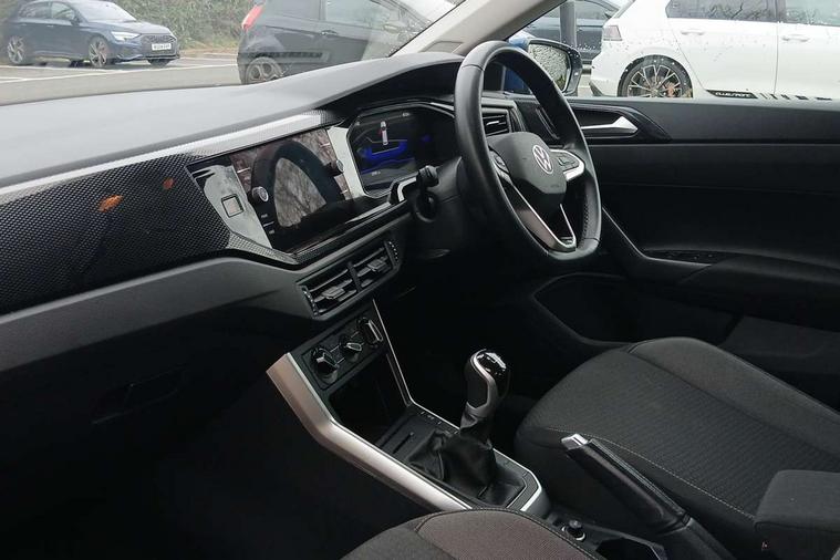 Advanced driver attention and drowsiness monitor, Bluetooth mobile phone interface, Cruise control + speed limiter, Dynamic road sign display, Emergency call service, Lane keeping system Lane Assist, Multifunction camera, Power assisted speed sensitive steering, Preparation for navigation system with media and internet package, Preparation for We connect and We connect plus, Speedo and rev counter, electronic odometer, trip, service interval display and exterior temperature gauge, Standard rear axle, Trip computer, Warning signal and warning light for front and rear seatbelts not fastened, Washer fluid level indicator, Wireless app connect, Front wheel drive, Rear shock absorpion, Start-stop system with battery regeneration (recuperation - energy recovery during braking), DAB Digital radio, Diversity antenna for FM reception, Front and rear 6 speakers, Automatic dimming interior rear view mirror, Automatic headlight control with LED separate daytime running lights with coming/leaving home function, Body colour bumpers with chrome inserts, Body colour door handles, Body colour door mirrors, Electric front windows, Engine badge deletion, Headlight range adjustment, Heat insulating and laminated safety glass windshield, Heat insulating darkened glass in side and rear windows, LED Headlights, LED rear combination lamps, Power folding adjustable/heated exterior mirrors and front passenger exterior mirror lowering function, Rain sensor, Rear electric windows, Rear fog light, Rear side wing doors, Rear windscreen washer and wiper with interval delay, Third brake light, 12V power socket in centre console, 2 front and 2 rear reading lights with switch off delay and dimmer, 2 USB-C ports in the front, 2 USB-C charging sockets on the center console in the rear, 3 rear head restraints, 60/40 split folding rear seat and rear seat bench not split, Ceramique roof lining, Chrome plated radiator grille inserts, air vent surrounds and light switch surrounds, Door and side trim panel, Driver and front passenger seat height adjustment, Driver/passenger sunvisors with illuminated vanity mirrors, Front centre armrest, Front seat backrest storage pockets, Front standard seats, Handbrake lever handle in leather, Hartley/Thomas cloth upholstery, Headliner in recycled material, Isofix child seat preparation easy-fit (for two outer rear seats, and front passenger seat) compatible with I-size, Leather trimmed gear knob, Luggage compartment cover, Luggage compartment lighting, Removable luggage compartment floor, Single front passenger seat, Standard climatic zones, Standard pedal cluster, Three spoke leather wrapped multifunction steering wheel, Light and vision pack - Polo, 3 point height adj front seatbelts + pretensioners, 3x3 point rear seatbelts, ABS, Driver and front passenger airbag with front passenger airbag deactivation, Drivers and front passengers safety optimised head restraints, ESC (Electronic stability control) + EDL (Electronic Differntial lock) and ASR (Traction control), Extended and predictive pedestrian/ cyclist protection, Front assist with autonomous emergency braking (for Adaptive Cruise Control ACC up to 130 mph), Front curtain and side airbags with center airbag, Front disc brakes, Hill hold control, Manual child lock in rear doors, Rear drum brakes, Single tone horn, Tyre pressure loss indicator, Alarm with interior protection, Anti-theft alarm system with interior monitoring, backup horn, and towing protection, Anti-theft wheel bolts, Electronic engine immobiliser, Lava stone black gloss/matt decorative inserts in dash and front door panels, Low rolling resistance tyres,