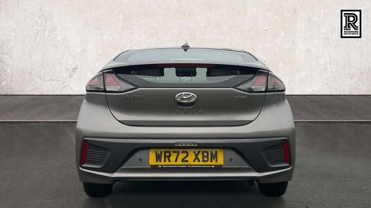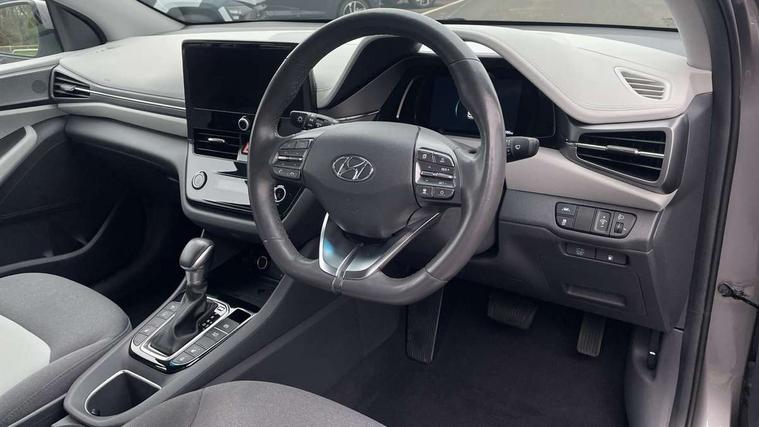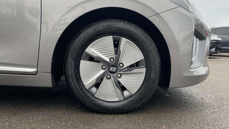 10.25" touchscreen satellite navigation includes traffic messaging channel, mapcare, live services and bluelink, Apple car play/Android Auto, Bluetooth system, Cruise control, Driver attention alert system, E-call, Eco driving assistant system (ECO DAS), Electric power steering with variable drive modes, Gear lever drive mode selector, Lane departure warning system with lane keep assist - LKAS, Parking Brake - Foot Brake, Parking system with rear camera and guidance system, Rear parking sensor, Rear view monitor, Roadside assistance, Supervision cluster with 7" high resolution TFT LCD, Voice recognition, Windscreen washer fluid sensor and warning indicator, Wireless phone charging pad, DAB Digital radio, Infinity sound system includes 1 centre, 2 tweeters, 2 front, 2 rear and 1 ext amp, Radio data system, Steering wheel audio, phone and cruise controls, USB and aux connection in front, Active air flap radiator grille, Auto dimming rear view mirror, Automatic headlights with dusk sensor, Body colour bumpers, Body colour door handles with chrome inserts, Body colour door mirrors, Bodyside mouldings, Chrome door scuff with ioniq logo, Chrome finish window surround, Chrome radiator grille, Door mirror puddle lights, Electric adjustable door mirrors, Electric front windows - anti trap + one touch, Electric heated door mirrors, Heated rear windscreen, High beam assist, LED daytime running lights, LED Headlights, LED indicators in door mirrors, LED rear fog light, Positioning Lights - LED, Power folding door mirrors, Rain sensor, Rear electric windows, Rear LED lights, Rear roof spoiler with integrated LED brake light, Rear side wing doors, Rear wiper, Solar glass with windscreen shade band, Tinted windows, Two tone rear bumper, Variable front intermittent wipers, 12V power outlets, 3 rear seats, 60/40 split folding rear seat, Centre console storage, Centre interior light, Chrome interior door handles, Cloth upholstery, Driver seat height adjust, Driver's electric adjustable lumbar support, Driver/passenger sunvisors with illuminated vanity mirrors, Dual zone climate control, Front centre armrest with storage compartment, Front cupholder, Front head restraints with vertical and horizontal adjustment, Front seat and rear pockets, Heated front seats, Heated steering wheel, Illuminated luggage compartment, Interior mood lighting, Leather wrapped steering wheel, Luggage net, Manual height adjustable front passenger seat, Map and reading lights, Paddle shifter, Rear centre console with air vents, Single front passenger seat, Sunglasses holder, USB - driver arm rest (charging only), Vertical adjustment rear head restraints, 3x3 point rear seatbelts, Airbags - front, front side, curtain and drivers knee airbags, Anti-lock brake system (ABS), Autonomous emergency braking, Electronic stability control, Front passenger airbag deactivation switch, Hill start assist control (HAC), Manual child lock in rear doors, Regenerative braking system, Traction control, Tyre pressure monitoring system with individual tyre pressure display, Deadlocks, Immobiliser, Keyless smart entry with push button start, Remote central locking, 15" Design B alloy wheels, Tyre repair kit,