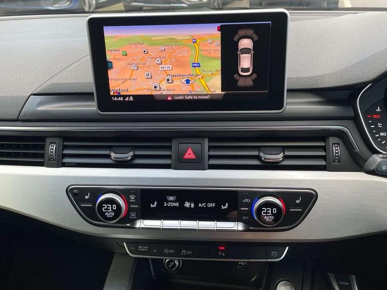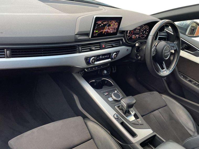 Audi drive select, Audi parking system plus with front and rear sensors, Audi smartphone interface, Colour driver's information system display, Electric tailgate release, Electro-mechanical PAS, Mobile telephone preparation - bluetooth interface, SD card based satellite navigation system, Service interval indicator, Voice control system, Diesel particulate filter, 2 x USB charging port with aux input socket, CD player, DAB Digital radio, MMI radio plus with 7" colour MMI screen and MMI controller, Two SDXC card slots, Air inlets in titanium black, Auto dimming rear view mirror with acoustic windscreen, Body colour bumpers, Body coloured door mirrors, Chrome exhaust tailpipes, Electric adjustable heated door mirrors, Electric front windows, Front fog lights, Heat insulated glass, Rain and light sensors, S Line body styling, S line sill plates, Twilight grey matt radiator grille in matt aluminium inlay, Twilight grey matt rear diffuser, 3 seat rear bench, Adjustable steering column, Automatic tri-zone climate control, Black headlining, Boot mat, Centre console with cupholders, Front centre armrest, Front head restraints, Front sports seats including electric lumbar support, Front/rear floor mats, Illuminated door sills, Isofix front passenger and rear seat preparation, Jack and tool kit, Perforated leather gearknob, Rear headrests, Split folding rear seat, Stainless steel pedals and foot rest, Top tether anchor plate for isofix child seat, Non Smokers pack, 3x3 point rear seatbelts, ABS, ASR, Driver/Front Passenger airbags, Electromechanical parking brake, ESP + traction control, First aid kit, Front and rear curtain airbags, Front passenger airbag deactivation, Height adjustable front seatbelts, Multi-Collision braking, Pre-sense city emergency braking system, Seatbelt warning, Side airbags, Tyre pressure monitor, Warning triangle, Anti theft system, Immobiliser, Keyless Start, Locking wheel bolts, Remote central locking, Contrast stitching, Space saver spare wheel,