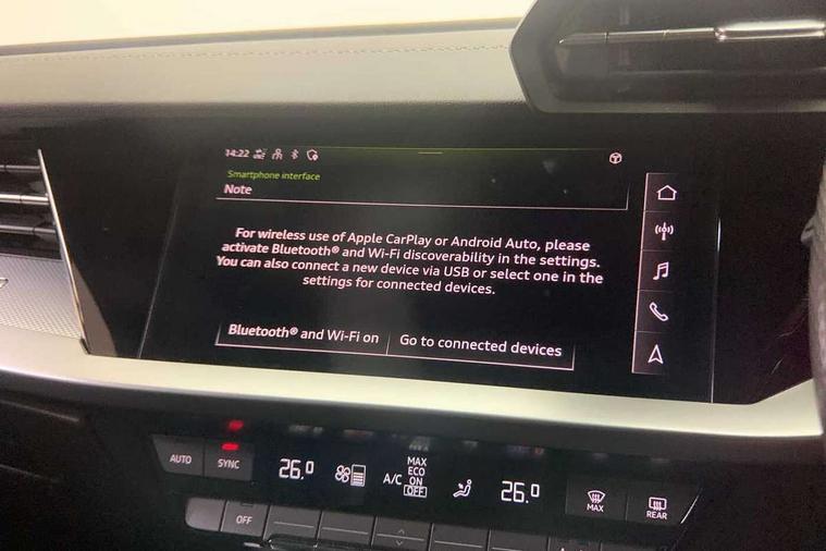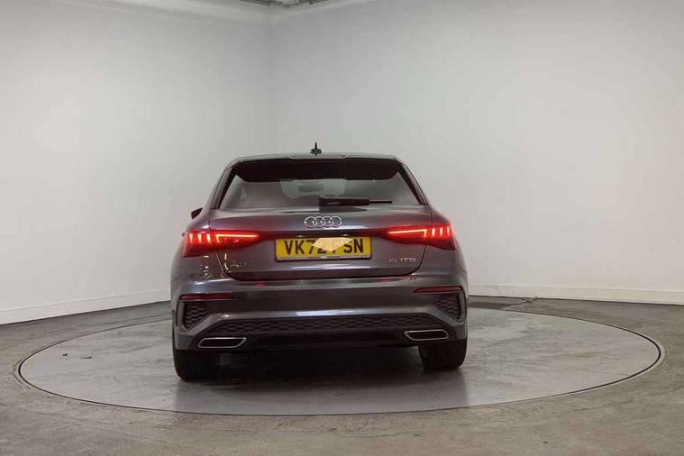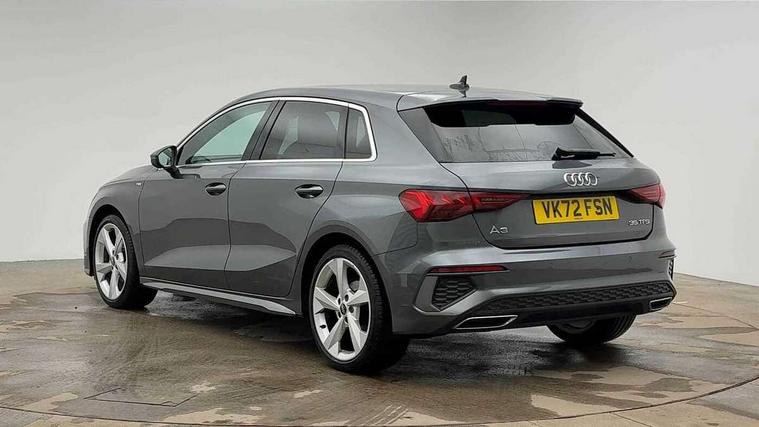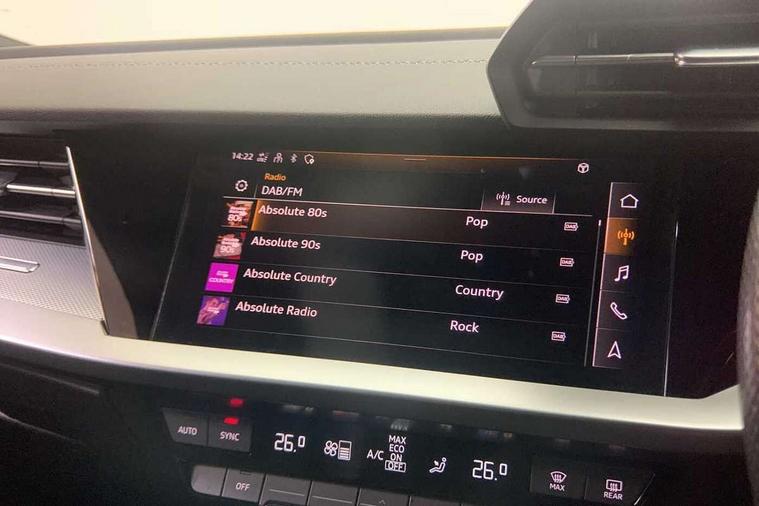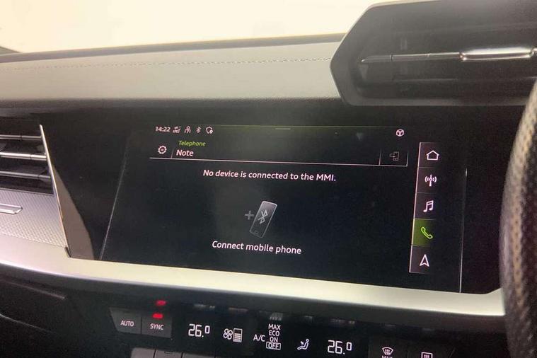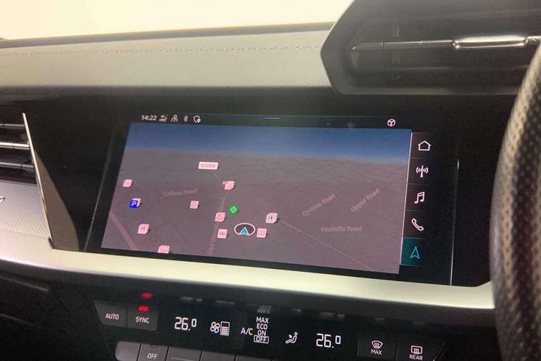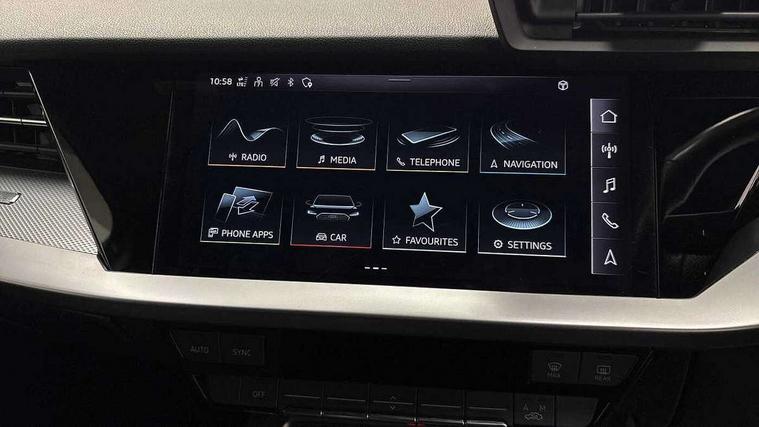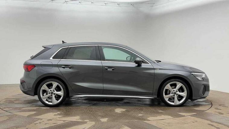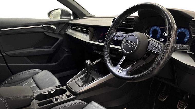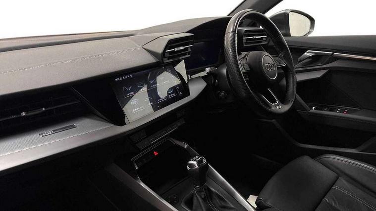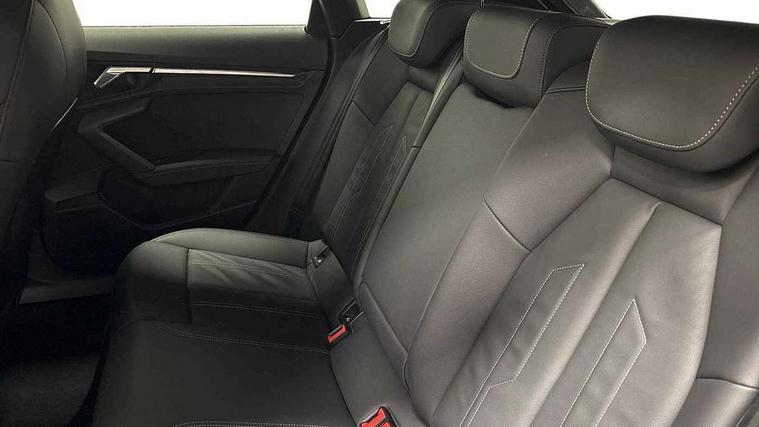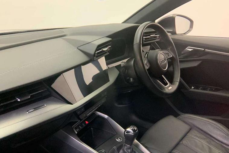 Audi drive select (Auto, Comfort, Dynamic, Efficiency and Individual), Audi smartphone interface, Audi Virtual Cockpit - 10.25" digital and colour instrument cluster, Automatic start/stop system with recuperation, Bluetooth interface, Collision avoidance assistant, Cruise control, e-Call (emergency call), Electromechanical power speed sensitive steering, Lane departure warning system, MMI Navigation Plus with high resolution 10.1" colour touch screen display, Rear parking sensors, Service indicator, Trip computer, Voice control system with natural language interaction, 2xUSB-C connection with data and charging functions, 6 passive loudspeakers, DAB Digital radio, 3rd brake light, Acoustic glass windscreen, Aluminium window trim, Auto dimming frameless rear view mirror, Electrically adjustable/heated/folding/auto dimming door mirrors with integrated LED indications + kerb view function for passenger side, Front electric windows, Illuminated aluminium inserts front door sills with S logo, LED daytime running lights, LED headlights with LED rear lights and dynamic rear indicators, Light and rain sensors, Privacy glass - dark tinted rear window, rear door and side windows, Rear electric windows, Rear side air outlets in grained matt black, Rear side wing doors, Rear wiper, S line bumpers, S roof spoiler, 12V socket and storage compartment in front centre console, 3 seat bench in 2nd row, 40/20/40 split folding rear seat bench with cupholder, Black cloth headlining, Dual zone electronic climate control, Front and rear centre armrest in leather, Front and rear headrests, Front/rear floor mats, Height and reach adjustable steering wheel, Illuminated vanity mirror, Interior lighting - glove compartment light and right hand side, Luggage compartment floor covering, Manual boot compartment lid, Manually adjustable front seats, Seat side bolsters, Single front passenger seat, Stainless steel pedals and front footrest in black, Twin leather upholstery with front sports seats S embossed logo, Aluminium interior elements pack - A3 Sportback, LED interior lighting pack - A3 Sportback, S line styling pack - A3 Sportback, 3x3 point rear seat belts, Audi pre sense front, Driver and front passenger airbag with passenger airbag deactivation, Electronic Stabilisation Control (ESC) including ABS, ASR and EDL, First aid kit with warning triangle and 2 safety vests, Front side airbags with head airbags and interaction airbag, Pre-sense front with pedestrian and cyclist detection, Seatbelt monitoring, Tyre pressure loss indicator, Anti theft alarm, Anti-theft wheel bolts, Electronically operated child lock, Immobiliser, Remote control central locking, Accent surfaces in the dashboard and centre console in platinum grey silk effect paint finish, Dark spectrum aluminium inlays,