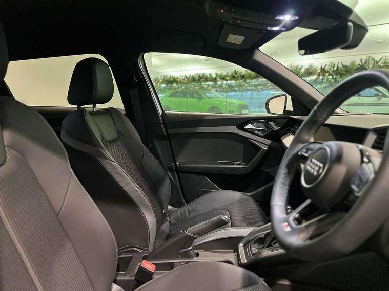 10.25" Digital instrument cluster display classis style instrument dials + speed, odometer, time, outside temperature, telephone menu + fuel level warning, Advanced driver attention and drowsiness monitor, Audi connect emergency call and service, Audi drive select, Audi remote connect and control, Audi smartphone interface, Bluetooth interface, Camera based traffic sign recognition, Cruise control, Driver's information system, Electromechanical power steering, Lane departure warning system, Rear parking sensor, Service interval indicator, Speed limiter, Start stop system with recuperation, Voice control system, Washer fluid level indicator, Sports suspension, 2 x USB type C connection points, 6 loudspeakers, DAB Digital radio, MMI radio plus with 10.1" colour MMI display screen and MMI touch, Auto dimming rear view mirror, Body coloured door mirrors, Door sill trims with aluminium inlays and S line logo in front, Electric front and rear windows, Electrically adjustable, heated, folding door mirrors with integrated LED side indicator, Front side air inlets in grained matt black and C frame in anthracite black, Headlight cleaning system, Heat insulating glass windscreen and side windows, Heated rear windscreen, High level LED brake light, LED daytime running lights, LED headlights with range control LED rear lights + dynamic rear indicators, Light and rain sensors, Privacy glass, Radiator grille and rear diffuser in matt anthracite black, Radiator protective grille frame in matt aluminium silver, Rear fog lights, Rear side wing doors, Rear wiper, S line badges on front wings, Side front spoiler lips in grained matt black, 12V socket in centre console with two cup holders, 3 rear seats with headrests, 3 seat bench in 2nd row, 3 spoke leather multi-function plus steering wheel features S badging and grips in perforated leather with contrast stitching, 40:60 Split folding rear seat or fully collapsed, Black cloth headlining, Front and rear velour black floor mats with contrast stitching in fine silver, Front head restraints, Front passenger seat, Height and reach adjustable steering wheel, Interior lighting includes roof module, front and rear reading lights and right luggage compartment lighting, ISOFIX child seat mounting for front passenger and outer rear seats including top tether attachment point of outer rear seats, Leather gear knob with aluminium trim, Leather handbrake grip, Manual air conditioning, Manual height adjustable for driver and front passenger seat, Manually adjustable lumbar support in front seats, Stainless steel pedals, Ambient lighting package - A1, Luggage compartment pack - A1, S line exterior styling pack - A1 Sportback, 3x3 point rear seatbelts, Audi pre-sense front with pedestrain and cyclist recognition, Brake assist function, Driver and front passenger airbag with front side and head airbags, Electronic Stability Control including ABS, EBD, ASR and EDL, Front passenger airbag deactivation switch, Hill hold assist, Manual rear child locks, Seatbelt height adjustment for front seats, Seatbelt monitoring, Tyre pressure loss indicator, Warning triangle and first aid kit, Anti theft alarm, Anti theft wheel bolts, Immobiliser, Remote control key with safelock, Aluminium trim for control switches, air vents and digital instrument cluster, Black dashboard, Silver grey inlays polygon structure in diamond paint finish, Structured grey accent surfaces insert of air vents, interior door handle recesses and centre console in quartz paint finish,