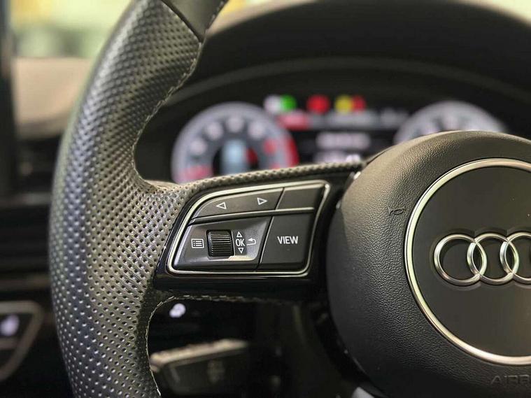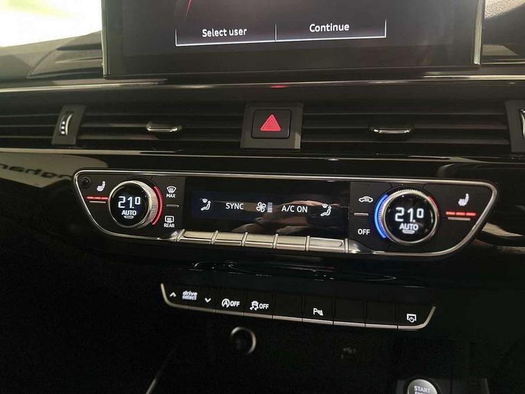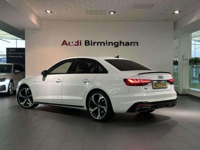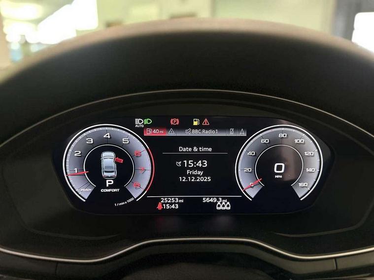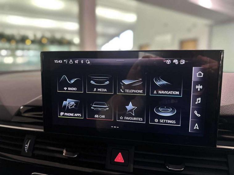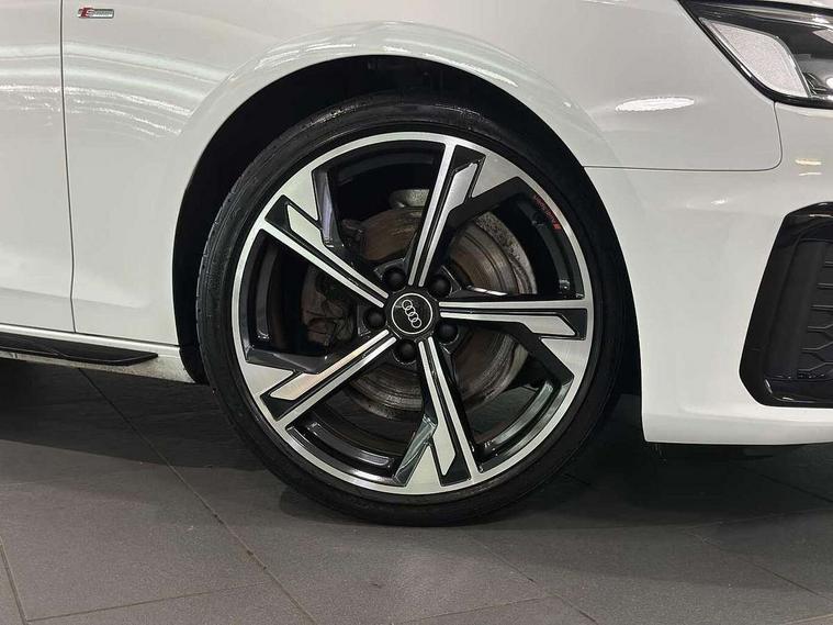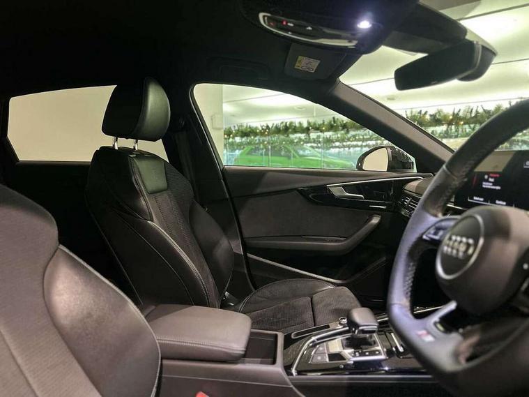 360 degree camera, Advanced key with electric hands free boot opening system, Audi connect safety and service (e-call), Audi drive select, Audi phone box light with wireless charging, Audi smartphone interface, Audi virtual cockpit, Automatic start-stop system with coasting functionality and efficiency programme, Bluetooth interface, Camera based traffic sign recognition, Electric boot lid release, Electromechanical power steering, Email, calendar and text messages displayed via MMI, Head up Display, Lane departure warning, MMI Navigation plus with MMI touch includes 10.1" high resolution colour MMI display, 3D map, Park assist with parking aid plus, Voice control system, 54 litre fuel tank, Sports suspension lowered by 23mm, 2 USB charging points in 2nd row, 2 USB charging ports, Bang + Olufsen 3D sound system, DAB digital radio reception, Audi beam uses LEDs to project the audi logo onto the ground as you exit your A4, Audi matrix LED headlights with LED rear lights + dynamic front and rear indicators, Auto dimming rear view mirror, Black Audi rings and black badging (with removed engine badging), Body colour door handles, Body colour front spoiler lip, Body colour side sill trim, Door mirror memory, Electric adjustable/heated/folding door mirrors with auto dimming, Electric glass sunroof, Exhaust tailpipes in dark chrome, Grained matt black side air inlets with matt aluminium silver inlay, Headlight wash system, High beam assistant, High gloss black B pillar trims and triangular rear door trim, LED daytime running lights, LED third brake light, Privacy glass, Rain and light sensors, Rear boot, Rear diffuser in matt black with trim strip in matt aluminium silver, Rear side wing doors, Sport front and rear bumpers with side skirts, Variable intermittent front wash/wipe, Windscreen with acoustic glazing, 4 way electric lumbar support for driver and front passenger, 40/20/40 split folding 3 rear seat bench in 3 parts with rear centre armrest, Black carpets, Black cloth headlining, Black perforated leather gearknob, Contrast stitching on seats, steering wheel and gear lever gaiter, Deluxe 3 zone electronic climate control, Electrically adjustable front seats with memory function for driver's side, Front and rear head restraints, Front centre armrest, Heated front seats, Illuminated door sill trims with S logo, ISOFIX child seat mounting and top tether, Manual seat adjustment, Single front passenger seat, Stainless steel pedals and foot rest, Tool kit, Black styling pack - A4 Saloon, Multi-coloured extended LED interior light pack - A4/S4, 3 rear seatbelts, 6 airbags - Driver, front passenger, curtain and side windows, Attention and drowsiness assist, Electronic Stabilisation Control (ESC) including ABS, ASR and EDL, Hill hold assist, Multi collision brake assist, Pop-up bonnet for pedestrian protection, Pre sense city, Rear door child safety locks, Seatbelt monitoring, Warning triangle and first aid kit, Anti theft alarm, Anti theft wheel bolts, Central locking, Keyless Go, Piano black finish inlay, Tyre repair kit,