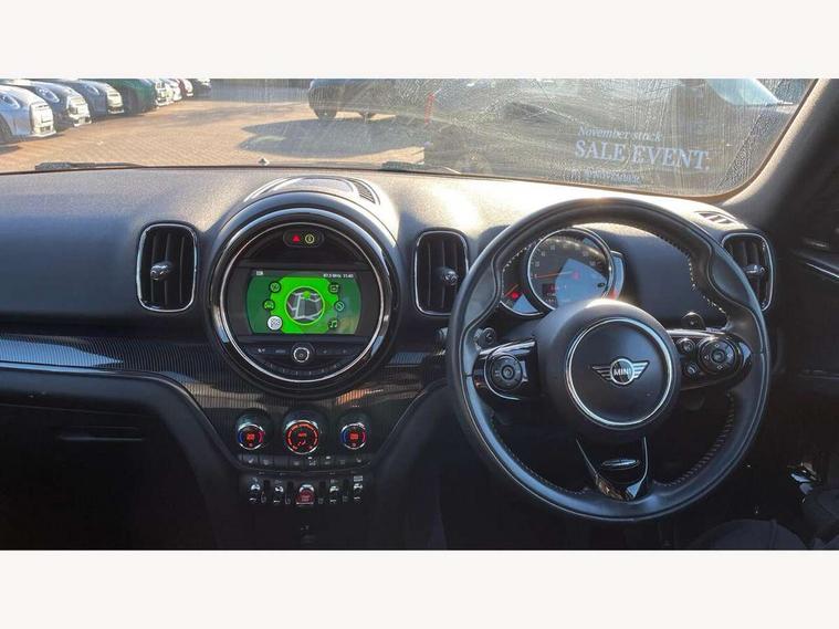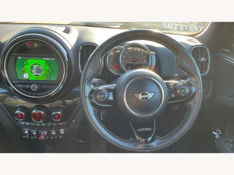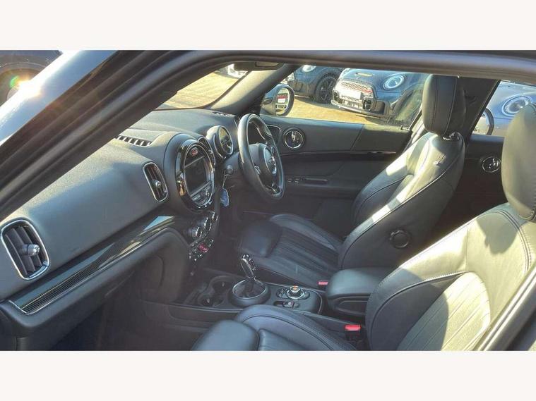 Active Guard incl speed limiting and lane departure functions with auto steering, and front collision warning with brake intervention, Automatic start/stop function with brake energy recuperation, Electro-mechanical speed dependant steering assistance, Instrument cluster, Mini E-call, MINI TeleServices, On board computer, Rear parking distance control, Double Vanos system, Fully variable valve control, High precision injection, Performance Control, Steptronic sport transmission with double clutch and steering wheel paddles, FM tuner and DAB digital radio, Bonnet scoop, Chrome border honeycomb structure radiator grille with S badge, Chrome fuel filler cap, Chrome line exterior, Day time driving lights, Dynamic brake lights, Electric windows, Heated rear window, Heated windscreen washer jets, Metal door sill strips with Cooper S imprint, Model logo, Model logo on Tailgate, Rain sensor with auto headlights, Rear fog lights, Rear window wiper, Side scuttle panel with integrated indicator, Split rear doors, Sun/heat protection glass, Twin exhaust tailpipe, White indicator lenses, 12V Accessory socket in centre console, 360L luggage compartment capacity, 4 lashing eyes in luggage compartment, 40:20:40 split folding rear seats, Chrome interior highlights, Cupholders, English handbook, Front headrests, Glove compartment, Height and length steering column adjustment, Interior lighting with 12 basic colours selectable via toggle switch in roof, Isofix rear child seat preparation, Leather gearshift lever and handbrake gaiters, LED reading lights, vanity mirror lights, front foot well light and spotlight on front seats, Manual air conditioning, Mechanical seat adjustment, driver seat height adjust, forward/back and front seats backrest, MINI Yours fine walk nappa leather steering wheel with contrast stitching in silver and MINI Yours badge, Multifunction steering wheel, Passenger seat height adjuster, Rear headrests, Storage compartments in doors, Sunvisors with vanity mirrors, Tool kit, Excitement pack - Countryman, Navigation pack - Countryman, 2 tone horn, 3 point seatbelts on all seats, 6 Airbags - front, side, head and seat belt tensioners, Anti-lock braking system (ABS), DSC - Dynamic Stability Control, Electronic handbrake, Front and rear disc brakes, Hill start assist, Tyre pressure monitoring system, Alarm system with tilt sensor, monitoring doors, bonnet interior and tailgate, Auto drive away locking, Deadlocking function, Electronic vehicle immobiliser, Locking wheel bolts, Start/stop toggle with keyless go, Chrome line interior,