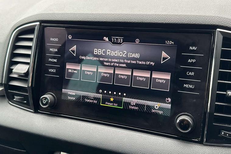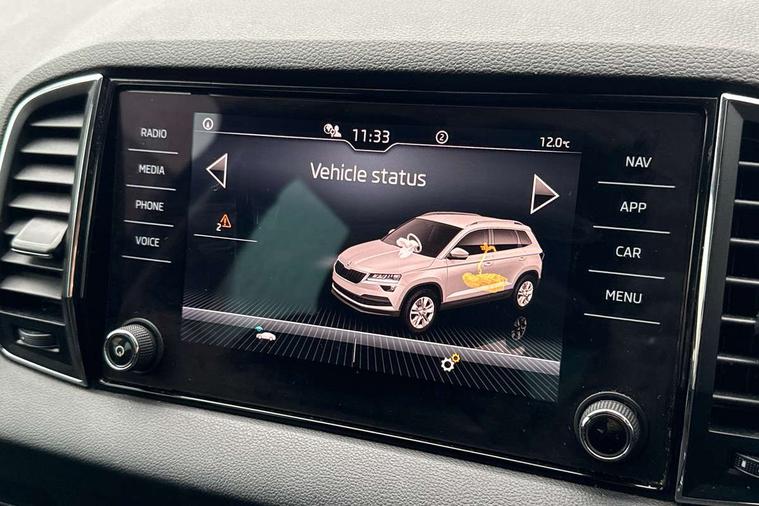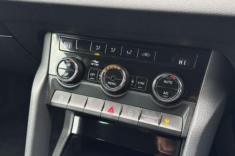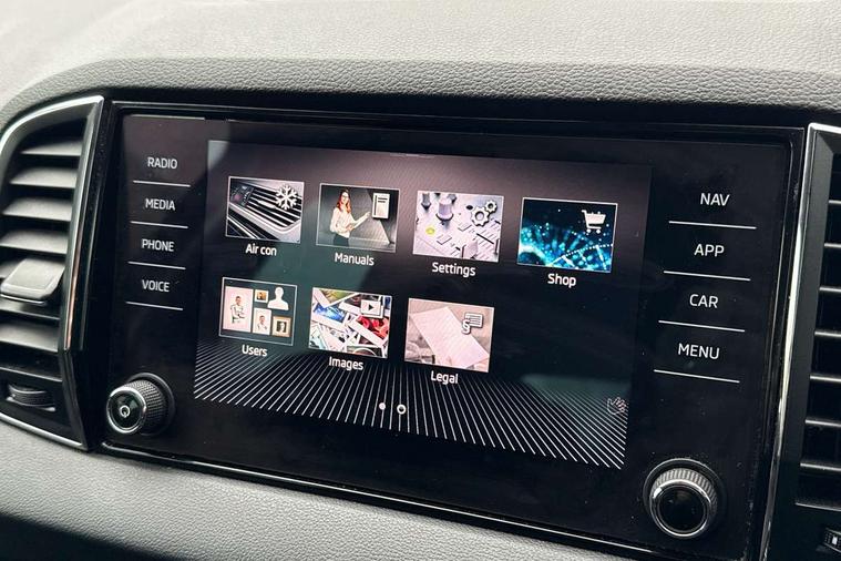 Care connect, Driver alert system, Driver fatigue sensor, Driver profile selection, Electro-mechanical PAS, Outside temperature gauge, Service interval indicator, SmartLink + wireless for Apple and wired for Android, Start/stop system with regenerative braking, USB C Port x 2 in front centre console, WLAN, DAB radio with Bluetooth, USB connection, Acoustic glass, Aero front windscreen wipers with intermittent function, Automatic headlight control system, Black electric window control buttons, Body colour door mirrors and handles, Body coloured bumpers, Electric front and rear windows with child proof lock, Electrically adjustable heated folding and auto dimming door mirrors, Heated rear windscreen, LED rear lights with high functionality, Light assistant (coming/leaving home/tunnel light), Privacy glass, Safety reflectors on front doors, Third brake light, 1.5 litre bottle holders in driver and front passenger door panels, 12V socket in boot, 12v socket in front centre armrest with storage compartment and rear air vents, 2 Folding hooks and nets in boot, 2 Front readings lights for driver and passenger, 3 rear height adjustable headrests, 4 foldable roof handles with rear coat hooks, 4 lashing points on luggage floor, Backrest release, Cargo elements in boot, Chrome inner door handles, Driver and passenger seats height adjust, Folding tables on the front seat backrests, Front head restraints, Front seat and rear pockets, Height adjustable front three point seats belts with tensioners, Height/reach adjust steering wheel, Ice scraper, Illuminated and cooled glovebox, Illuminated luggage compartment, Isofix child seat preparation outer rear, Manual lumbar support for front seats, Net programme in boot, Pen holder, Pollen filter, Rear boot cover, Rear reading lights, Rear seats fixed folding and divided 60:40, Safety vest holder, Storage box in upper central dashboard closed, Sunvisors with illuminated vanity mirrors, Umbrella under passenger seat, Airbags - Front side, head, knee and curtain, Automatic door unlocking in case of crash, Automatic fuel cut off in case of crash, Driver airbag, Electronic parking brake with auto hold function, Emergency rear braking signal, ESC including ABS, MSR, ASR, EDS, HBA, DSR, RBS, MKB and traction control, Front assist radar scanning of the space in front of the car with automatic braking, Hill hold control, Passenger airbag with switch-off function, Pedestrian monitor, Seatbelt reminder signalisation and pretensioner for all seats, Three point seatbelts rear, Two tone horn, Tyre pressure display, Tyre pressure monitor, Alarm with interior monitoring, back up horn and tilt sensor with safe function, Electronic engine immobiliser, Remote central locking with 2 remote folding keys, Chrome framed air vents, Storage on wheel cover,