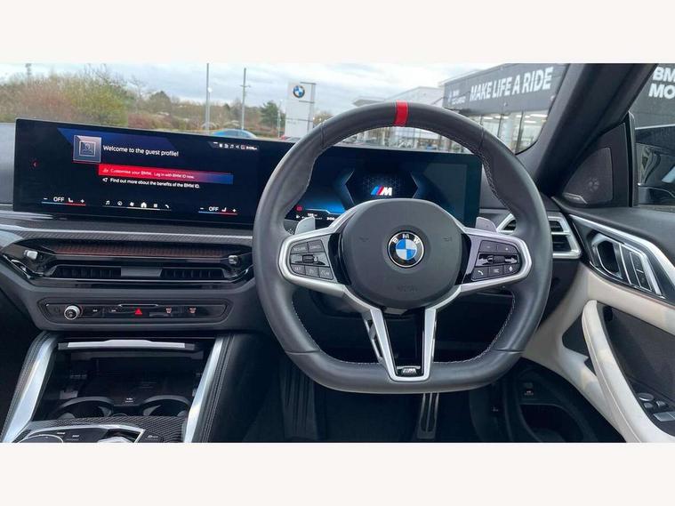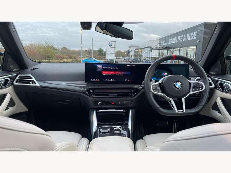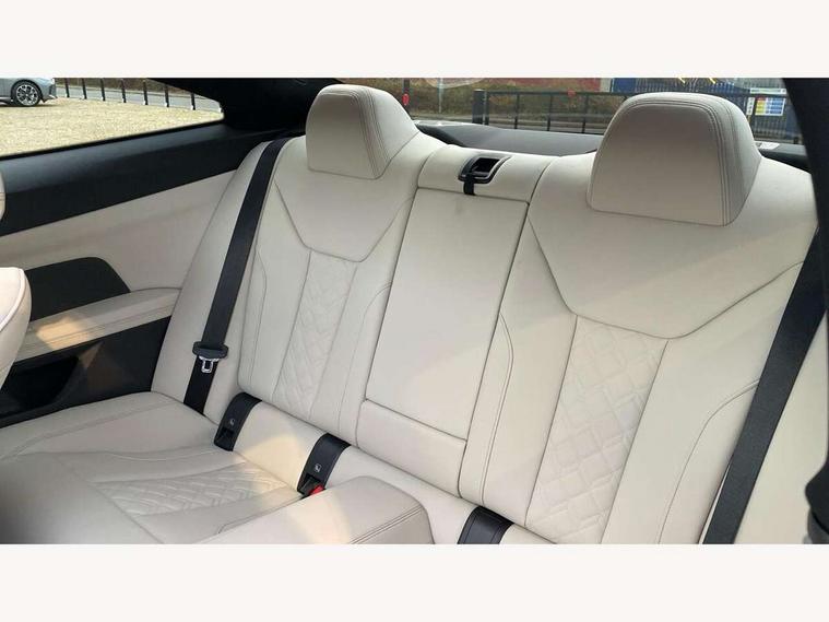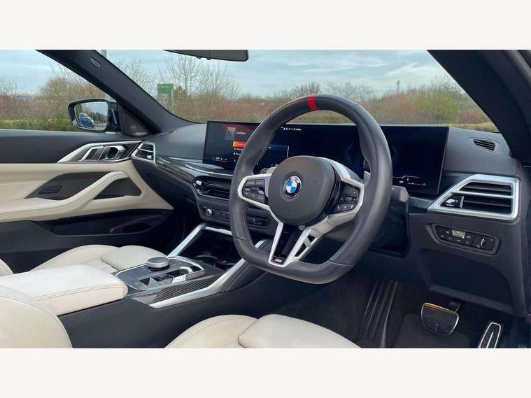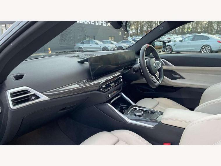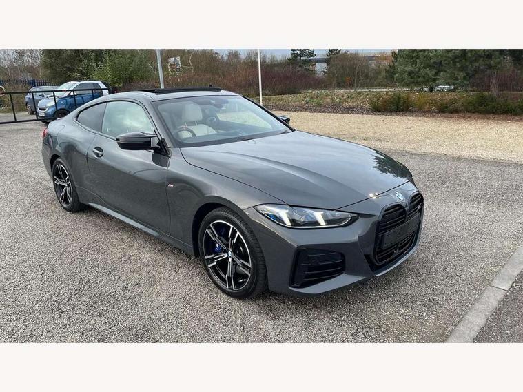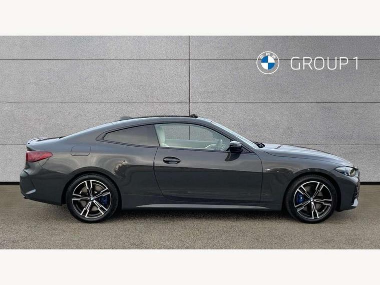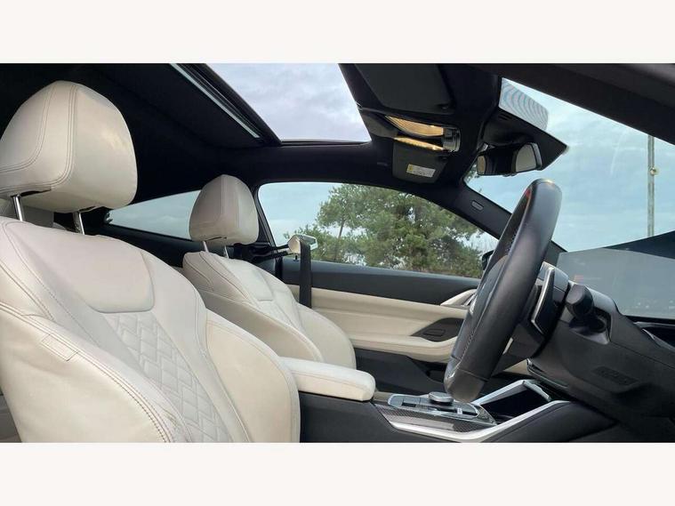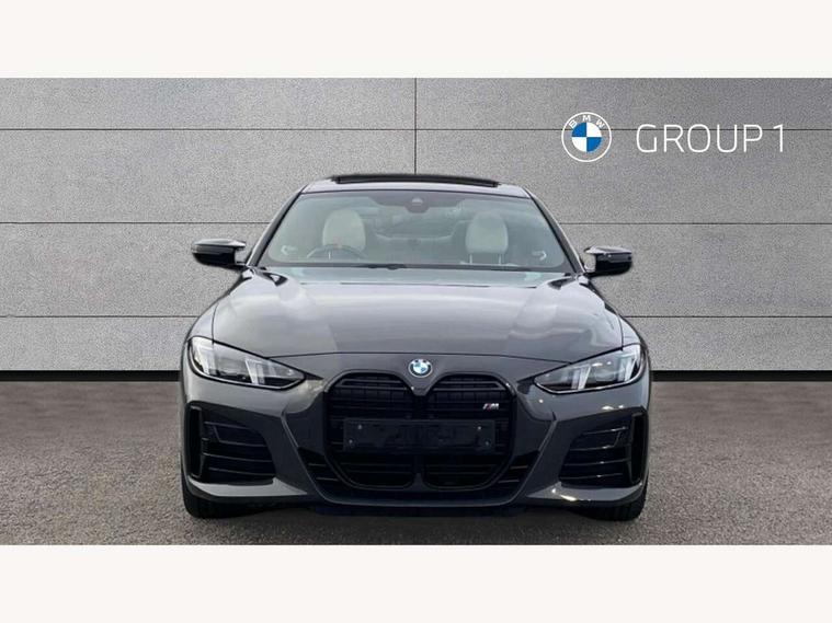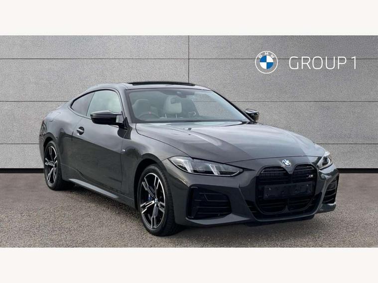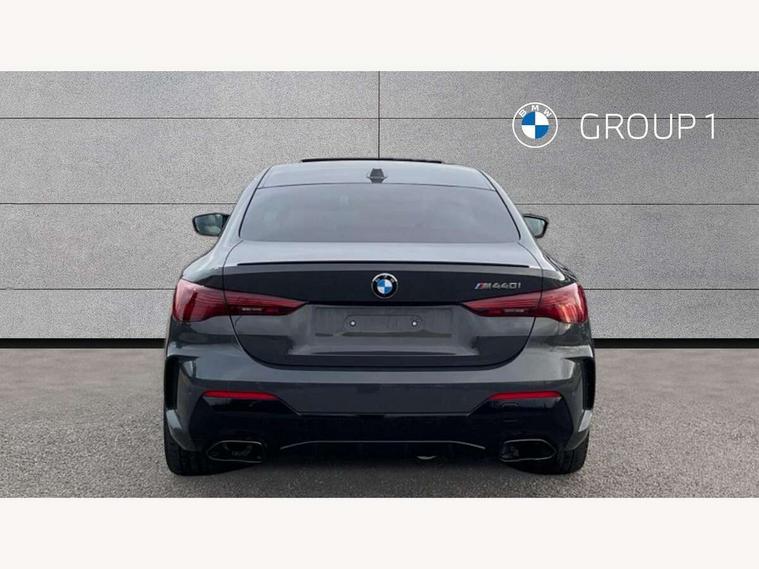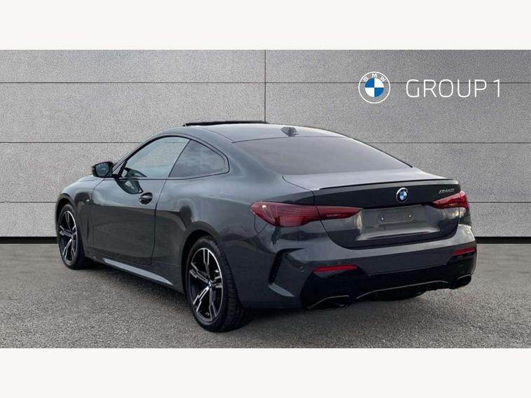 Active guard plus, Attentiveness assist, Auto start-stop, Bluetooth hands free facility with USB audio interface with audio streaming, BMW ConnectedDrive online services, BMW iDrive controller on centre console, BMW service history, BMW Teleservices, Brake pad wear indicator in front and rear, Check Control warning system for monitoring of lights and door/luggage compartment open warning, Condition based service, Electric power steering with Servotronic steering optimised at all speed ranges, Gearshift time display in manual mode, Instrument cluster with speedometer with mph readout, tachometer, fuel gauge and oil temperature gauge, Integrated owners handbook, Language version English, Oil sensor for level and grade, warning by check control system, On board computer - average speed, fuel consumption, outside temp display with acoustic warning, clock/date, service interval, odometer/trip meter, Optimum shift indicator, Run flat indicator, Shifting point display, Variable sport steering, 48V Mild hybrid technology, 8 speed automatic steptronic transmission with gearshift paddles, Active sound design, Balanced 50/50 weight distribution, Double joint spring strut front axle, Drive performance control - ECO PRO, comfort and sport modes, Low centre of gravity, M Sport differential, Petrol Particulate Filter, Sprint mode, Stroke dependent dampers, xDrive system permanent all-wheel drive variable torque distribution, 1x USB type A with data transfer and 1.5 Amp charging function in the centre console, 1x USB type C with 3 Amp charging function in the front centre armrest, DAB tuner, Electronic service booklet, Personal eSim, Acoustic glazing, Automatic headlight beam throw control with load dependent regulating reaction, dynamic compensation of braking dive and acceleration squat, Automatic windscreen wipers and automatic headlight, Automatically dimming electrochromatic rear view mirror, BMW emblem on engine compartment lid and tailgate, Body colour fuel filler flap, Body colour roof fin, Brushed aluminium inserts in the front door sill finishers with BMW designation, Door sill strips, Dynamic brake lights, Electric windows - front and rear, with open/close fingertip control, anti trap facility and comfort closing function all round, Exterior mirrors - electrically folding with anti-dazzle, Fading support, Follow me home headlights, Free form tailpipe finisher and side frame trim strip in high gloss black, Front and rear bumper system, Front apron plastic in body colour, Green tinted heat protection glazing, High gloss shadow line exterior trim, Illuminated bow type door handles in body colour drivers side with door lock, Interior rear view electrochromatic mirror with automatic anti dazzle function, LED 3rd brake light, LED daytime running lights, LED front fog lights, LED front indicators, Licence plate panel integrated into front bumper and tailgate, Lightweight engineering, M designation on front side panels, left and right, Model and M badges in pearl chrome, One piece front bumper cover including towing eye cover in body colour, Rear boot, Reversing light, Sun protection glass, Two part LED tailights in L-shape with components in smoked glass, brake light, LED turn indicator and rear fog light, Visible VIN plate, Welcome lights in interior and door handle area, Widened track and increased camber values for max transverse dynamics, agility and steering precision, Window recess cover black high gloss, Windscreen wipers with integrated heated washing jets, xDrive designation on left tailgate, 12V power socket in front centre console, 2 front cupholder in centre console with clamping elements and matt black inlay, 2 Rear seat headrests, 2 seat bench in second row, 2 zone automatic air conditioning, 3 spoke flat bottom M sport leather multifunction steering wheel, 4 pieces lashing eyelets in luggage compartment, 40:20:40 split folding rear seat and rear centre armrest with two cupholders, Anthracite headlining, Armrest integrated in front and rear door trim + front centre console armrest, Battery in luggage compartment, BMW ID, Electric memory seats - electrically adjustable seats with drivers seat memory, exterior mirrors memory and automatic parking function, Extended storage - Luggage compartment partition net on left side trim panel, Bag hook on both sides of the luggage compartment, Four grab handles integrated in roof lining, Front and rear door pockets, Front and rear reading lights, Front footwell lights, Heated driver and front passenger seats, Height adjustable front headrests, Height adjustable mechanically and infinitely variable steering column, Illuminated armrest storage compartment, Illuminated glove compartment with separate small compartment, Luggage compartment light, Make-up mirror lights, Single front passenger seat, Storage compartment in rear centre console, Sunvisors with illuminated vanity mirrors and ticket pocket, Through load system, Toolkit located in luggage compartment, Velour front floor mats, Ambient lighting pack - 4 Series, Connected professional package - 4 Series, M sport exterior styling pack - 4 Series M440i, 2 x 3-point rear seatbelts, Battery safety cut-off, BMW emergency call, Brake energy regeneration, Braking pre-tensioning, Child seat ISOFIX attachment for the two outer rear seats, Coasting in idle in ECO PRO mode, Cornering brake control (CBC), Crash sensor activating of airbags, Unlocking doors, hazard warning lights, interior light, safety battery terminal, Driver and front passenger side airbags, integrated in the door side seat backrest bolsters for all seat variants, Driver/Front Passenger airbags, Dry braking, Dynamic brake control, Dynamic stability control + (DSC+) - Anti-lock Braking System (ABS) with brake assist and cornering brake control + Automatic Stability Control (ASC), Dynamic Traction Control - DTC, Electric parking brake including automatic hold function and automatic release of the parking brake when driving off, Electronic di