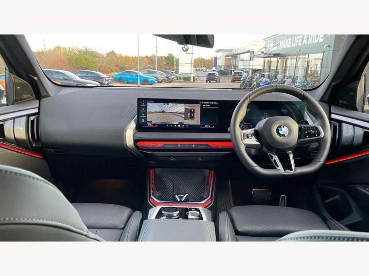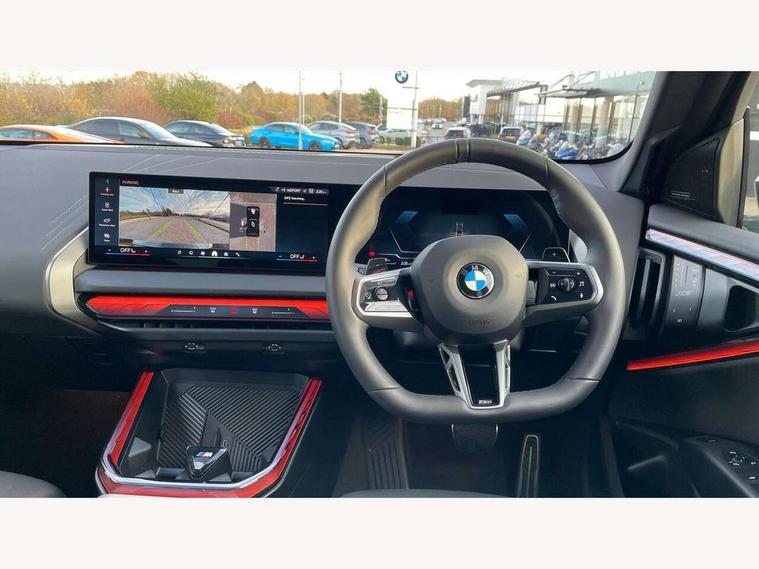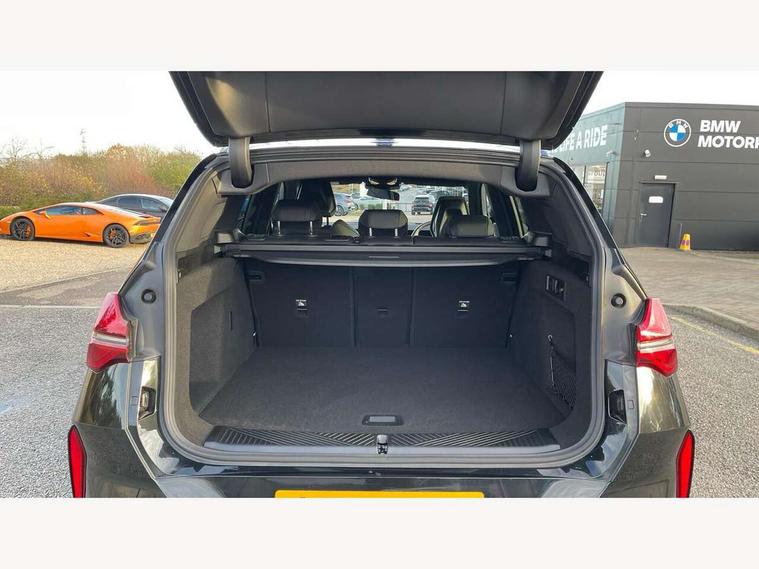 Active guard professional, Attentiveness assist, Automatic operation of tailgate, BMW ConnectedDrive online services, BMW iDrive, BMW Live cockpit plus, BMW Online services, BMW Teleservices, Brake pad wear indicator, Condition based service, Drive off assistant, Flat tyre monitor, Language version English, My Mode - Personal, Efficient, Sport, Relax, Expressive, Parking assistant, Reversing assist camera, Servotronic system, Variable sport steering, Dynamic stability control, Multiple control arm rear axle, Steptronic transmission with gearshift paddles, Two-joint strut-type front axle with tension strut, DAB tuner, Personal eSim, 4 tailpipe tips, B-pillar trim panel in black high-gloss, BMW badge on front and rear, BMW M-specific front/rear bumpers and side sills, BMW M-specific radiator grille with horizontal bars in Dark Silver and M logo, Body colour mirror caps, Daytime running lights, Door handles flush to the surface with lock barrel on driver's side, Dynamic brake lights, Electric adjustable and heated door mirrors, Electric window trap release and convenient opening/closing feature, Headlight beam throw control, Heated rear window, Heated windscreen washer jets, High beam assistant, LED 3rd brake light, LED rear lights, LED tail lights, LED turning indicators, Locking of the doors, M high-gloss shadowline, M-specific Exterior mirrors, Mirror base and mirror blade in satinised aluminium, Mirror triangle in black high-gloss, Rain sensor with automatic headlight activation, Rear side wing doors, Rear wiper, Reversing light, Side window frame in black high-gloss, Windscreen wipers, 12v power socket in front centre console and luggage compartment, 2 x USB Type C ports for charging and data transmission (front centre console) and 2 x USB Type C ports for charging (rear centre console), 3 rear headrests, 3 seat bench in 2nd row, 3 zone automatic air conditioning, 40:20:40 split folding rear seat with loading system, Ambient lighting, Anthracite headlining, Electric adjustable seats with memory function, Floor mats in velour, Footrest and pedals in black plastic, Four grab handles integrated in roof lining, Front armrest with integrated control panel, Front centre console trim in black high-gloss, Front head restraints, Front passenger seat, Front sports seats, Glove compartment, i-Size / ISOFIX attachment points on both outer rear seats, with covers in black, Interior door handles in dark chrome, Luggage compartment separating net, M sport leather steering wheel, Multifunction steering wheel, Rear side armrests integrated into door trim, Selector lever with toggle operation, Steering column adjustment, Sun visors with illuminated vanity mirrors, Three upper retaining strap clips integrated into the rear panels of the seat backrests, Through loading system, Two front cupholders and two in the rear center armrest, Wireless charging tray, Connected pro package - X3, Driving assistant + pack - X3, Driving assistant package - X3, Interior and exterior mirror package - X3, 3 point seatbelts, Airbag deployment is controlled with respect to the intensity and scope, Anti-lock braking system (ABS), Automatic hold function, BMW emergency call, Brake assist, Brake drying, Brake energy regeneration, Braking readiness, Central airbag, Child locks on rear doors, Cornering brake control (CBC), Crash Sensor - activation of central locking release, hazard warning light and interior lighting, Driver and front passenger front and side airbags, Dynamic brake control, Electromechanical parking brake, Front and rear disc brakes, Head airbags, Integrated braking system, Post Crash Collision Warning with braking function, Trailer stability control, Tyre pressure sensor, Warning triangle, Alarm system, Closing system with central locking, Comfort access system with BMW digital key plus, Locking wheel bolts, Start/stop button with keyless motor start with acoustic drive, Tyre repair kit plus,