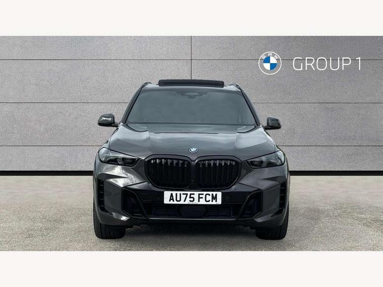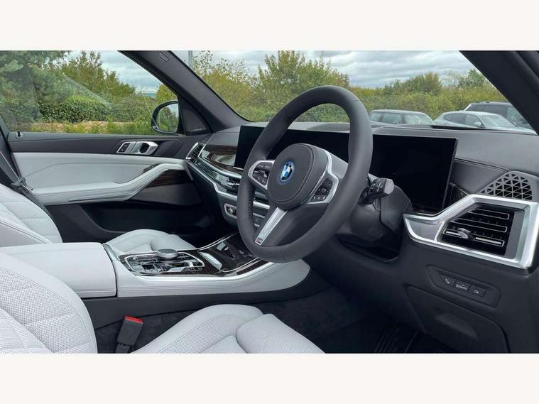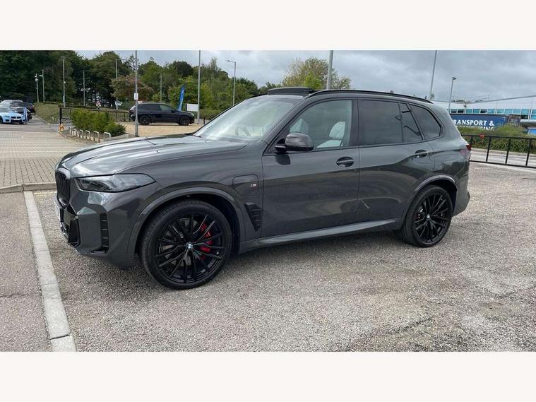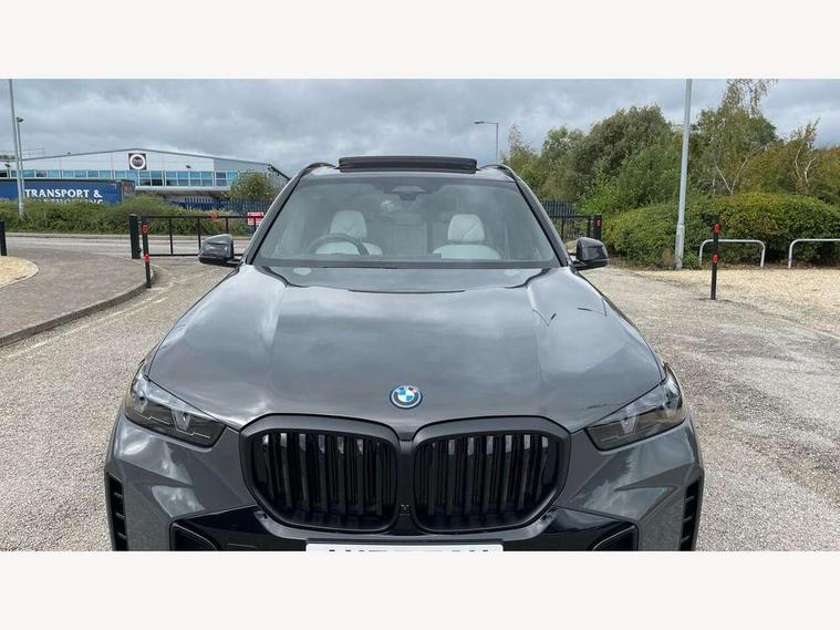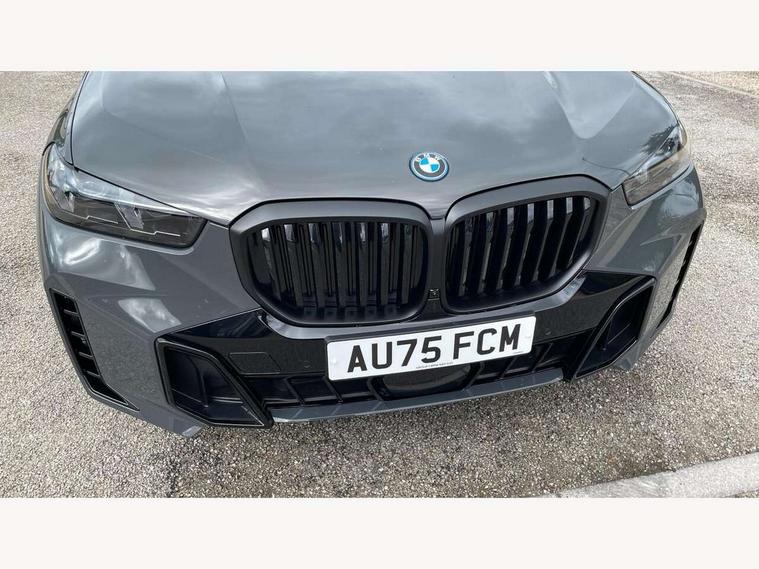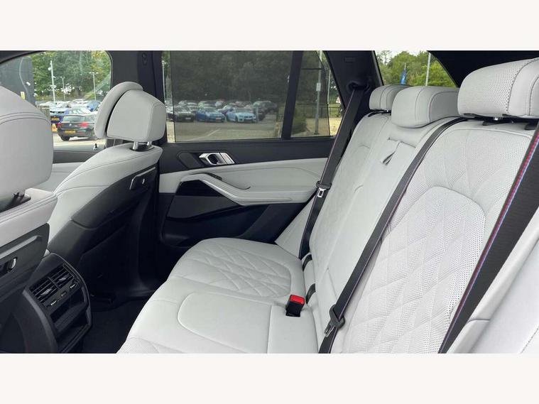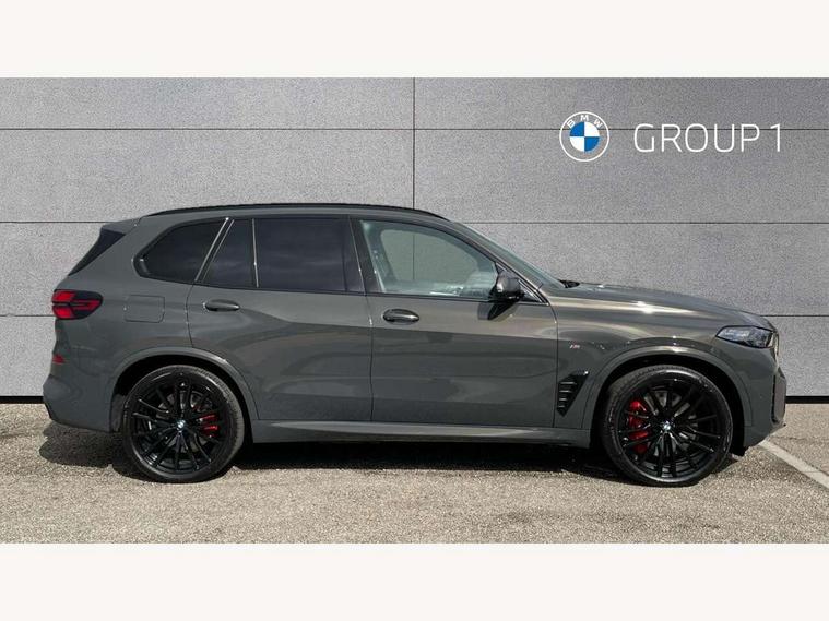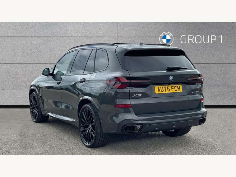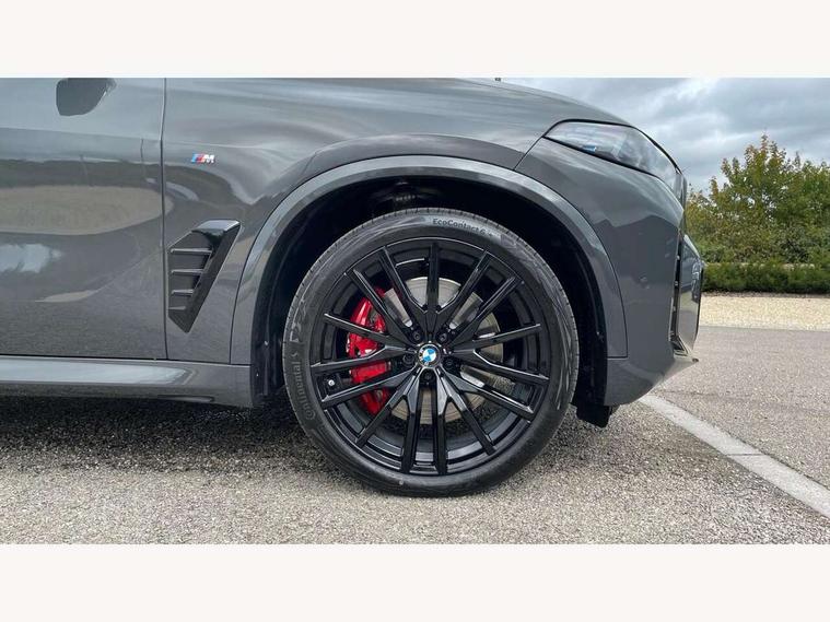Attentiveness assist, Automatic tailgate operation, BMW ConnectedDrive online services, BMW live cockpit + with curved 12.3 instrument cluster/14.9 central display, nav/Tuner with diversity reception, RDS/4GLTE/remote software upgrade, BMW Teleservices, Condition based service, Cruise control with brake assist, eCall emergency call system, Enhanced bluetooth with wireless charging, Integrated owner's handbook, PAS, Speed limiter, Wi-Fi hotspot, AC Fast charging preparation (Maximum charging power 11kW), Adaptive 2-axle Front and rear air suspension, Drive performance control with ECO PRO comfort + sport mode, Eight speed steptronic sport automatic transmission and gearshift paddles on the steering wheel, Adaptive LED Headlights, Front and rear electric windows, High beam assistant, High gloss black shadow line roof rails, LED daytime running lights, Rain sensor, Rear side wing doors, Third brake light in rear spoiler, Variable intermittent rear wash/wipe, 12V - Power sockets with 2x centre console and 1x luggage compartment, 3 seat bench in 2nd row, Foldable rear centre armrest with 2 cupholders and storage compartment, Front and rear side armrest integrated into door trim, Headrests for all seats, Luggage compartment separating net, Lumbar support with height and depth adjustment in backrest, Single front passenger seat, Three spoke sport M leather steering wheel, Velour floormats, Ambient light interior pack - X5, Driving assistant pack with radar based driver assistance system - X5, Expanded exterior mirror pack - X5/X5 M, M aerodynamics pack - X5, Parking assistant pack - X5, 3 rear seatbelts, Acoustic protection for pedestrians, Active protection, Airbags - driver/front passenger, rear and side, first and second row seats head airbags, front passenger seat airbag deactivation + knee airbag, Anti-lock braking system (ABS), Automatic Stability Control (ASC), Brake energy regeneration, Cornering brake control (CBC), Crash sensor activating central locking release, hazard warning lights, fuel cut off, interior lighting + activation of safety battery terminal clamp, DSC - Dynamic Stability Control, Dynamic Traction Control - DTC, Electromechanical parking brake with automatic drive away release and auto hold function, Electronic brake force distribution, Hill start assistant, M Sport blue painted brake calipers with 'M' designation, Mechanical child proof lock on rear doors, Tyre pressure monitoring system, Tyre pressure sensors, Ventilated front and rear disc brakes, Warning triangle and first aid kit, Alarm system, Closing system with central locking, Comfort access system, Locking wheel bolts,