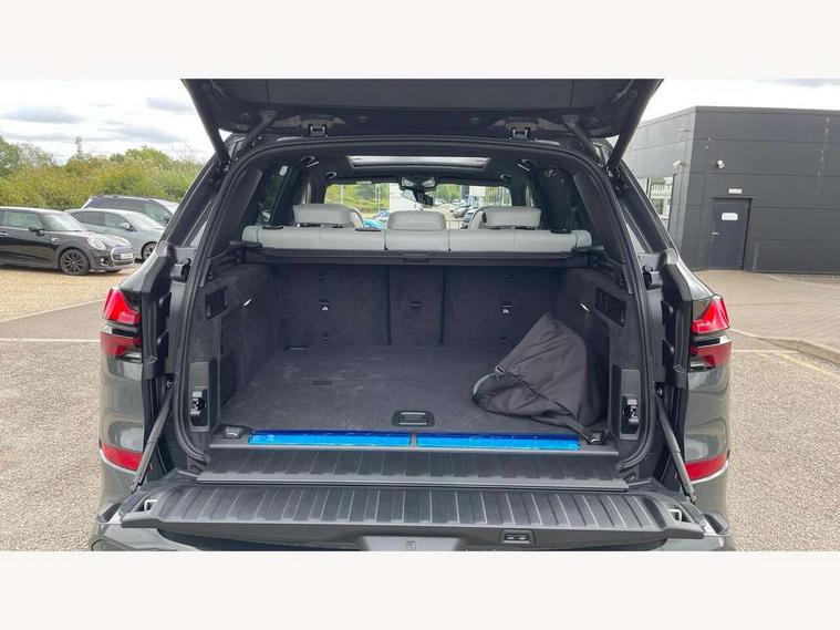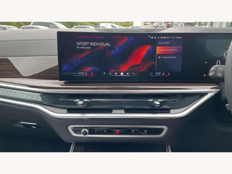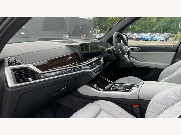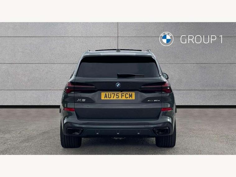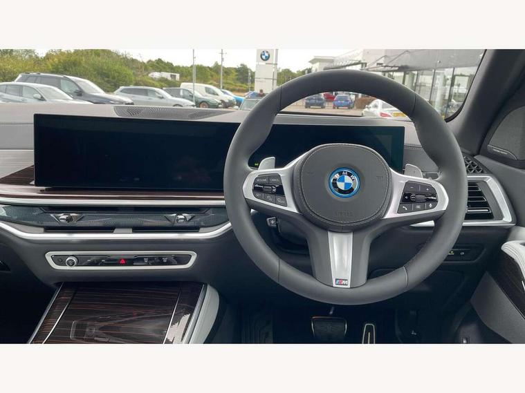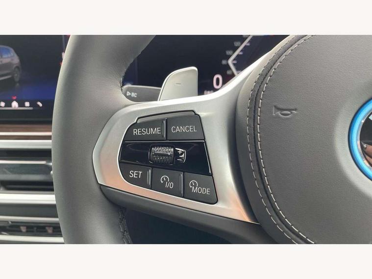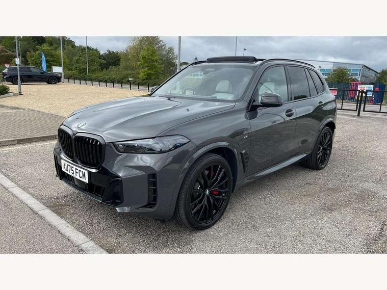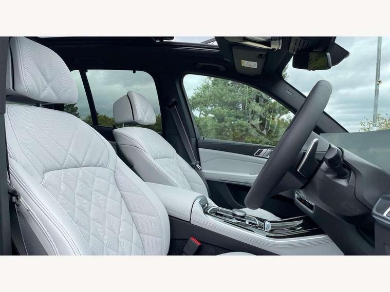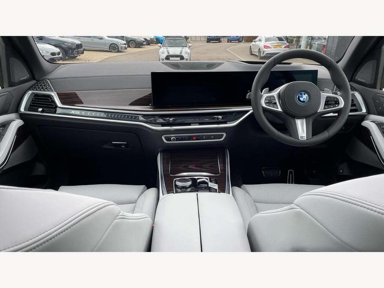 Attentiveness assist, Automatic tailgate operation, BMW ConnectedDrive online services, BMW live cockpit + with curved 12.3 instrument cluster/14.9 central display, nav/Tuner with diversity reception, RDS/4GLTE/remote software upgrade, BMW Teleservices, Condition based service, Cruise control with brake assist, eCall emergency call system, Enhanced bluetooth with wireless charging, Integrated owner's handbook, PAS, Speed limiter, Wi-Fi hotspot, AC Fast charging preparation (Maximum charging power 11kW), Adaptive 2-axle Front and rear air suspension, Drive performance control with ECO PRO comfort + sport mode, Eight speed steptronic sport automatic transmission and gearshift paddles on the steering wheel, Adaptive LED Headlights, Front and rear electric windows, High beam assistant, High gloss black shadow line roof rails, LED daytime running lights, Rain sensor, Rear side wing doors, Third brake light in rear spoiler, Variable intermittent rear wash/wipe, 12V - Power sockets with 2x centre console and 1x luggage compartment, 3 seat bench in 2nd row, Foldable rear centre armrest with 2 cupholders and storage compartment, Front and rear side armrest integrated into door trim, Headrests for all seats, Luggage compartment separating net, Lumbar support with height and depth adjustment in backrest, Single front passenger seat, Three spoke sport M leather steering wheel, Velour floormats, Ambient light interior pack - X5, Driving assistant pack with radar based driver assistance system - X5, Expanded exterior mirror pack - X5/X5 M, M aerodynamics pack - X5, Parking assistant pack - X5, 3 rear seatbelts, Acoustic protection for pedestrians, Active protection, Airbags - driver/front passenger, rear and side, first and second row seats head airbags, front passenger seat airbag deactivation + knee airbag, Anti-lock braking system (ABS), Automatic Stability Control (ASC), Brake energy regeneration, Cornering brake control (CBC), Crash sensor activating central locking release, hazard warning lights, fuel cut off, interior lighting + activation of safety battery terminal clamp, DSC - Dynamic Stability Control, Dynamic Traction Control - DTC, Electromechanical parking brake with automatic drive away release and auto hold function, Electronic brake force distribution, Hill start assistant, M Sport blue painted brake calipers with 'M' designation, Mechanical child proof lock on rear doors, Tyre pressure monitoring system, Tyre pressure sensors, Ventilated front and rear disc brakes, Warning triangle and first aid kit, Alarm system, Closing system with central locking, Comfort access system, Locking wheel bolts,