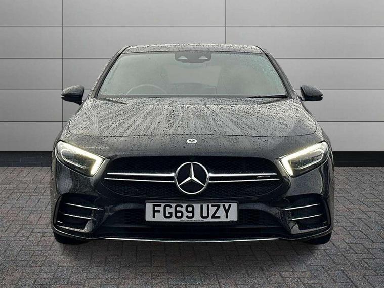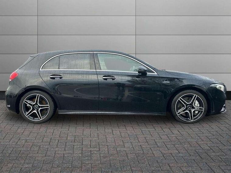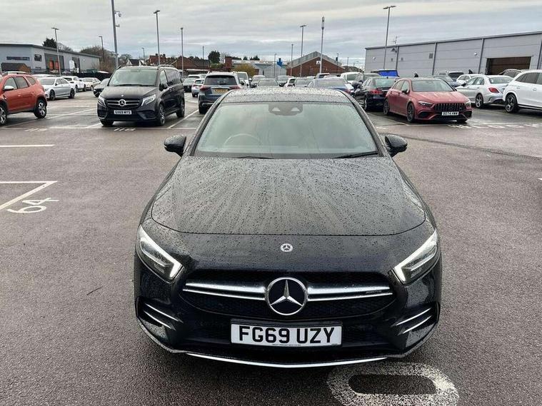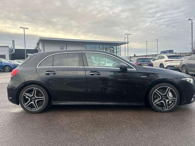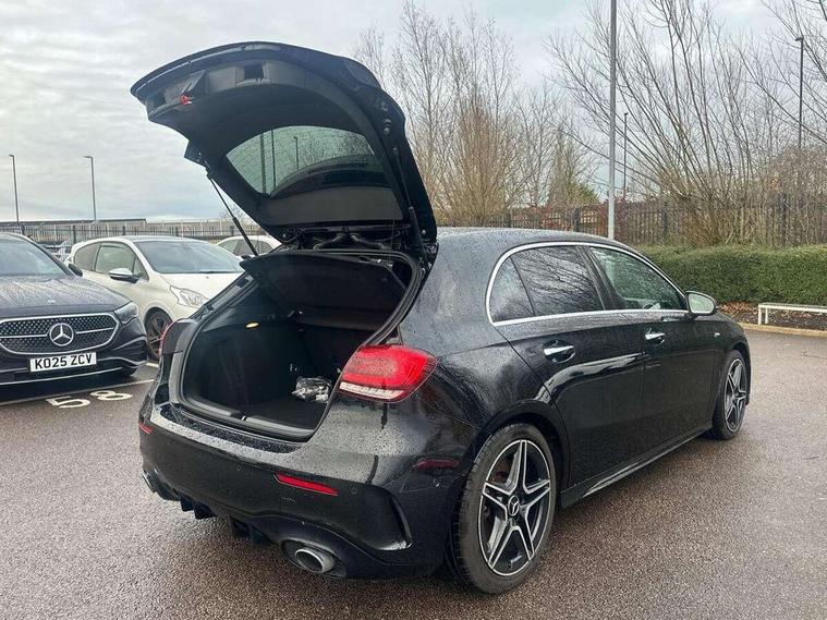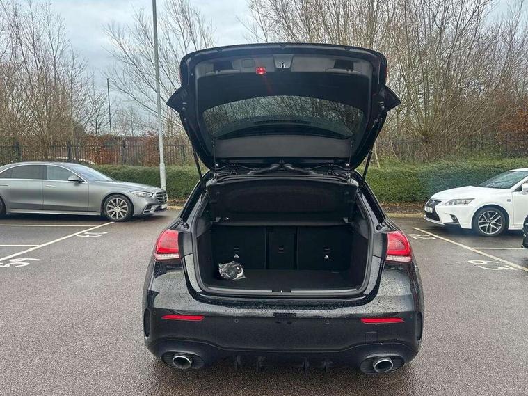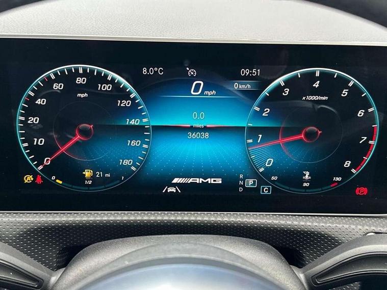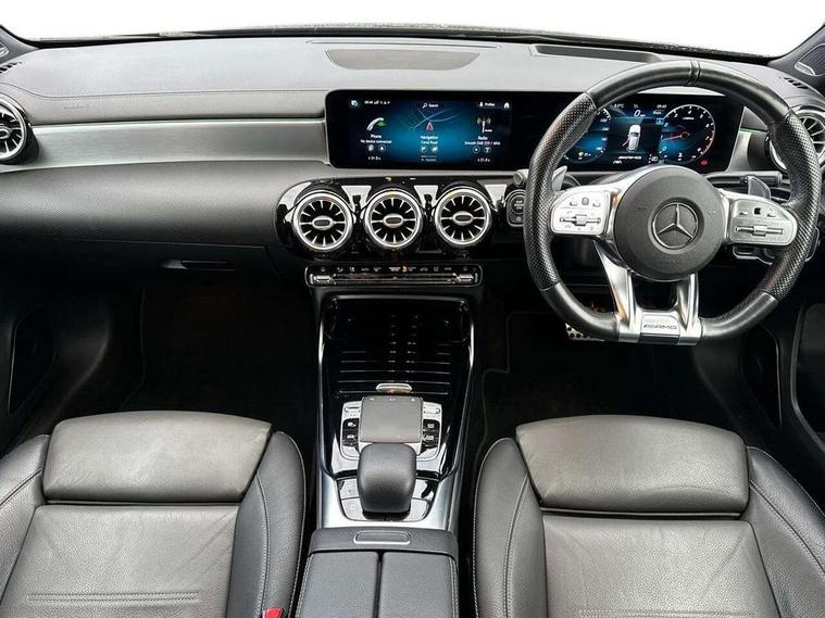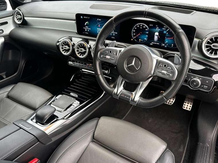 10.25" Digital instrument cluster display screen, 180 degree rear view camera with parking guidelines, Active lane keep assist, Active park assist with parktronic system including front and rear parking sensors, Attention assist, Brake pad wear indicator warning light, Direct steering, Dual bluetooth interfaces, DYNAMIC SELECT with driving programs (Slippery, Comfort, Sport, Sport+ and Individual), ECO start/stop function, Fluid level warning indicator for fuel, oil, coolant and washer fluid, Hard-disk navigation, Hey Mercedes Voice activation, Lamp failure indicator, Mercedes me connect including emergency call system, accident recovery, breakdown and maintenance management, Outside temperature gauge, Owners manual in English, Radio aerial integrated into roof spoiler, Service indicator (ASSYST), Speed sensitive power steering, Trip computer, 2 USB ports (type C) in rear stowage compartment and one in front of center console, Burmester surround sound system - 590W, DAB Digital radio, MBUX multimedia system with DAB digital radio and touchpad including satellite navigation, 4 Electric Front and Rear windows, Adaptive brake lights, AMG Front apron with flics as air deflector elements on the outer air intakes, AMG radiator grille with twin blade lamella and AMG Lettering, AMG spoiler lip on roof, AMG Sports exhaust system with two round tailpipes measuring 90 mm in diameter attached in rear apron, AMG lettering plus ribbing on the inside of the, Body colour bumpers, Body colour door handles, Body colour side skirt, Electric adjustable and heated door mirrors with integrated LED side indicators, Front wings wheel arches with TURBO 4MATIC lettering, Headlamp assist automatic headlamp activation, Heated glass rear windscreen + timer control, Illuminated front door sill panels with Mercedes-Benz lettering, LED tail lamp, LED third brake light, Multibeam LED with adaptive highbeam assist plus, Panoramic sliding sunroof, Privacy glass, Rain sensing windscreen wipers with two sensitivity settings, Rear fog lights, Rear wiper, Wider wheel arches for AMG wheels, 40:20:40 split folding rear seats, AMG Performance steering wheel in nappa leather, Auto Mercedes-Benz child seat recognition sensor, Black air vents with surround in silver chrome, Black roof lining, Brushed stainless steel sports pedals with rubber studs, Controller on centre console with chrome surround, Electrically adjustable front memory seats including lumbar support, Floor mats with stitched edging and AMG lettering, Front centre armrest with storage compartment, Front seat backs luggage nets, Front seat cushion length adjustment, Heated front seats, Height/reach adjustable steering column, Interior lighting - 64 colour Ambient lighting, Rear armrest with 2 cupholders, Rear head restraints, Seat occupancy sensor for front passenger seat, Silver coloured aluminium gear shift paddles on steering wheel, Spectacles compartment for driver, Sports seats with integrated headrests, Stowage compartment in centre console with retractable cover, Sunvisors with illuminated vanity mirrors, Touchpad on center console, Twin front cupholders, Two zone thermotronic luxury automatic climate control, Light and sight pack - A Class Premium/Premium Plus, Mirror package - A Class, Seat comfort pack - A Class, 3 rear 3 point seatbelts, ABS with Brake Assist, Active bonnet, Adaptive brake assist with hold function and hill start assist, Childproof locks manually operated for rear doors and electrically operated for rear power windows, Crash responsive emergency lighting, Driver and passenger head and side airbags, Drivers knee airbag, Dual stage driver/passenger airbags, Electronic parking brake, ESP curve dynamic assist, ESP with ASR, Front and rear seatbelt reminder, Front brake calipers with AMG lettering, ISOFIX and top tether child seat fixing points in two outer rear seats, Perforated front brake discs, Tyre pressure monitoring system, Warning triangle and first aid kit, Window airbags, Alarm system/interior protection/immobiliser, Keyless entry lock/unlock, Keyless Go, Remote central locking and crash sensor with emergency opening function, Light aluminium with longitudinal grain interior trim, Summer tyres, Tirefit sealant kit,