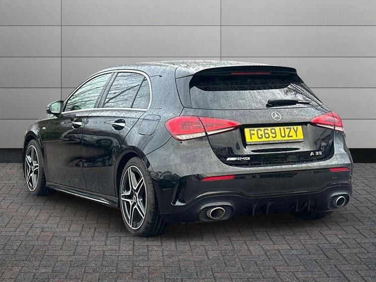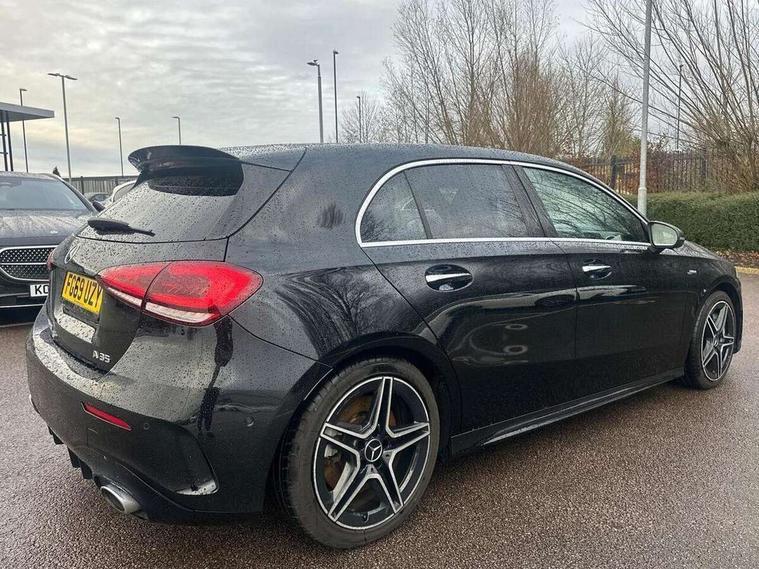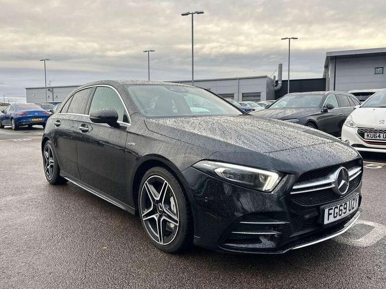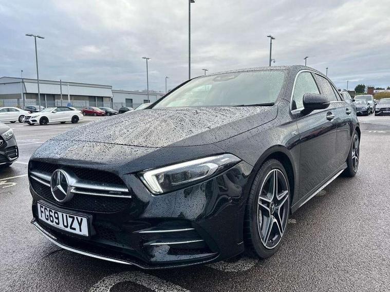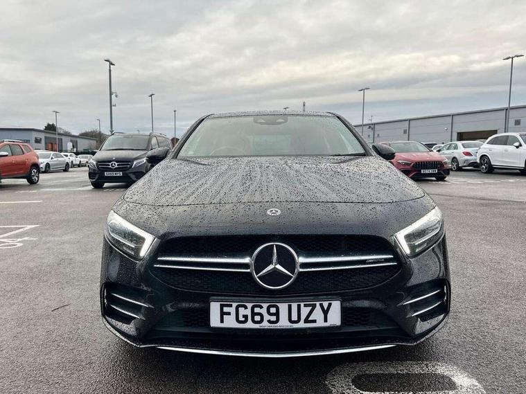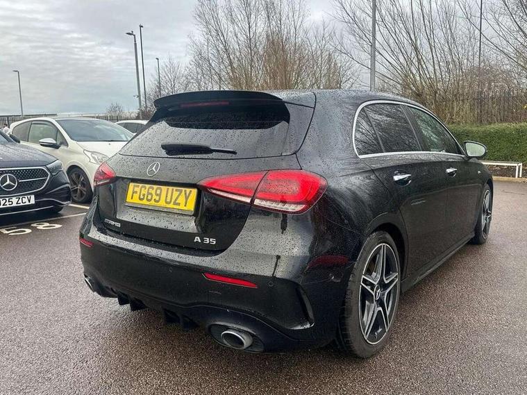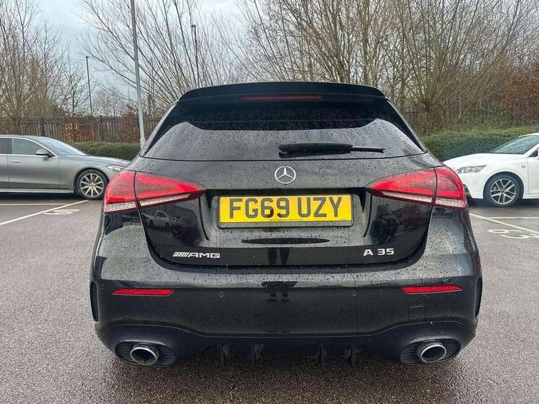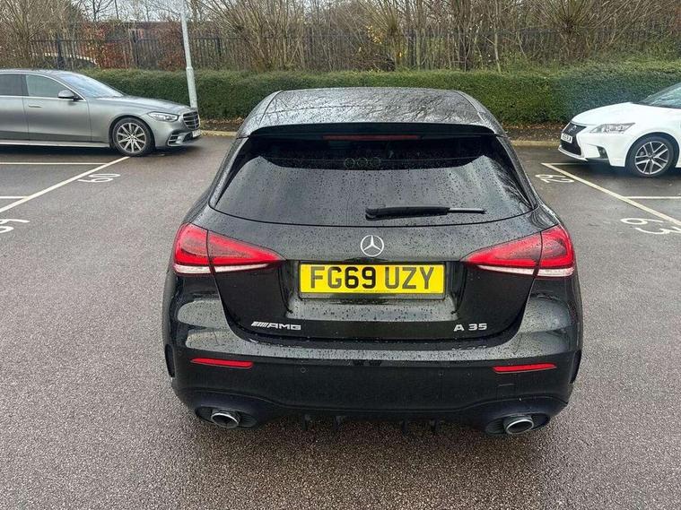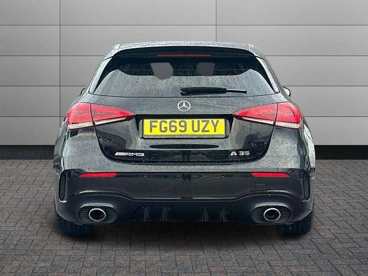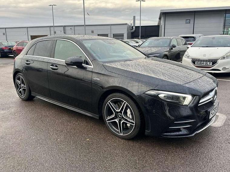 10.25" Digital instrument cluster display screen, 180 degree rear view camera with parking guidelines, Active lane keep assist, Active park assist with parktronic system including front and rear parking sensors, Attention assist, Brake pad wear indicator warning light, Direct steering, Dual bluetooth interfaces, DYNAMIC SELECT with driving programs (Slippery, Comfort, Sport, Sport+ and Individual), ECO start/stop function, Fluid level warning indicator for fuel, oil, coolant and washer fluid, Hard-disk navigation, Hey Mercedes Voice activation, Lamp failure indicator, Mercedes me connect including emergency call system, accident recovery, breakdown and maintenance management, Outside temperature gauge, Owners manual in English, Radio aerial integrated into roof spoiler, Service indicator (ASSYST), Speed sensitive power steering, Trip computer, 2 USB ports (type C) in rear stowage compartment and one in front of center console, Burmester surround sound system - 590W, DAB Digital radio, MBUX multimedia system with DAB digital radio and touchpad including satellite navigation, 4 Electric Front and Rear windows, Adaptive brake lights, AMG Front apron with flics as air deflector elements on the outer air intakes, AMG radiator grille with twin blade lamella and AMG Lettering, AMG spoiler lip on roof, AMG Sports exhaust system with two round tailpipes measuring 90 mm in diameter attached in rear apron, AMG lettering plus ribbing on the inside of the, Body colour bumpers, Body colour door handles, Body colour side skirt, Electric adjustable and heated door mirrors with integrated LED side indicators, Front wings wheel arches with TURBO 4MATIC lettering, Headlamp assist automatic headlamp activation, Heated glass rear windscreen + timer control, Illuminated front door sill panels with Mercedes-Benz lettering, LED tail lamp, LED third brake light, Multibeam LED with adaptive highbeam assist plus, Panoramic sliding sunroof, Privacy glass, Rain sensing windscreen wipers with two sensitivity settings, Rear fog lights, Rear wiper, Wider wheel arches for AMG wheels, 40:20:40 split folding rear seats, AMG Performance steering wheel in nappa leather, Auto Mercedes-Benz child seat recognition sensor, Black air vents with surround in silver chrome, Black roof lining, Brushed stainless steel sports pedals with rubber studs, Controller on centre console with chrome surround, Electrically adjustable front memory seats including lumbar support, Floor mats with stitched edging and AMG lettering, Front centre armrest with storage compartment, Front seat backs luggage nets, Front seat cushion length adjustment, Heated front seats, Height/reach adjustable steering column, Interior lighting - 64 colour Ambient lighting, Rear armrest with 2 cupholders, Rear head restraints, Seat occupancy sensor for front passenger seat, Silver coloured aluminium gear shift paddles on steering wheel, Spectacles compartment for driver, Sports seats with integrated headrests, Stowage compartment in centre console with retractable cover, Sunvisors with illuminated vanity mirrors, Touchpad on center console, Twin front cupholders, Two zone thermotronic luxury automatic climate control, Light and sight pack - A Class Premium/Premium Plus, Mirror package - A Class, Seat comfort pack - A Class, 3 rear 3 point seatbelts, ABS with Brake Assist, Active bonnet, Adaptive brake assist with hold function and hill start assist, Childproof locks manually operated for rear doors and electrically operated for rear power windows, Crash responsive emergency lighting, Driver and passenger head and side airbags, Drivers knee airbag, Dual stage driver/passenger airbags, Electronic parking brake, ESP curve dynamic assist, ESP with ASR, Front and rear seatbelt reminder, Front brake calipers with AMG lettering, ISOFIX and top tether child seat fixing points in two outer rear seats, Perforated front brake discs, Tyre pressure monitoring system, Warning triangle and first aid kit, Window airbags, Alarm system/interior protection/immobiliser, Keyless entry lock/unlock, Keyless Go, Remote central locking and crash sensor with emergency opening function, Light aluminium with longitudinal grain interior trim, Summer tyres, Tirefit sealant kit,