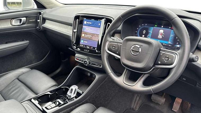 12.3" Progressive Driver Display, 360 degree surround view parking camera with side proximity sensors, 9" centre console portrait touch screen, Adjustable steering wheel force, Apple carplay (wired), Bluetooth handsfree system, Driver alert control, Driver assistance (pilot assist and adaptive cruise control), Driver awareness - Blind spot information system with steer assist, cross traffic alert with autobrake and rear collision warning and mitigation, E-call, Google automotive services - Enabled entertainment apps, navigation with google maps, voice recognition with google assistant, Hands free power tailgate, Intelligent speed assistance, Lane keeping aid, Oncoming Lane Mitigation, Speed sensitive steering, Volvo cars services with app - Driving journal, emergency and breakdown call, engine remote start, remote door locking/unlocking and vehicle dashboard, Wireless/Inductive Mobile Phone Charging, Automatic transmission with start/stop and manual change functions, Dynamic chassis, DAB Digital radio, Premium Sound by Harman Kardon, Dolby Pro Logic II Surround Sound, Dirac Unison, 12 speakers/600W and subwoofer, Steering wheel mounted remote controls, Active bending pixel LED headlights with adaptive shadow technology, Active high beam incorporating daytime running lights, Adaptive brake lights with high level LED brake lights, Auto dimming feature for exterior door mirrors, Auto dimming interior mirror, Automatic headlamp levelling, Dark tinted windows - rear side windows and rear screen, Front aluminium tread plates, Front and rear electric windows, Headlight cleaning system, High gloss black front and rear skid plate, High gloss black front bumper deco, High gloss black mesh front grille with high gloss black surround, High gloss black window trim, Home safe and approach lighting, Integrated roof rails in high gloss black, LED front fog lights with cornering function, Power glass tilt and slide panoramic sunroof with sun curtain, Puddle lights, Rain sensor with automatic windscreen wiper activation, Rear side wing doors, Rear wiper, Roof antenna, Roof spoiler, Visible VIN plate, 12V socket in front tunnel console and luggage compartment, 2-Zone electronic climate control with CleanZone air quality system and pollen filter, 3 seat bench in 2nd row, 3 Spoke tailored steering wheel with chrome trim, 60/40 versatile split folding rear seat, Centre console cupholders and storage, Flexible load floor and grocery bag holder, Floor mats, Front cabin courtesy lights, Front door pocket, front cupholder, ambient front door, rear reading, rear courtesy, instrument panel and tailgate lighting, Front footwell illumination, Front headrests, Front reading lights, Front seat cushion extensions, Front side step illumination (under door), Glovebox bag hook, Heated front seats, Height/reach adjustable steering column, High gloss centre tunnel deco, Illuminated glovebox, Illuminated luggage compartment, Illuminated vanity mirrors + ticket holder, Integrated waste bin, Isofix attachments on outer rear seats, Load cover, Load protection net, Multi directional lumbar support for driver and passenger seat, Power driver seat with memory + exterior mirrors memory, Power folding rear headrests, Power passenger seat, Rear armrest with cupholders, Single front passenger seat, Underfloor cargo storage, Climate pack without heated front seats - XC40, 3x3 point rear seatbelts, City safety with steering support with Pedestrian + cyclist + front collision warning with full auto brake and rear auto brake, Driver and passenger airbags, Drivers knee airbag, Electronic parking brake with auto hold, First aid kit, Front and outer rear seatbelt reminder and pretensioners, Front seats SIPS airbags, Hill descent control, Hill start assist, Inflatable curtain, Passenger airbag cut-off device, Power child locks on rear doors, Road sign information display, Run off Road Protection, SIPS (Side Impact Protection System), Slippery road and hazard light alert, Stability and Traction Control with Spin control, Engine Drag Control and Corner Traction Control, Tyre pressure monitoring system, Vehicle deceleration control with Anti-lock Brake System, Electronic Brake Distribution and Emergency Brake Assist, Warning triangle, WHIPS whiplash protection system - front, 2 x Key integrated remote control central locking including with deadlocking system and auto open/close windows and sunroof, Anti-theft alarm including immobiliser/volume sensor + level sensor, Keyless drive includes keyless entry and keyless start, Locking wheel nuts,