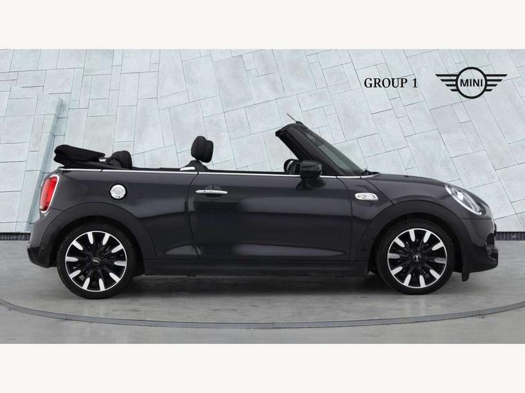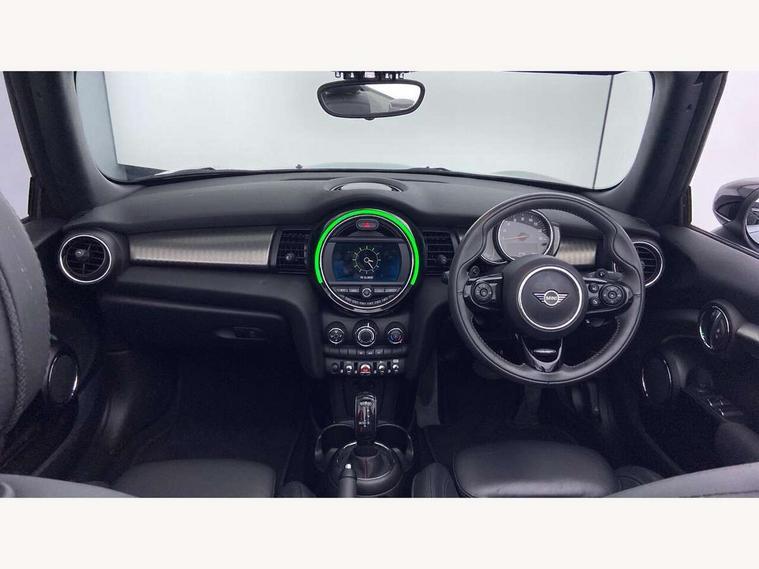 Automatic start/stop function with brake energy recuperation, Compatible mobile phone bluetooth with audio streaming, Electro-mechanical speed dependant steering assistance, Instrument cluster, MINI Driving Modes - centre toggle switch to control driving setting (sport, mid and green), Mini E-call, MINI TeleServices, On board computer, Rear park distance control, Service interval indicator, Double Vanos system, Fully variable valve control, High precision injection, Performance Control, Steptronic sport transmission with double clutch and steering wheel paddles, 6.5" touchscreen with LED ring, FM tuner and DAB digital radio, Automatic headlight activation switch, Bonnet scoop, Chrome plated fuel cap, Dynamic brake lights, Electric windows, Fully electric black softtop with integrated sunroof functionality, Heated rear window, Heated windscreen washer jets, LED headlight with closed ring and daytime driving lights, Metal door sill strips with Cooper S imprint, Model logo Cooper S on right of tailgate, Radiator grille bars, tailgate handle, lower front grille grating, rear central fog light in chrome, Rain sensor window wipers, Rear fog lights, Rear LED lights with union jack design, Side scuttle panel with integrated indicator, Sun/heat protection glass, Two central exhaust tailpipes with chrome finisher, White indicator lenses, 12V Accessory socket in centre console, 4 lashing eyes in luggage compartment, 50/50 split folding rear seats, Air vents, gear lever base, speakers in doors, door handles in chrome, Chrome interior highlights, Cupholders, Easy Load boot handles, Front and rear head restraints, Front and rear isofix with front passenger airbag deactivation, Front seatback storage pockets, Glove compartment, Height and length steering column adjustment, Interior lighting with 12 basic colours selectable via toggle switch in roof, Leather gearshift lever and handbrake gaiters, LED reading lights, vanity mirror lights, front foot well light and spotlight on front seats, Manual air conditioning, Mechanical seat adjustment, driver seat height adjust, forward/back and front seats backrest, Mini logo projection on floor from drivers exterior mirror, MINI Yours fine walk nappa leather steering wheel with contrast stitching in silver and MINI Yours badge, Multifunction steering wheel, Storage compartments in doors, Sunvisors with vanity mirrors, Convertible pack with comfort access - Mini Convertible, 3 point seatbelts on all four seats, 6 Airbags - front, side and seat belt tensioners, Active rollover protection, Anti-lock braking system (ABS), DSC - Dynamic Stability Control, Front and rear disc brakes, Hill start assist, Two tone horn, Tyre pressure monitoring system, Alarm system with tilt sensor, monitoring doors, bonnet interior and tailgate, Electronic vehicle immobiliser, Keyless Go, Chrome line interior, Tool kit,