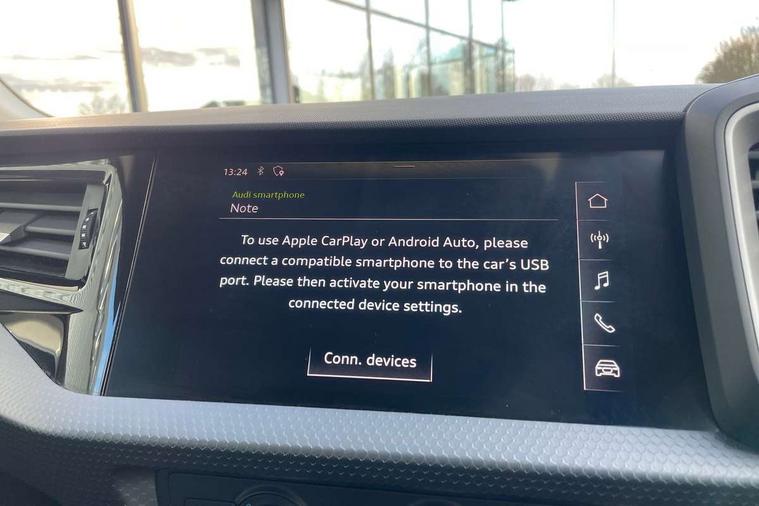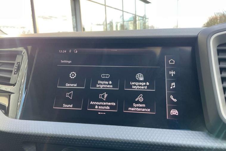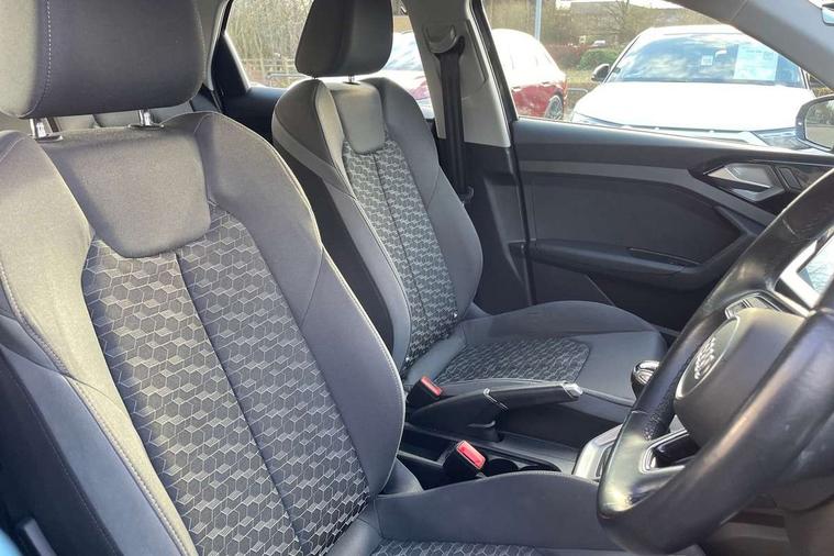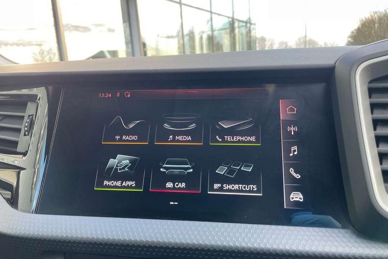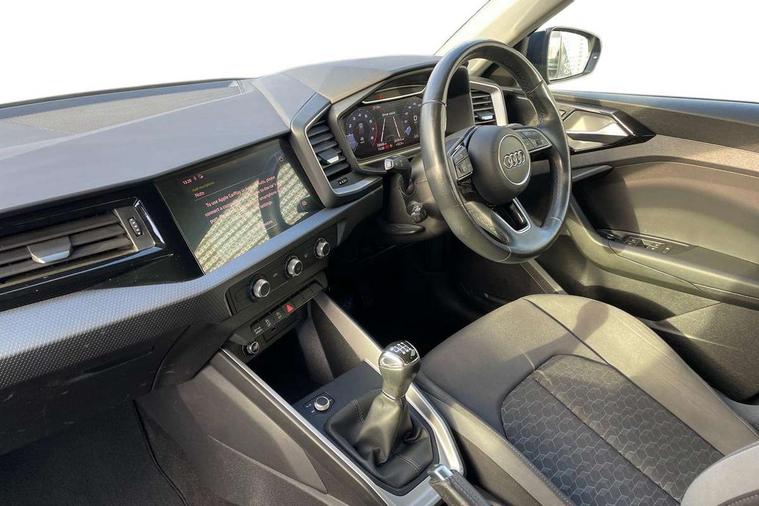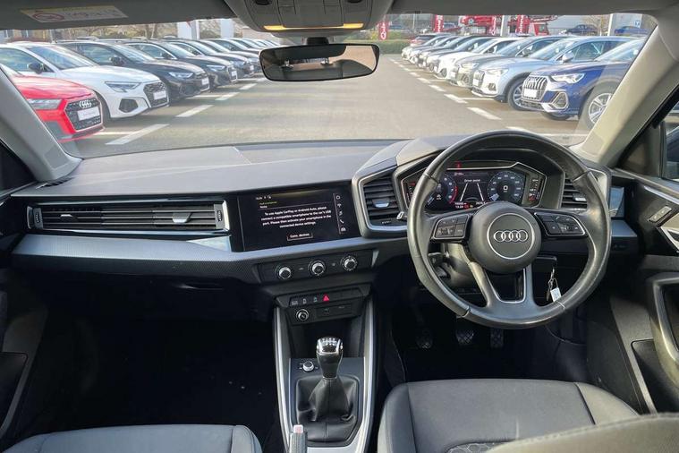 10.25" Digital instrument cluster display classis style instrument dials + speed, odometer, time, outside temperature, telephone menu + fuel level warning, Audi connect safety emergency and service including E-call, Audi drive select - power steering assistance + engine, Audi smartphone interface with connect compatible smartphone via USB directly MMI display + Nav, music, third party apps controlled via MMI controller, Automatic start/stop system, Bluetooth interface, Cruise control, Driver's information system, Electromechanical power steering, Lane departure warning system, Service interval indicator, Speed limiter, Voice control system, Washer fluid level indicator, Dynamic suspension, 1 x SDXC card reader, 2 x USB type C connection points, DAB Digital radio, MMI radio plus with 8.8" colour MMI display screen and MMI touch, Auto dimming rear view mirror, Body coloured bumpers, Body coloured door mirrors, Electric front and rear windows, Electrically adjustable, heated, folding door mirrors with integrated LED side indicator, Front side air inlets in grained matt black and C frame in titanium black, Heat insulating glass windscreen and side windows, Heated rear windscreen, LED headlights with LED rear lights + dynamic rear indicators + headlight adjustment and high beam, turning light + LED daytime running lights, Radiator grille and rear diffuser in matt titanium black, Radiator protective grille frame in matt aluminium silver, Rain and light sensors, Rear fog lights, Rear wiper, Scandium grey tailpipe trim, Side front spoiler lips in grained matt black, 12V socket in centre console with two cup holders, 3 rear seats with headrests, 40:60 Split folding rear seat or folded fully, Door sill trims with aluminium inlay, Driver and passenger seat with manual height adjust with forward and backwards adjustment, Front head restraints, Front/rear floor mats, Height and reach adjustable steering wheel, ISOFIX child seat mounting for front passenger and outer rear seats including top tether attachment point of outer rear seats, Leather gear knob with aluminium trim, Leatherette handbrake grip, Luggage compartment light with front and rear reading lights, Manually adjustable lumbar support in front seats, Novum cloth upholstery with front sport seats, Titanium grey cloth headlining, Luggage compartment pack - A1, 3x3 point rear seatbelts, Audi pre-sense front with pedestrain and cyclist recognition, Brake assist function, Driver and front passenger airbag with front side and head airbags, Electronic Stability Control including ABS, EBD, ASR and EDL, Front and rear seatbelt reminder, Front passenger airbag deactivation switch, Hill hold assist, Seatbelt height adjustment for front seats, Seatbelt monitoring, Tyre pressure warning light, Warning triangle and first aid kit, Anti theft alarm, Anti theft wheel bolts and loose wheel warning, Immobiliser, Remote central locking with 2 foldaway keys, Aluminium trim for control switches, air vents and digital instrument cluster, Silver grey accent areas including air vents, door handle recesses and centre console in diamond paint finish, Slate grey inlays polygon structure in fine paint finish,