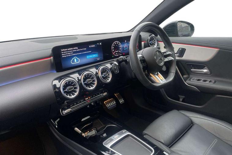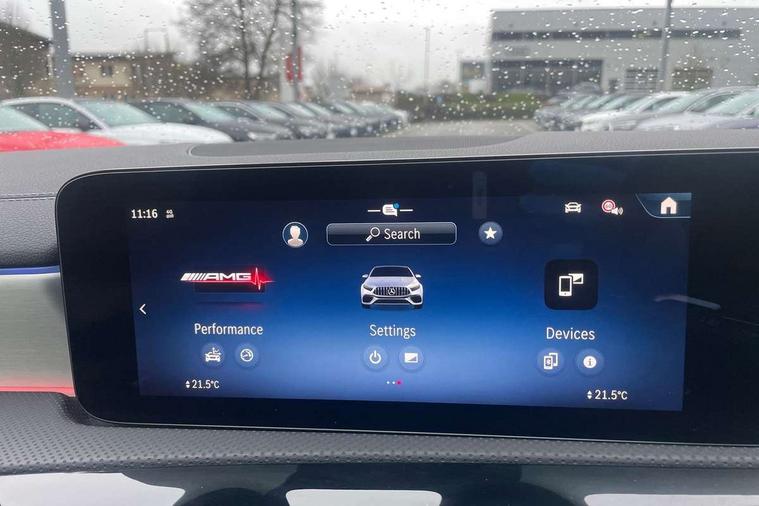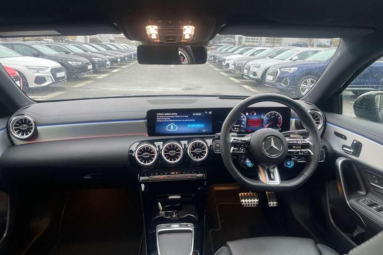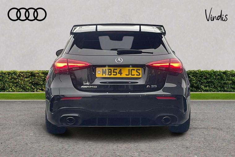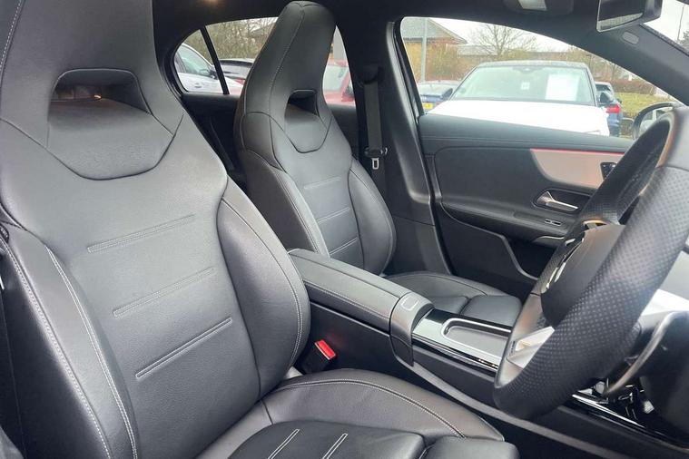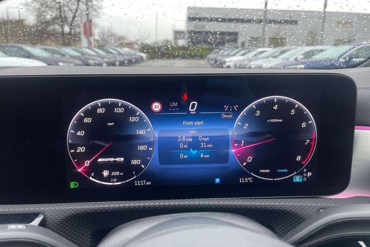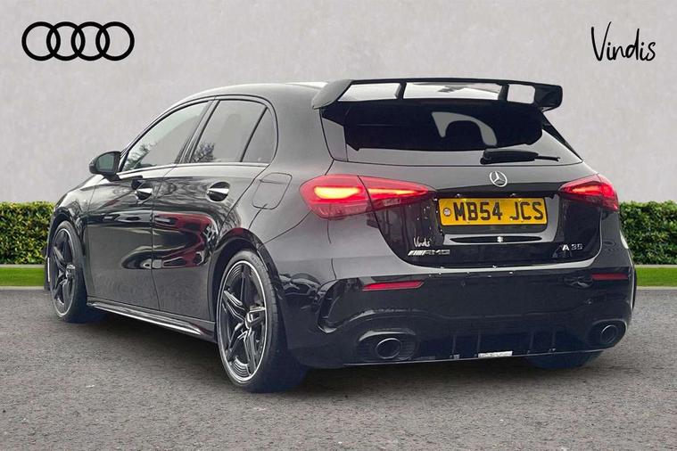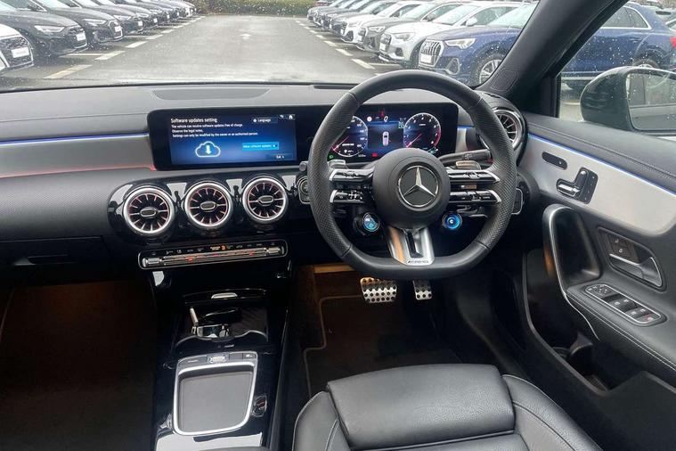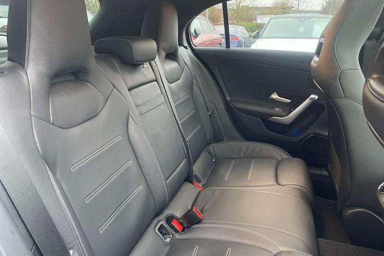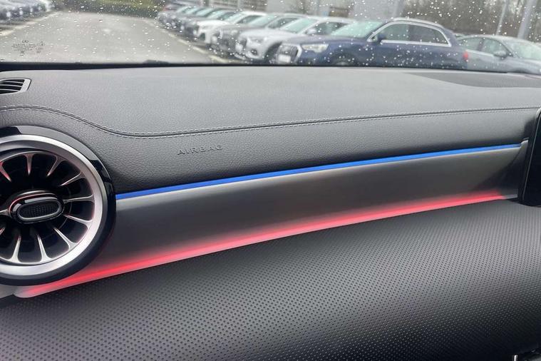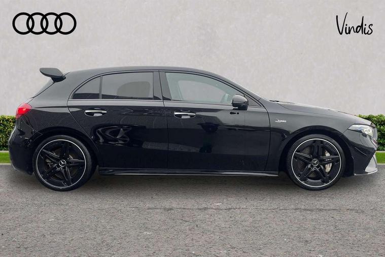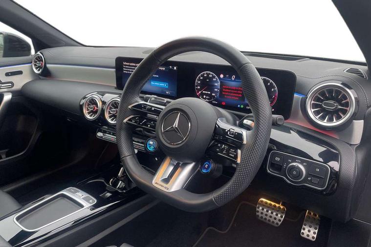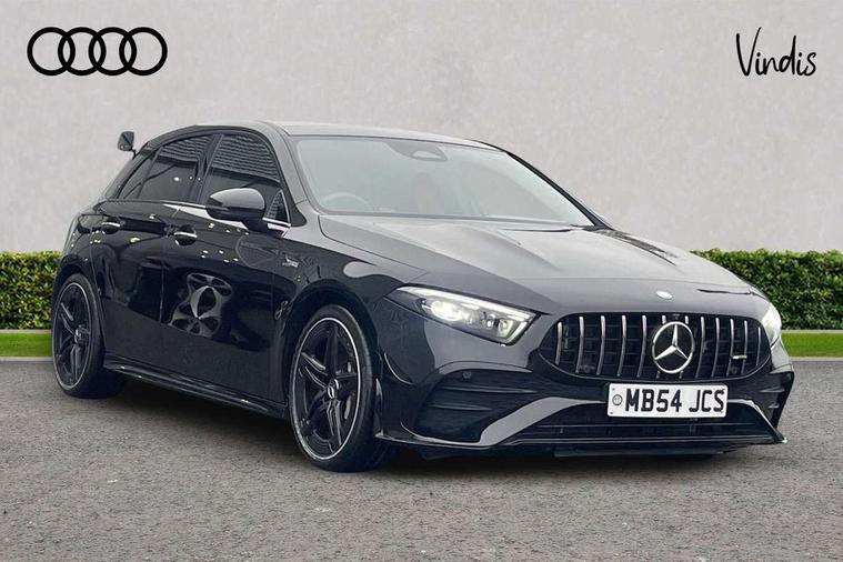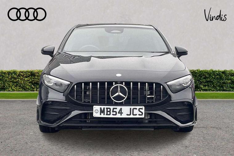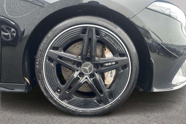 10.25 inch touchscreen central media display, 10.25" Digital instrument cluster display screen, Attention assist, Brake pad wear indicator warning light, Car wash mode, Direct steering, Direction indicators with lane change function, Dual bluetooth interfaces, DYNAMIC SELECT with driving programs (Slippery, Comfort, Sport, Sport+ and Individual), Easy pack tailgate hands-free access, ECO start/stop function, Engine start/stop button, Fluid level warning indicator for fuel, oil, coolant and washer fluid, Fluorescent jacket for driver, Hard-disk navigation, Head up Display, Hey Mercedes Voice activation, Lamp failure indicator, MBUX augmented reality for navigation, MBUX Interior assistant, Mercedes me connect including emergency call system, accident recovery, breakdown and maintenance management, Mercedes me remote services, Outside temperature gauge, Owners manual in English, Pre-installation of private car share, Preinstallation for Mercedes Benz link, Remote boot closing, Service indicator (ASSYST), Smartphone integration with Apple CarPlay and Android auto, Speed sensitive power steering, Tailgate, Traffic sign assist, Trip computer in multifunction display with current consumption indicator, Wireless charging, AMG suspension, Suspension with adaptive damping system, DAB Digital radio, MBUX multimedia system, Mercedes Benz advanced sound system (225 W) with 10 speakers, 1 central speaker, speakers on doors, a tweeter on door, one sub woofer + boost amplifier, 4 Electric Front and Rear windows, Adaptive brake lights, AMG body styling - AMG front apron with front splitter and AMG rear apron and visible exhaust tailpipe trim elements, AMG Front apron with flics as air deflector elements on the outer air intakes, AMG radiator grille with twin blade lamella and AMG Lettering, AMG Rear apron with specific diffuser look with four vertical fins and two round chrome plated tailpipe trim elements with a diameter of 90 mm, AMG spoiler lip on roof, Beltline strips in High gloss Black, Body colour bumpers, Body colour door handles with chrome inserts, Body colour side skirt, Electric adjustable and heated door mirrors with integrated LED side indicators, Front splitter and trim elements on the louvres in the outer air inlets, Front wings wheel arches with TURBO 4MATIC lettering, Headlamp assist automatic headlamp activation, Heat insulating dark tinted rear and rear side windows, Heated glass rear windscreen + timer control, LED daytime running lights, LED High level third brake light, LED tail lamp, Multibeam LED headlamps with adaptive highbeam assist and cornering function, Panoramic sliding sunroof, Privacy glass, Radio aerial, Rain sensing windscreen wipers with two sensitivity settings, Rear fog lights, Rear side wing doors, Rear windscreen wiper, Surround lighting with logo projection, Wider wheel arches for AMG wheels, Window line trim strip in black, 3 seat bench in 2nd row, 40:20:40 split folding rear seats, Air conditioning - Two zone thermotronic luxury automatic climate control with display, AMG floor mats, AMG Performance steering wheel in nappa leather, Automatic child seat recognition sensor, Black air vents with surround in silver chrome, Black roof lining, Brushed stainless steel sports pedals with rubber studs, Electrically adjustable front memory seats including lumbar support and backrest inclination, Front centre armrest with stowage, Front seat backs luggage nets, Heated front seats, Height/reach adjustable steering column, Illuminated AMG front door sills with changeable cover, Interior lighting - 64 colour Ambient lighting, Interior mirror with reading lamps in black and frameless, Rear armrest with 2 cupholders, Seat occupancy sensor for front passenger seat, Silver coloured aluminium gear shift paddles on steering wheel, Single front passenger seat, Sports seats with integrated headrests, Stowage compartment in centre console with retractable cover, Sunvisors with illuminated vanity mirrors, Twin front cupholders, Aerodynamic pack - A Class, AMG night pack - A Class, Light and sight pack - A Class, Mirror package - A Class, Parking pack with 360 degree camera - A Class, Seat comfort pack - A Class, USB pack plus - A Class, 3 rear 3 point seatbelts, ABS with Brake Assist, Active bonnet, Adaptive brake assist with hold function and hill start assist, Black seatbelts, Bonnet with power domes, Childproof locks manually operated for rear doors and electrically operated for rear power windows, Crash responsive emergency lighting, Driver and passenger head and side airbags, Drivers knee airbag, Dual stage driver/passenger airbags, Electronic parking brake, ESP curve dynamic assist, ESP with ASR, Exit warning, Front and rear seatbelt reminder, Front brake calipers with AMG lettering, ISOFIX and top tether child seat fixing points in two outer rear seats, Tyre pressure monitoring system, Warning triangle and first aid kit, Window airbags, Alarm system/interior protection/immobiliser, Guard 360 degree vehicle protection, Keyless entry lock/unlock, Keyless Go, Remote central locking and crash sensor with emergency opening function, Light longitudinal grain aluminium trim, 19" AMG 5 twin spoke light alloy wheels aerodynamically optimised painted in matt black with high sheen rim flange, Summer tyres, Tirefit sealant kit,