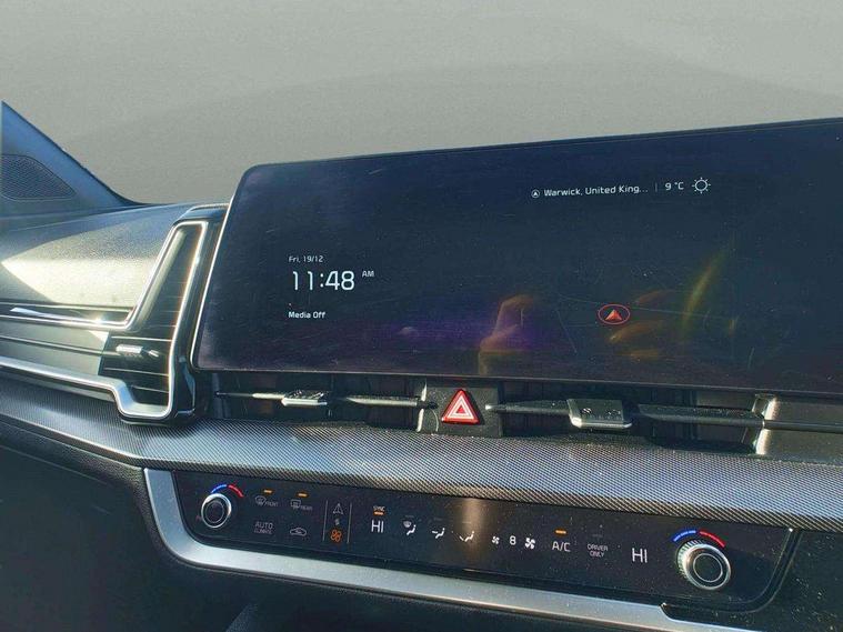 12.3" Display with navigation, 12.3" supervision colour cluster display, 360 degree around view monitor, Apple car play/Android Auto with voice control, Blind spot collision avoidance assist, Blind spot view monitor, Drive mode selector, E-call, Forward collision avoidance assist (FCA) - city/pedestrian/cyclist/junction covering, Front and rear parking sensors, Highway Driving Assist (HDA), Intelligent speed limit assist, Kia Connect (UVO), Lane Following Assist (LFA), Lane keep assist, Low washer fluid warning, Parking collision avoidance assist (PCA), Remote smart parking assist, Reversing camera system integrated into centre fascia screen, Smart cruise control with stop and go functionality, Smart power tailgate, Speed sensitive power steering, Trip computer, Windscreen washer level indicator, Wireless Smartphone charger, Intelligent Stop and Go, Bluetooth audio streaming, DAB Radio with MP3, Harman Kardon premium sound system, Rear USB port, Steering wheel mounted audio controls, USB C type charging ports on centre console, USB C type charging ports on side of front seats, USB port for connection of a media device, All round electric windows with drivers and front passenger auto up/down function, Automatic headlight control system, Automatic window defogger, Backlite glass heated with timer, Body colour and black bumper with silver accents, Body colour exterior door handles, Body colour radiator upper garnish and door garnish, Dual LED adaptive headlamps, Electric panoramic glass sunroof (Electric one touch with safety function), Electrically adjustable/heated/folding door mirrors with LED indicators, Front and rear chrome skid plates, Gloss black door mirrors, Gloss black radiator grille, Gloss black side sill and wheel arch body mouldings, Glossy black roof rack, High beam assist, Interior electrochromic mirror, LED daytime running lights, LED front fog lamps, LED High mounted stop light, LED rear combination lamp, Rain sensing wipers with aero blades, Rear fog lamp, Rear privacy glass, Rear side wing doors, Rear spoiler, Rear wiper, Satin finished beltline, Silver coloured inserts to bumpers, Tinted rear glass, Trailer stability assist, 10 way driver/8 way passenger electrically power adjustable seats, 12V power socket in front centre fascia and luggage compartment, 3 seat bench in 2nd row, 3 x passenger assist grips, 40/20/40 split folding rear seat, All-round height adjustable headrests, Ambient lighting, Black headlining, Centre console storage box, Cupholders in rear armrest, D-Shaped sports leather steering wheel and perforated inserts with GT-Line logo, Door courtesy lamps, Drink holder at centre armrest, Driver and front passenger side sunvisors with illuminated vanity mirrors, Driver seat memory function, Drivers seat power lumbar support, Front and rear door storage, Front seat and rear pockets, Front/rear centre armrests, Gear shift indicator, Glovebox illumination, Heated front and outer rear seats, Heated steering wheel, Interior door lock/unlock function, ISOFIX Child seat top tethers and anchor fixings outer rear seats, LED interior personal lamp, LED lighting in overhead console, Luggage area LED light, Luggage area load cover, Luggage net with hooks, Metal paint interior door handles, Paddle shift controls, Rear cabin light, Rear coat hooks, Single front passenger seat, Sports pedals, Suede leather upholstery, Three zone climate control, Tilt/telescopic adjustable steering wheel, Ventilated front seats, Ventilation ducts to rear compartment, Active front headrests, All round 3-point seatbelts, Anti-lock braking system (ABS), Dual front side airbags, Dual horn, Electronic parking brake, Electronic stability control with downhill brake control, Front passenger airbag cut-off switch, Front seatbelt pretensioners + load limiters, Height adjustable front seatbelts, Hill start assist control (HAC), Impact sensing auto door unlocking, Multi collision brake assist, Rear door child safety locks, Rear seat alert system, Traction control, Twin curtain airbags, Twin front airbags, Tyre pressure monitoring system, Advanced anti-theft system including immobiliser and alarm, Door deadlocks, Engine Start/Stop Button with Smart Entry System, Locking wheel nuts, Speed sensitive auto door locking, Visible vehicle identification number, Aluminium pattern finish centre fascia and door garnish, 18" GT-Line alloy wheels, Michelin tyres, Tyre mobility kit,