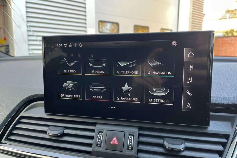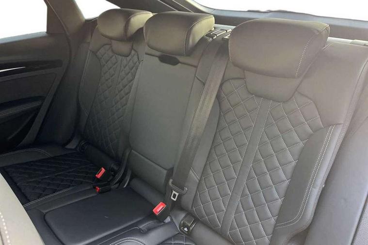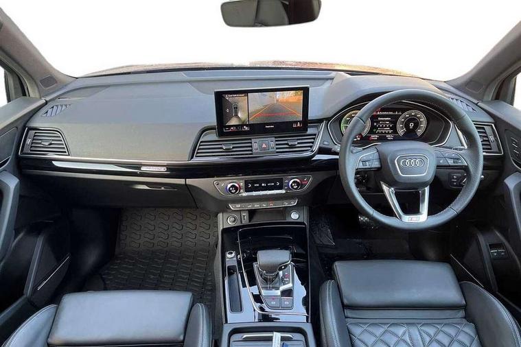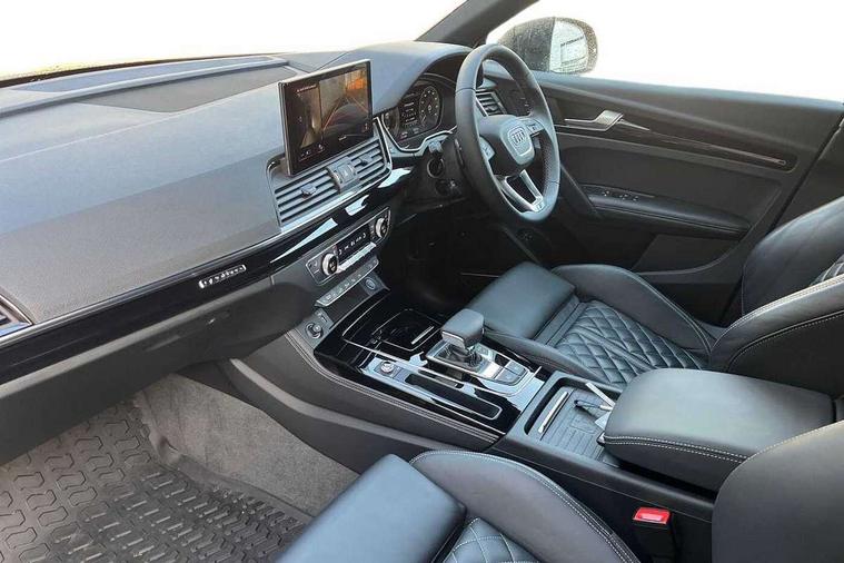 360 degree camera with top view, Advanced key with electric hands free boot opening system, Audi connect safety and service (e-call), Audi connect with Amazon Alexa Integration, Audi drive select, Audi virtual cockpit plus with 12.3" screen and three different layout designs, Audi wireless smartphone interface, Automatic start-stop system with coasting functionality and efficiency programme, Bluetooth interface, Electro - mechanical power assisted steering, Head up Display, MMI navigation plus with 10.1" touch screen, Park assist with parking aid plus, Power tailgate, Service interval indicator, Speed limiter, Voice control system with Audi hotword activation "Hey Audi", 3 pin 10 amp domestic charging cable, Adaptive air suspension, Quattro on demand, Type 2 mode 3 22kW 32 amp charging cable, Type 2 socket for AC charging, 2 x USB charging port with aux input socket, Bang + Olufsen sound system, DAB Digital radio, Acoustic windscreen, Audi beam with 'Vorsprung' logo, Audi matrix LED headlights with dynamic front and rear indicators, Auto dimming rear view mirror, Automatic headlights and windscreen wipers, Black roof rails, Body colour bumpers, Body colour underbody protection, Chrome plated exhaust trims, Door sills in Selenite silver, Electric adjustable/heated/folding door mirrors, Electric panoramic glass sunroof, Front air inlet surrounds in aluminium, Front and rear electric windows, Gloss black finish for Audi rings and SQ5 logos, Headlight washers, High gloss black B pillar trims and triangular rear door trim, Lower bumpers painted in contrast Manhattan grey, Rear chrome trim strip below lights, Rear privacy glass and rear side windows, Rear spoiler, Rear wiper, Roof bars, 3 rear headrests, 3 spoke heated leather multi-function steering wheel, 4 way electric lumbar support for driver and front passenger, 40:20:40 split folding rear seat with rear centre armrest, Black cloth headlining, Comfort front centre armrest, Contrast stitching on seats, steering wheel and gear lever gaiter, Deluxe 3 zone electronic climate control, Electrically adjustable front seats with driver memory, Fine Nappa leather upholstery with diamond pattern contrast stitching + front sport seats with S embossed logo, Front/rear floor mats, Gear lever in black leather, Heated front and outer rear seats, Height adjustable front head restraints, Illuminated door sill trims with S logo, ISOFIX child seat mounting and top tether, Massage function for front seats, Rear seat bench plus, Sunvisors with vanity mirrors, Trunk roller cover, Black styling package - Q5, City Assist pack - Q5, Extended interior upholstery pack - Q5, Extended LED Interior multi coloured Lighting Pack - Q5, Tour pack - Q5, 3 point seatbelts on all seats, 6 airbags - Driver, front passenger, curtain and side airbags, Electrically operated child locks on rear doors, Electromechanical parking brake, Electronic stabilisation control including ABS, ASR and EDL, Front passenger airbag deactivation, Hill descent control, Hill hold assist, Multi collision brake assist, Pop-up bonnet for pedestrian protection, Pre sense city, Seat belt force limiter, Seatbelt monitoring, Tyre pressure warning, Warning triangle and first aid kit, Anti theft alarm, Anti-theft wheel bolts, Keyless Go access/ignition system, Piano black finish inlay, Tool kit, Tyre repair kit,