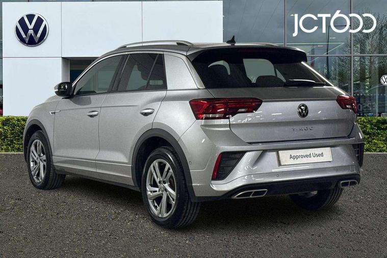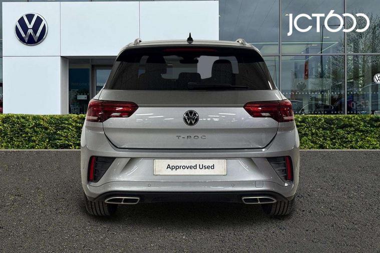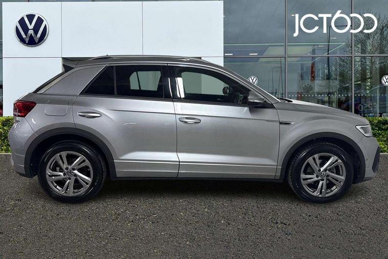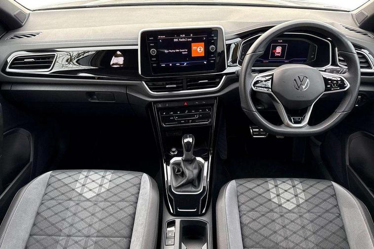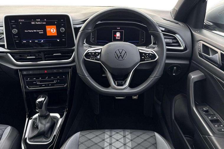 10.25" Digital cockpit pro, Bluetooth mobile phone interface, Driver alert system with fatigue detection, Driver tips and journey analysis, Emergency call service, Lane keeping system Lane Assist, Modified key software - reduce switch off time for key status change to Long no motion, Online services, Park assist including front and rear parking sensors, Service interval indicator, Tailgate/trunk lid release from outside, Think blue trainer driver tips and journey analysis, Warning sound and light for front seatbelts unfastened, Wireless app connect, Battery regeneration during braking, Start/stop function with battery regeneration, Diversity antenna for FM reception, Front and rear 6 speakers, Music playback - MP3, WMA and AAC files, Premium USB cable in choice of either Apple or Android smartphone compatibility, SD card slot, Simultaneous pairing of 2 compatible mobile devices, Title and cover art display, We Connect and We Connect Plus functionality, 3rd brake light, Auto dimming interior rear view mirror, Automatic hazard lights activation under emergency braking, Automatic headlight control with LED separate daytime running lights with coming/leaving home function, Extended roof spoiler, Exterior mirrors aspherical on driver side, convex on front passenger side, External USB type C socket and charging sockets, Front windscreen wiper with intermittent wipe and 4 position delay, Heated rear window, LED Plus headlamps, LED rear combination lamps, LED rear number plate lights, LED tail lamp rear comination lamps, Power windows with comfort operation and circuit breaker, R-Line design body coloured bumpers, Rain sensor, Rear exhaust tailpipe, Rear fog light on one side and reversing lights on both sides, Rear side wing doors, Rear wash/wipe with intermittent wipe setting, Remote electrically foldable door mirrors, puddle lights and reverse activated passenger's door mirror, 12V power socket in centre console, 3 rear head restraints, 3 seat bench in 2nd row, 4 load lashing points in luggage compartment, Air care climatronic air conditoning system with active combination filter and 2-zone temperature control, Black roof lining, Chrome plated radiator grille inserts, air vent surrounds and light switch surrounds, Door and side trim panel with leatherette insert, Drawer under drivers seat, Front + rear carpet mats, Front centre armrest, Front cupholders x 2, Front footwell illumination, Front reading light, Front scuff plates with R logo, Instrument lighting, white adjustable panel illumination, Interior ambient lighting and surround lighting, Interior light delay, Isofix child seat preparation, Leather gearshift handle, Load-through provision with cup holder when folded down ('Unsplit rear seat bench, split folding backrest, with centre armrest), Luggage compartment lighting, Single front passenger seat, Stainless steel pedals, Storage compartment in left and right luggage area, Storage compartment in rear doors, Storage compartments in driver and front passenger doors, Sunvisors with illuminated vanity mirrors, Variable boot floor, height adjustable and removable, Driver assistance pack without proactive passenger protection - T-Roc, 3 point height adj front seatbelts + pretensioners, 3 point seatbelts in outer rear with ECE label, ABS, Child locks on rear doors, Driver and front passenger airbag with front passenger airbag deactivation, Driver and front passenger safety-optimised head restraints, Drivers seatbelt reminder, Electronic parking brake, Electronic Stability Control (ESC) inc EDL (Electronic Differential Lock) and ASR (Traction Control), Front and rear passengers curtain airbag system including front side airbags, Front assist with city emergency braking and pedestrian monitoring, Front seat side impact airbags, Hill start assist, Predictive pedestrian protection, Rear disc brakes, Single tone horn, Tyre pressure loss indicator, Volkswagen roadside assistance, Alarm with interior protection, Anti-theft alarm system with interior monitoring, backup horn, and towing protection, Remote central locking with SAFELOCK, radio remote control with 2 remote control folding keys, Trims for alloy wheels,
