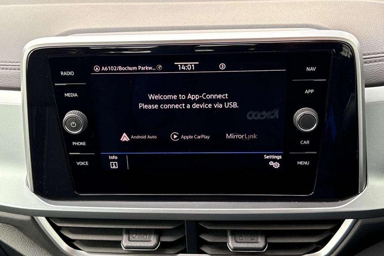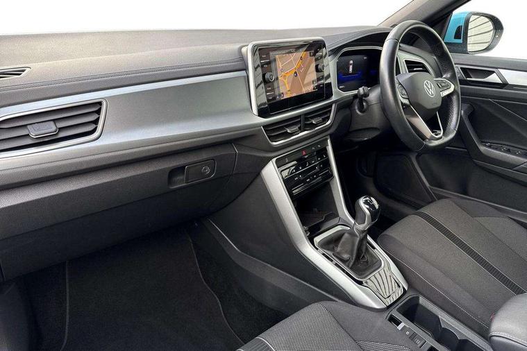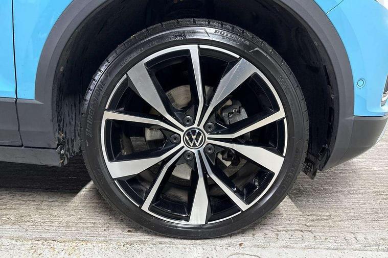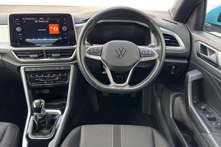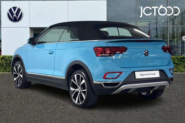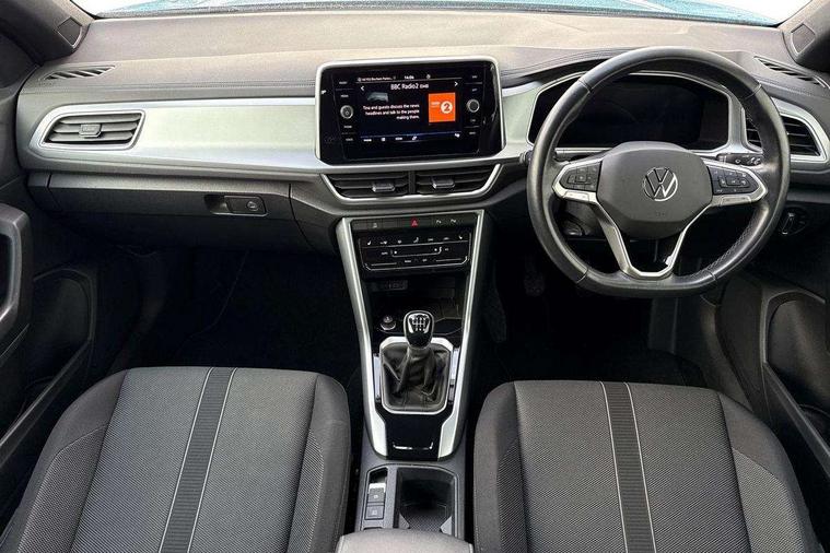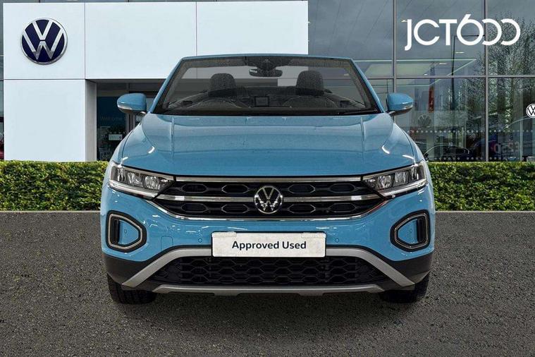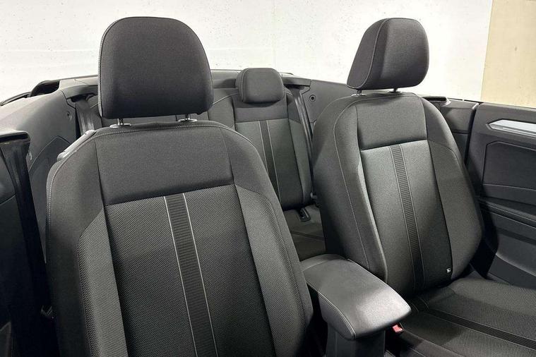 Adaptive cruise control and speed limiter, Bluetooth mobile phone interface, Brake pad wear indicator, Car information display, Driver alert system with fatigue detection, Driver tips and journey analysis, Emergency call service, Modified key software - reduce switch off time for key status change to Long no motion, Multifunction computer with visual gear change recommendation for fuel consumption, Multifunction front facing camera, Park assist including front and rear parking sensors, Speedo and rev counter, electronic odometer, trip, service interval display and exterior temperature gauge, Start/stop system with brake energy recovery, Tailgate/trunk lid release from outside, Warning sound and light for front seatbelts unfastened, Diversity antenna for FM reception, Music playback - MP3, WMA and AAC files, SMS functionality - read, compose and send SMS messages using touch-screen display, Title and cover art display, USB-C Interface and USB charging socket, We Connect and We Connect Plus functionality, Ambient lighting with logo projection, Auto dimming interior rear view mirror, Automatic hazard lights activation under emergency braking, Automatic headlight control with LED separate daytime running lights with coming/leaving home function, Black roof, Body colour door handles, Body colour rear spoiler, Body coloured bumpers and radiator grille with chrome trim and front fog lamps with chrome bezel, Chrome effect left and right trapezoid exhaust tailpipe fascia surround, Dark red rear combination lamps in LED technology, Dusk sensor, Exterior mirrors aspherical on driver side, convex on front passenger side, Headlight range control, Heat insulating glass windscreen, High level 3rd brake light, LED Headlights, LED rear number plate lights, Power operated canvas convertible top, Power windows with comfort operation and circuit breaker, Rain sensor, Rear boot, Rear exhaust tailpipe, Rear fog light on one side and reversing lights on both sides, Remote electrically foldable door mirrors, puddle lights and reverse activated passenger door mirror, Volkswagen roundel, Windscreen wiper with intermittent wipe light, Without exterior ambient lighting, 12V socket in centre console storage area, 2 LED front reading lights, 2 seat bench in 2nd row, 50:50 Split folding rear seat backrests with fixed rear seat bench, Air care climatronic air conditoning system with active combination filter and 2-zone temperature control, Black door lower parts with chrome trim, Chrome plated surround to light, mirror and window switch, Door and side trim panel with leatherette insert, Easy entry backrest release, Front and rear carpet mats with black stitching, Front centre armrest, Front cupholders x 2, Front door pockets, Front seat back storage pockets, Heated multi function steering wheel, Height/reach adjust steering wheel, Instrument lighting, white adjustable panel illumination, Interior light delay, Interior light in footwell, Interior lighting with switch off delay and contact switches on all doors, Interior white ambient lighting and surround lighting, Isofix child seat preparation, Lockable glove compartment with light, Luggage compartment lighting, Rear head restraints, Single front passenger seat, Sun visors with illuminated vanity mirrors, Driver assistance pack without proactive passenger protection - T-Roc cabriolet, 2 x 3-point seatbelts/outer rear seats with ECE label, Driver and front passenger airbag with front passenger airbag deactivation, Driver and front passenger safety-optimised head restraints, Drivers seatbelt reminder, Electronic parking brake, Electronic Stability Control (ESC) including ABS, ASR and EDL, Front and rear disc brakes, Front assist with autonomous emergency braking, Pedestrian monitoring, Predictive pedestrian protection, Rigid safety cell with front and rear crumple zones, Side airbag/thorax airbag system, for front passengers, Single tone horn, Three point height adjust front seatbelts + pretensioners, Tyre pressure loss indicator, Volkswagen roadside assistance, Anti-theft alarm system with interior protection and central locking system with SAFELOCK, radio remote control and 2 remote control folding keys, Electronic engine immobiliser, Trims for alloy wheels,