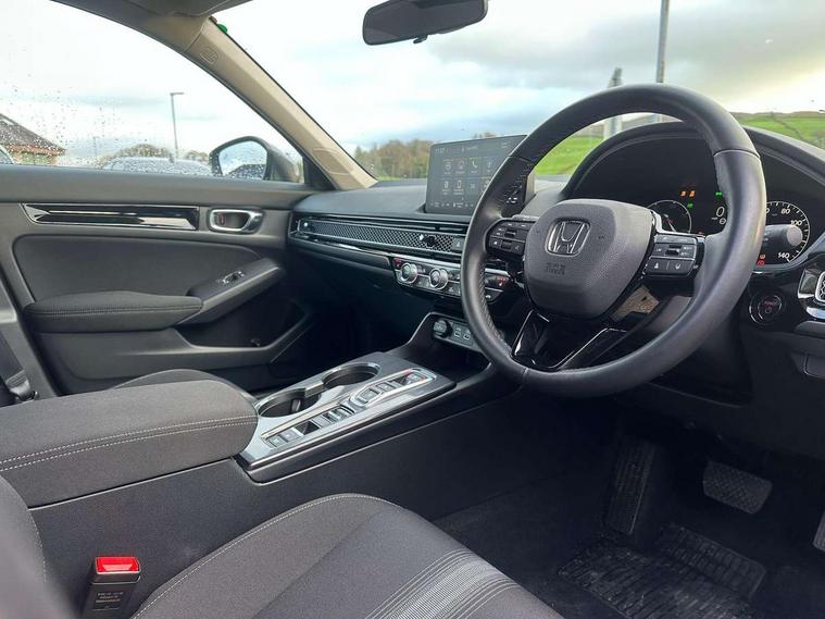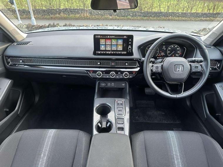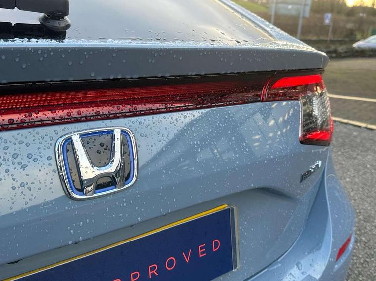 7" Multi information display screen, Adaptive cruise control, Adaptive motion for electric power steering, Adjustable speed limiter, Agile handling assist, BLIS (Blind Spot Information System) with Cross Traffic Monitor, Bluetooth hands free telephone connection, Driving modes, Economy mode, Electric power steering wheel with variable gear ratio steering, Emergency call service, Emergency stop signalling system, Forward collision warning, Front and rear parking sensors, Honda CONNECT with Navigation 9" touchscreen, AM/FM/DAB, Apple Carplay and Android Auto, live traffic info, Honda sensing, Idle stop, Intelligent speed limiter, Lane departure warning system, Lane keep assist, Low speed following, Power meter, Rear parking camera, Road departure mitigation, Tailgate, Traffic jam assist, Traffic sign recognition, Wireless apple carplay, Vehicle stability assist, 'Shark fin' mobile antenna, 2x USB Front socket (1 data & 1 charge), 8 Speakers, Digital Audio Broadcast (DAB) Tuner, Front tweeters, Steering wheel mounted audio controls, Aspherical driver door mirrors, Auto headlight adjuster, Auto headlights, Automatic coming/leaving home lighting function, Automatic rain sensing wipers, Body colour door handles, Chrome window garnish, Electric adjustable heated door mirrors, Electric front and rear windows, Electrically folding door mirrors, Headlight extension black, High beam assist, High level LED brake light, LED daytime running lights, LED front turn type, LED Headlights, LED rear lights, Material finish grille, Pop up hood, Privacy glass, Rear side wing doors, Rear wiper, Single hidden exhaust pipe, Variable front intermittent wipers, 3 seat bench in 2nd row, 60/40 split folding rear seat, Cargo accessory power socket, Cargo net hooks, Driver and front passenger seat armrests, Driver's electric lumbar adjustment, Driver's seat height adjustment, Dual climate control air conditioning system, Fabric upholstery, Front accessory power socket, Front map lights, Front/rear courtesy lights, Glovebox light, Heated front seats, Hybrid emblem, Isofix points/i size, Leather steering wheel, Meter Illumination white, Passenger seat back pocket, Platinum chrome interior door handles, Rear head restraints, Rear reading lights, Rear seat centre armrest, Single front passenger seat, Sunvisors with illuminated vanity mirrors, Tilt/telescopic adjustable steering wheel, Tonneau cover, Trunk light, USB Rear number 2 x charge, White ambient roof light, 3x3 point rear seatbelts, ABS+EBD+Brake assist, Airbags - driver and front passenger, Airbags - Knee (AS), Airbags - Knee (DR), Anti-whiplash front headrests, Brake hold function, Collision mitigation braking system, Collision mitigation throttle control, Deflation detection system, Driver SRS airbag (single stage inflation), Electronic parking brake with auto hold, Front and rear curtain airbags, Front and rear seat belts with emergency locking retractor (ELR), Front centre airbag, Front side airbags, Hill start assist, Low speed brake system, Manual child lock in rear doors, Passenger airbag deactivate switch, Rear airbags, Regenerative braking/deceleration paddle control, Immobiliser, Mirrors and windows key fob, Remote central locking with 2 jack knife keys, Security alarm, Selectable door unlock, Smart entry + Smart start, Superlocking, Tilt sensors, Ultrasonic security sensor, 17" 2 tone diamond cut alloy wheels, Tyre repair kit,