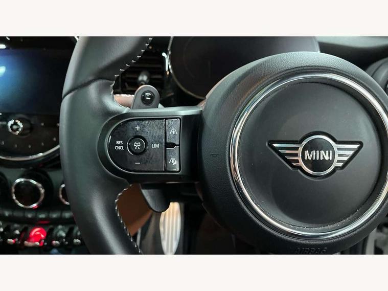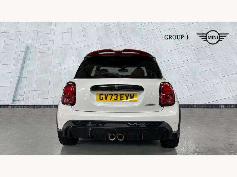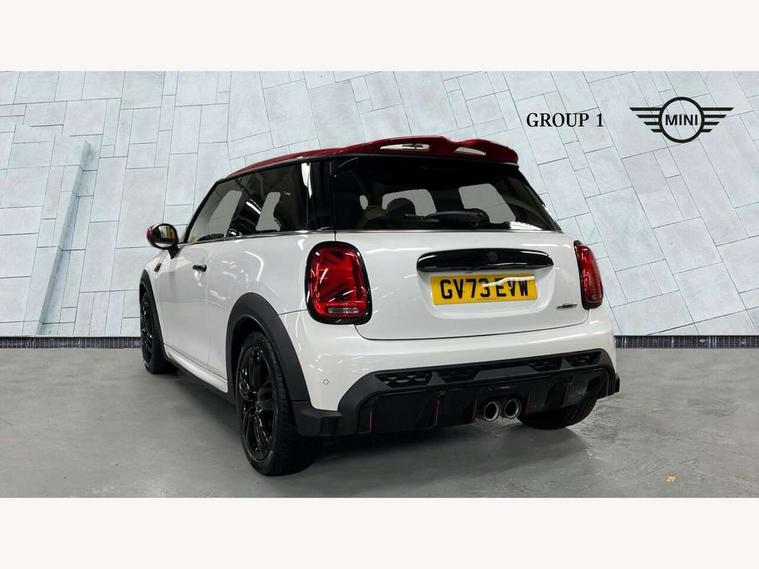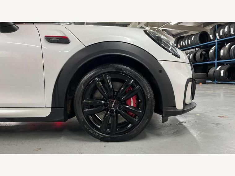 Apple CarPlay, Automatic start/stop function with brake energy recuperation, Compatible mobile phone bluetooth with audio streaming, Cruise control with brake assist, Electro-mechanical speed dependant steering assistance, Flexible car sharing preparation, Instrument cluster, MINI Driving Modes - centre toggle switch to control driving setting (sport, mid and green), Mini E-call, MINI TeleServices, On board computer, Rear park distance control, Service interval indicator, Double Vanos system, Eight speed steptronic sport transmission, with gearshift paddles, Fully variable valve control, High precision injection, Performance Control, 8.8" touchscreen with LED ring, FM tuner and DAB digital radio, 3rd brake light, Automatic headlight activation switch, Bonnet scoop, Dynamic brake lights, Electric front windows, Heated rear window, Heated windscreen washer jets, JCW Aerodynamic kit - Front and rear bumpers with sporty JCW styling and part-painted side sills with MINI John Cooper Works door sill finishers, John Cooper Works logo above an individual grille strut in Chilli Red, John Cooper Works rear spoiler, LED headlight with closed ring and daytime driving lights, Radiator grille piano black border with honeycomb structure in black matt, Rain sensor window wipers, Rear fog lights, Rear LED lights with union jack design, Rear window wiper, Side scuttle panel with integrated indicator, Side scuttle with MINI John Cooper Works logo in black high-gloss with red border, Sun/heat protection glass, Two central exhaust tailpipes with chrome finisher, White indicator lenses, 12V Accessory socket in centre console, 2 seat bench in 2nd row, 4 lashing eyes in luggage compartment, 60/40 split folding rear seat, Anthracite headliner including grab handles and clothes hooks, Carbon black colour line - Knee roll and door armrest, Chrome interior highlights, Cupholders, Front and rear isofix with front passenger airbag deactivation, Front floor mats in velour, Glove compartment, Height and length steering column adjustment, Interior lighting with 12 different colours across the dashboard, underneath door bezel with illuminated laser-engraved design on central display, JCW Sport seats with integrated headrests, adjustable thigh support and John Cooper Works logo, Leatherette gearshift lever and handbrake gaiters, LED reading lights, vanity mirror lights, front foot well light and spotlight on front seats, Manual air conditioning, Mechanical seat adjustment - forward/back & backrest for front seats and driver seat height adjust, Multifunction steering wheel, Passenger seat height adjuster, Rubberised stainless steel pedals, Single front passenger seat, Storage compartments in doors, Storage pocket on back of front seats, Sunvisors with vanity mirrors, Walknappa leather steering wheel with grey seam and John Cooper Works badge on Piano Black lower steering wheel spoke, Navigation pack without Apple Carplay - Mini Hatchback, Piano black exterior pack - JCW, 3 point seatbelts on all four seats, 4-piston fixed-calliper brakes front, 6 Airbags - front, side, head and seat belt tensioners, Anti-lock braking system (ABS), DSC - Dynamic Stability Control, Front and rear disc brakes, Red brake callipers with John Cooper Works logo, Single tone fanfare horn, Tyre pressure monitoring system, Alarm system with tilt sensor, monitoring doors, bonnet interior and tailgate, Electronic vehicle immobiliser, Start/stop toggle with keyless go, Tool kit,