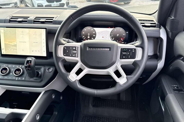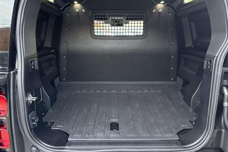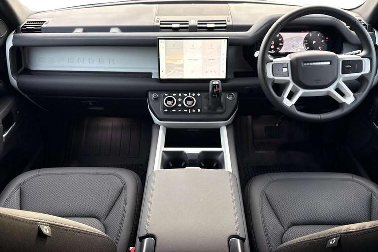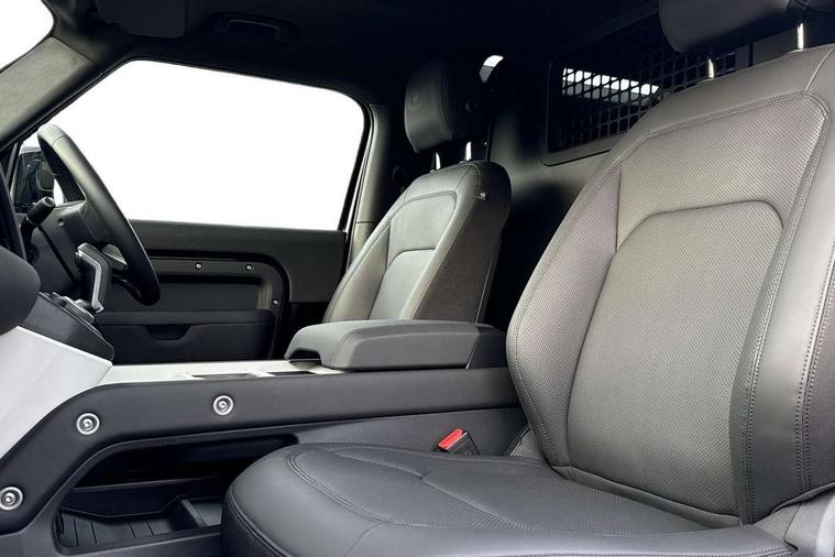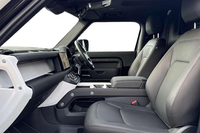 Customer Configurable Autolock, 11.4" touchscreen, 360 parking aid, 3D Surround Camera with 360 View, 180 Rear View, Front Traffic Detection, Forward Vehicle Guidance, Tow Hitch Assist and clear sight Ground View, Adaptive cruise control, Brake Hold, Driver condition monitor, Electric power assisted steering (EPAS), Lane keep assist, Low traction launch, Pivi pro connected, Traffic sign recognition adaptive speed limiter, Trip computer, Tyre pressure monitor, Android Auto, Apple CarPlay, DAB Radio (Digital Audio Broadcasting), Alpine lights, Assisted tailgate, Auto High Beam Assist, Automatic headlight levelling, Automatic headlights and rain sensitive front wipers, Body coloured bonnet, Centre high mounted stop light, Electric heated/power fold door mirrors with approach lights and auto dimming driver side, Electric windows with one touch open/close and anti-trap, Exterior signage panel, Follow me home lighting, Heated rear window with timer, Heated windscreen, LED tail light, Premium LED headlights with signature DRL, Privacy glass, Puddle lights, Rear fog lights, Rear wash wiper, Side-hinged tailgate, Standard roof, Standard tail door, Standard tread plates, 12 way heated semi powered front seats including rear centre armrest, Additional lashing points, Dual zone climate control, Durable rubber cabin flooring, Footwell lights, Full height bulkhead behind row 1 seats, Glovebox storage, High sided rubber mats, Loadspace cover, Loadspace hooks, Loadspace rubber mat, Overhead stowage for sunglasses, Rear centre headrest, Rear reading light, Resist gearshift, Standard interior, Standard Non-Leather steering wheel, Standard seating configuration, Sunvisors with illuminated vanity mirrors, Upgraded loadspace LED lighting, Online pack - Defender with data plan, Brake pad wear indicator, Cross car beam in Light cloud Powder Coat finish, Electronic traction control, Emergency braking, Front airbags, with passenger seat occupant detector, Power operated child locks, Remote for (e-Call, Optimised assistance call, InControl app, Climate, beep and flash and door), Seat belt reminder, Intrusion sensor, Keyless entry system, Locking wheel nuts, Spare wheel lock, 8 speed automatic transmission, ABS and EBA, All wheel drive, CBC - (Cornering brake control), Dynamic stability control, Electronic brake force distribution, Electronic park brake, Gradient acceleration control, Hill Descent Control, Hill start assist, Particulate filter (DPF), Push button start, Roll stability control, Trailer stability assist, Twin speed transfer box (high/low range),