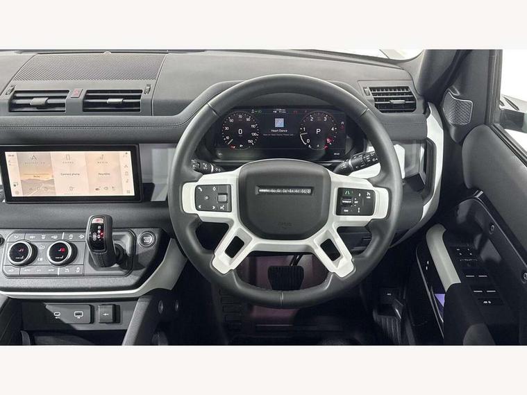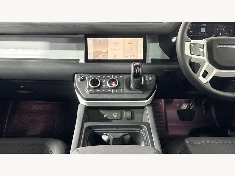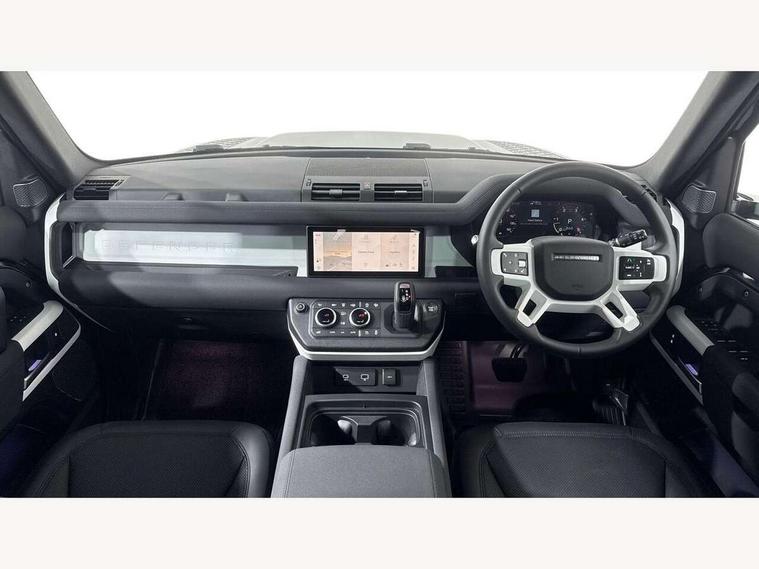 360 degree parking aid, 3D Surround Camera with 360 View, 180 Rear View, Front Traffic Detection, Forward Vehicle Guidance, Tow Hitch Assist and clear sight Ground View, Adaptive cruise control, Android Auto, Apple CarPlay, Assisted tailgate with soft close, Blind spot assist, Bluetooth system, Brake pad wear indicator, Clear exit monitor, Connected navigation pro, Driver condition monitor, Electric power assisted steering (EPAS), Interactive driver display, Lane keep assist, Push button start, Rear traffic monitor, Traffic sign recognition with adaptive speed limiter, Trip computer, Wade Sensing, 8 speed automatic transmission, All wheel drive system, Twin speed transfer box, DAB Radio (Digital Audio Broadcasting), Pivi pro connected, Auto dimming interior rear view mirror, Automatic headlight levelling, Automatic headlights, Centre high mounted stop light, Electric heated/power fold door mirrors with approach lights and auto dimming driver side, Electric windows with one touch open/close and anti-trap, Follow me home lighting, Heated rear window with timer, Heated windscreen, LED tail lights, Puddle lights, Rain sensing windscreen wipers, Rear fog lights, Rear side wing doors, Rear wiper, Side hinged tailgate, Trailer stability assist, 12V power socket in loadspace, 3 seat bench in 2nd row, Alpine lights, Configurable cabin lighting, Durable rubber cabin flooring, Durable rubber loadspace flooring, Footwell lights, Front passenger isofix child seat attachment, Loadspace cover, Loadspace Hook, Multifunction steering wheel, Overhead stowage for sunglasses, Premium cabin lighting, Rear headrests, Rear ISOFIX, Rear reading lights, Single front passenger seat, Standard seat configuration, Storage glovebox, Sunvisors with illuminated vanity mirrors, Online pack with data plan - Defender, 5 x 3 point seatbelts, ABS, Brake hold function, Cornering brake control (CBC), Customer configurable autolock, DSC - Dynamic Stability Control, EBD - Electronic brakeforce distribution, Electric parking brake (EPB), Emergency brake assist, Emergency braking, ESP + traction control, Front airbags with passenger seat occupant detector, HDC - Hill descent control, Hill launch assist, Low traction launch, Power operated child locks, Remote for (e-Call, Optimised assistance call, InControl app, Climate, beep and flash and door), RSC - Roll stability control, Seat belt reminder, TPMS (Tyre pressure monitoring system), Alarm, Immobiliser, Intrusion sensor, Keyless entry, Locking wheel nuts,