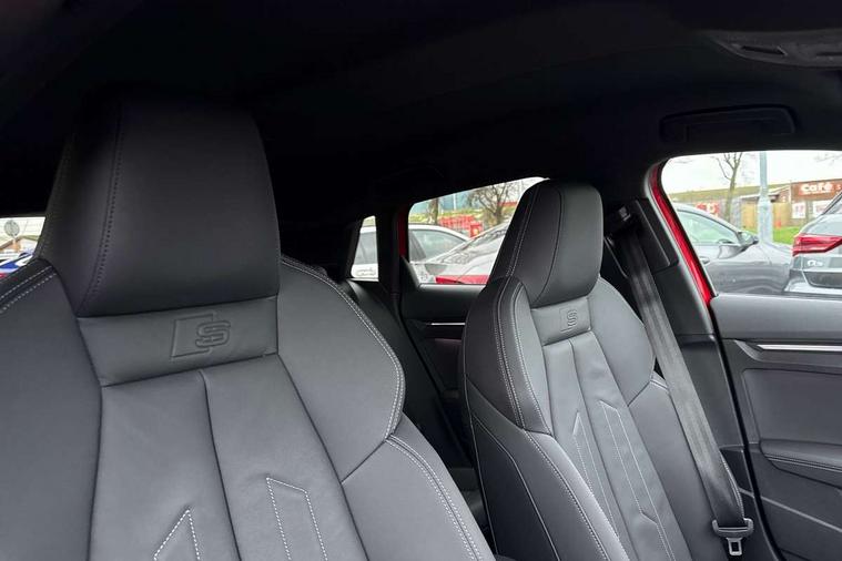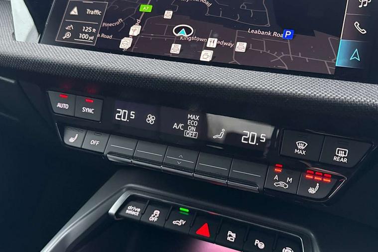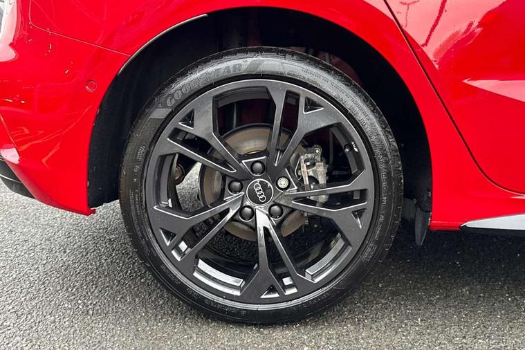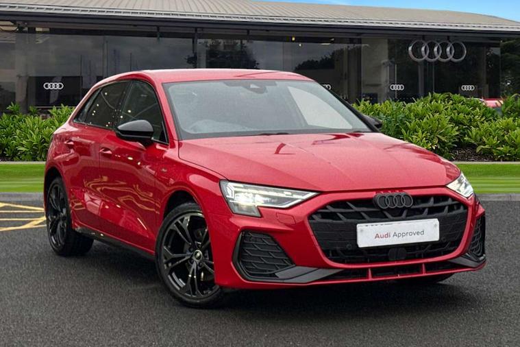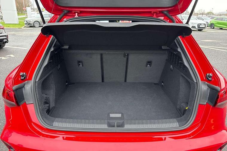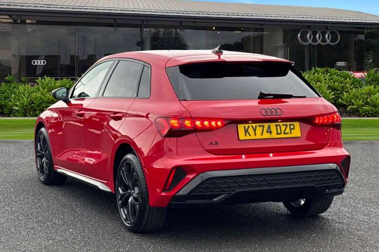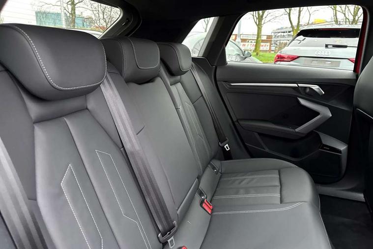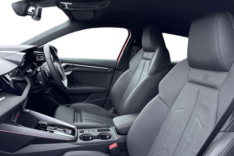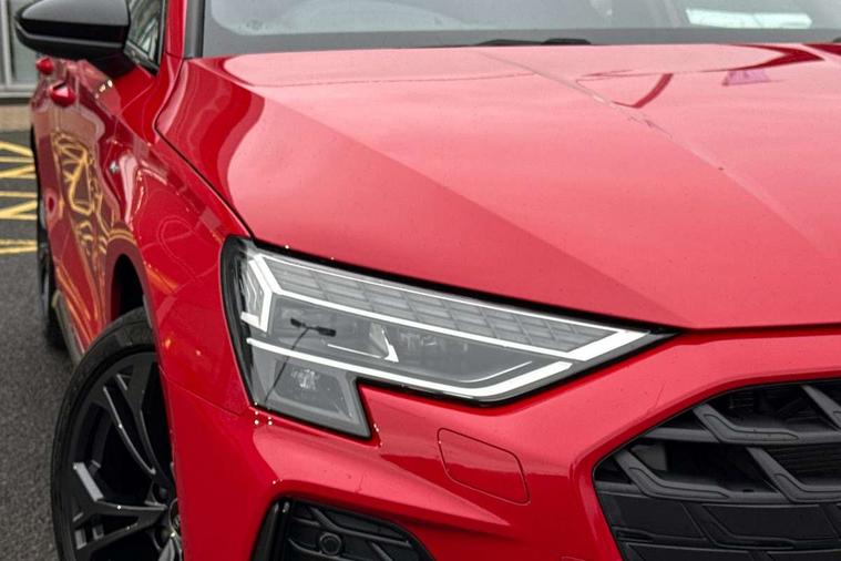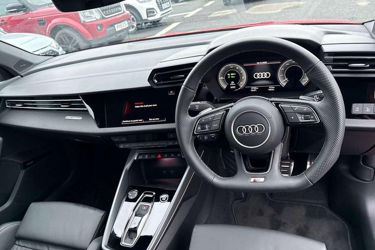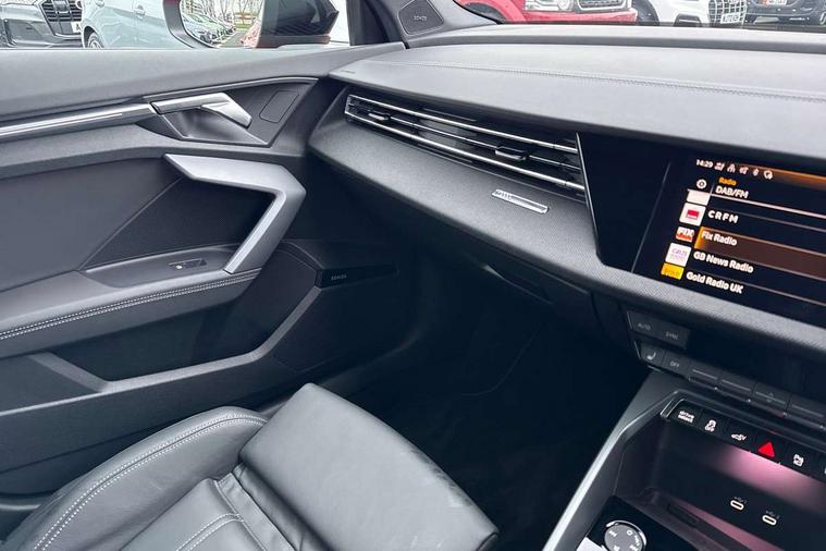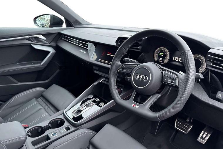 Adjustable speed limiter, Audi drive select, Audi smartphone interface with app store includes wireless Apple carplay, Android auto and Amazon alexa integration, Audi virtual cockpit plus - 12.3" full HD resolution dynamic digital instrument cluster, Automatic start/stop system with recuperation, Bluetooth interface, Camera based traffic sign recognition, Collision avoidance assistant, Cruise control, Distraction and Fatigue warning, e-Call (emergency call), Electromechanical power speed sensitive steering, Lane departure warning system, MMI Navigation Plus with high resolution 10.1" colour touch screen display, Park Assist with parking system Plus, Service indicator, Trip computer, Voice control system with natural language interaction, 3 pin 10 amp domestic charging cable, CCS socket for DC charging, Charging cable for public charging, mode 3 (type 2), up to 22 kW (AC), Compact charging system, Industrial connector CEE 16 A, 400 V, length 1.6 m, Standard suspension, Type 2 socket for AC charging, Audi Phonebox light with wireless charging, Audi sound system - 10 loudspeakers including centre loudspeaker and subwoofer, DAB Digital radio, USB ports with charging function in the rear, Acoustic glass windscreen, Anthracite grey Audi rings (front and rear), Audi beam uses LEDs to project the Audi logo onto the ground as you exit your A3, Auto dimming frameless rear view mirror, Black accents front and rear bumpers, Black accents in the area of the Audi single frame grille, Black accents window trims strips, Electrically adjustable/heated/folding/auto dimming door mirrors with integrated LED indications + kerb view function for passenger side, Exterior model badging, Front electric windows, Heat insulating glass windscreen, Illuminated door sills with aluminium inserts at the front with S logo, LED 3rd brake light, LED daytime running lights, LED headlights with LED rear lights and dynamic rear indicators, Light and rain sensors, Privacy glass - dark tinted rear window, rear door and side windows, Rear electric windows, Rear side wing doors, Rear wiper, 12V socket and storage compartment in front centre console, 3 seat bench in 2nd row, 3 spoke flat bottomed leather multifunction sport steering wheel with gear shift paddles, 3-zone deluxe automatic air conditioning, 4 way electrically adjustable lumbar support for driver and front passenger, 40/20/40 split folding rear seat bench, Black cloth headlining, Convenience auxiliary air conditioning, Front and rear centre armrest in artificial leather, Front and rear centre armrest in artificial leather with contrasting stitching on armrests and instrument panel, Front and rear headrests, Front/rear floor mats, Heated front seats, Height and reach adjustable steering wheel, Manual boot compartment lid, Manually adjustable front seats, Rear cup holders, S badging on the steering wheel, Seat side bolsters, Single front passenger seat, Stainless steel pedals and front footrest in black, Twin leather upholstery with front sports seats S embossed logo, Aluminium interior elements pack - A3 Sportback, Multi-coloured LED interior lighting package - A3 Black Edition, 3x3 point rear seat belts, Acoustic vehicle alerting system, Driver and front passenger airbag with passenger airbag deactivation, Electronic Stabilisation Control (ESC) including ABS, ASR and EDL, First aid kit with warning triangle and 2 safety vests, Front side airbags with head airbags and interaction airbag, Hill hold assist, Pre-sense front with pedestrian and cyclist detection, Seatbelt monitoring, Tyre pressure loss indicator, Anti theft alarm, Anti-theft wheel bolts, Electronically operated child locks, Immobiliser, Remote central locking with safelock, Inlays in black Impressum woven textile, 18" 5 Y twin spoke style alloy wheel in metallic black, Tyre repair kit,