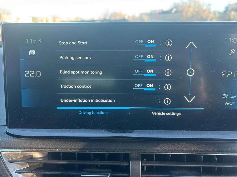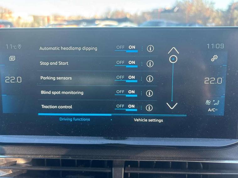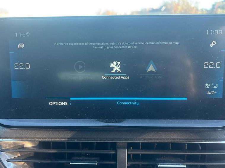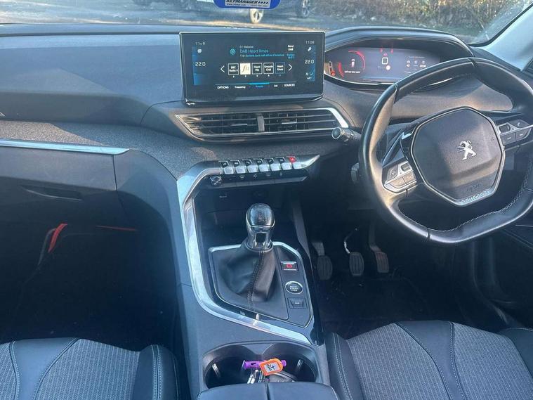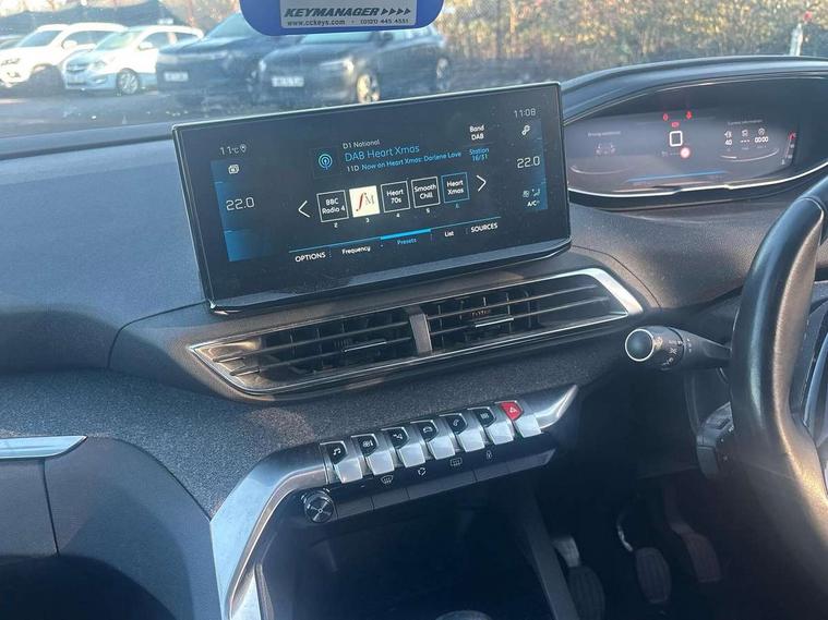 3D connected navigation with 10" HD touchscreen, Bluetooth telephone facility, Drive modes select (Eco, normal and sport), Driving Time Warning (DAA1), Emergency services call system, Extended traffic sign recognition, Exterior temperature indicator with ice warning, Front parking sensors, Mirror screen with mirror link, apple carplay and android auto, Multi function trip computer, PEUGEOT i-Cockpit with 10" high definition capacitive touchscreen, Peugeot i-cockpit with compact multi-function sports steering wheel, PEUGEOT i-Cockpit with configurable 12.3" Head-up digital instrument panel, Rear parking aid, Speed limit recognition and recommendation, Voice recognition, Dynamic stability control and electronic anti-skid system, Stop/start function, 6 speakers radio with mp3 compatible, DAB Digital radio, USB socket, Aluminium longitudinal roof bars, Automatic hazard light activation upon heavy brake application, Automatic triggered rear windscreen wiper in reverse gear, Black rubber side window trim, Black with chrome detailed front wing trim, Body colour door handles, Body colour rear roof spoiler with stainless steel edging trim, Body protectors (bottom of front and rear bumpers + wheel arches + protection at bottom of doors) in black, Chrome frameless 'Classic' grille, Chrome rear bumper facia, Dark tinted rear side windows + tailgate window, Diamond Black door mirror shells, Door mirror mounted LED courtesy floor lighting, Eco LED headlights, Electric folding door mirrors with exterior courtesy LED lighting, Electric operated/heated door mirrors, Front and rear door and sill protectors with polished stainless steel insert, Front bumper lower trim in Silver, Front windscreen wiper with magic wash cleaning system, Gloss black B and C pillar and aerodynamic deflector trim, Gloss black front bumper air scoops, Gloss black rear cluster connecting strip, Gloss black windscreen trim, Headlights left on audible warning, Heated rear windscreen with integrated antenna, LED daytime running lights, LED front indicator, LED rear number plate lighting, LED side indicator lights integrated into door mirrors, LED third brake light, One touch electric front/rear windows with pinch protection, Rear LED Peugeot signature 'Claw Effect' lights, Rear side wing doors, Stainless steel roof arches, 1/3 to 2/3 split folding rear seats, 12V Sockets in dashboard, rear cabin and load area, 2 cupholders in front centre console, 2 cupholders in rear armrest, 2 x Rear reading spotlights, 2x Rear coat hooks, 3x Isofix child seat fittings in the front passenger and outer rear seats, 4 Grab handles retractable and damped, Blue ambient lighting for connecting zone, Blue ambient lighting to front door panels, Blue ambient lighting to headup instrument panel, Brumeo fabric trimmed door armrests, Centre front armrest with butterfly wing opening and illuminated storage compartment, Driver seat lumbar adjustment, Driver seat manual adjustment (longitudinal and back rest angle), Dual zone automatic climate control, Electric power steering with reach and rake adjustable steering column, Flocked glovebox interior, Foldable front passenger seat with picnic table, Footwell illumination, Front interior light with 2 reading spotlights and rear interior light with timer, Front passenger seat manual adjustment (longitudinal and back rest angle), Front seat back map pockets, Gear shift indicator, Height adjustable front seats, Illuminated glovebox, Individual left and right controls in boot for seat folding, Leather steering wheel with detail stitch, LED interior lighting in storage spaces and load area, LED roof interior lighting, Rear bench seat with central armrest and ski hatch, Rear centre console ventilation system, Roof lining - Salin light grey, Satin chrome dashboard trim, Satin chrome digital instrument panel and touchscreen trim, Satin chrome front door panel recess trim, Satin chrome interior door handles, Satin chrome scorpion's tail and toggle switch trim, Seatbelt not fastened audible and visual alert for front seats, Seatbelt unfastened on the move audible and visual alert for front and rear seats, Sunvisors with illuminated vanity mirrors, Two position boot floor, Safety plus pack with high beam assist - 3008, Visibility pack - 3008, 3x Rear three-point retractable seatbelts with force limiters in the outer rear seats, ABS (Anti-lock Braking System) with EBD (Electronic Brakeforce Distribution) and EBA (Emergency Braking Assistance), Adaptive driver and front passenger airbags with passenger airbag deactivation function, Driver and front passenger side airbags, Electric child locking functionality on rear windows and doors, Electric parking brake, Front and rear curtain airbags, Front optimised safety headrests and 3 x rear retractable headrests with height adjustable, Front three point retractable seatbelts with pre tensioners and force limiters, Front ventilated disc brakes and rear disc brakes, Hill start assist, Two tone horn, Automatic door locking when moving off, Electronic immobiliser, key operated exterior door lock from the left hand door, Perimetric and volumetric alarm with lift and tilt sensor, Peugeot Open and Go System, Remote control central locking with two plip keys, Brumeo fabric Dashboard, front and rear door panel finish, Puncture repair kit including compressor, sealant cartridge and towing eye,