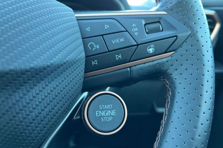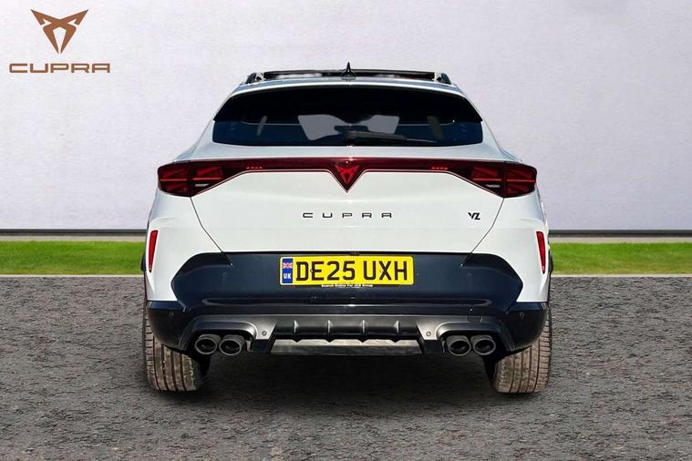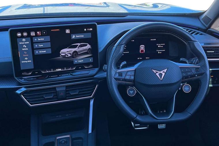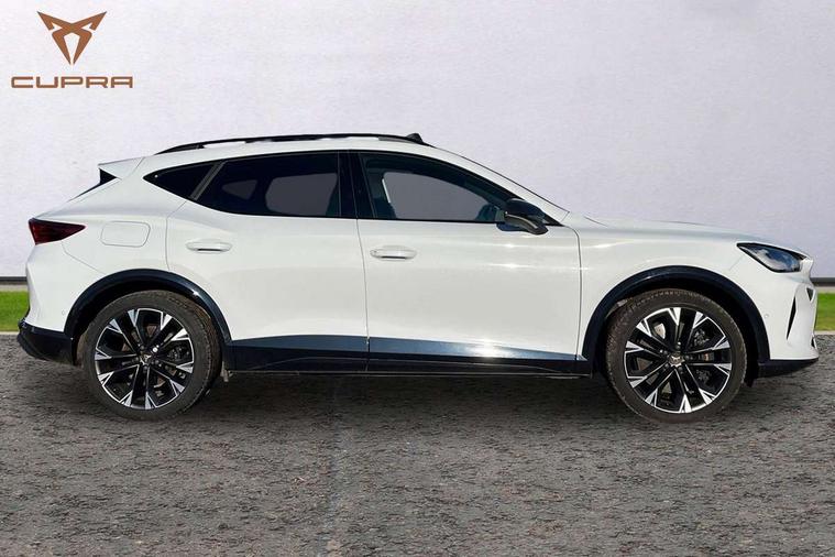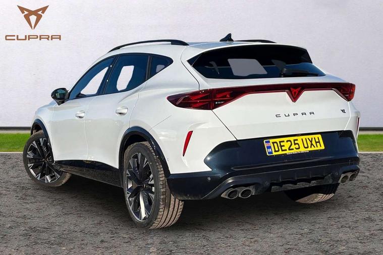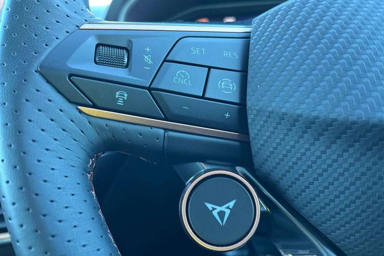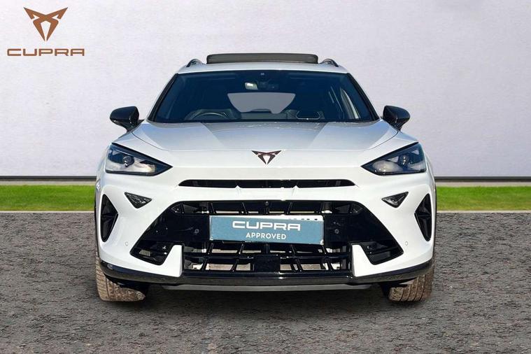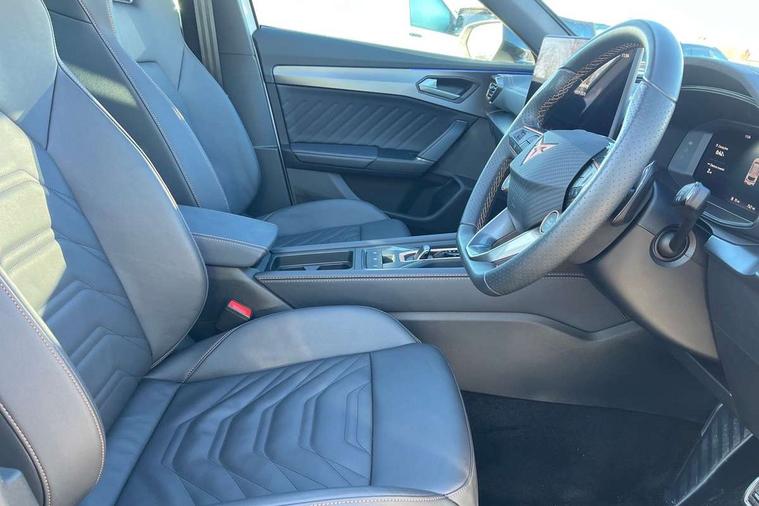 10.25" digital cockpit and configurable dashboard, Adaptive cruise control with follow-to-stop and speed limiter, Advanced driver alert system, Advanced lane assist with semi-automatic vehicle control in a medical emergency and traffic jam assist, Dynamic chassis control with driving profile selection (Comfort, Sport, CUPRA, Individual), Dynamic road sign display, Emergency steering support with turn assist, Forward collision warning with automatic braking, Full link phone integration, Intelligent park assist, RPM, trip computer, outside temp gauge, instrument light brightness, low fuel warning light, lights on reminder, gearshift indicator, Service interval indicator, Side and exit assist, Speed sensitive power steering, Start/stop system with regenerative braking, Top view camera, Virtual pedal and electric tailgate, Voice control system, Wired Android Auto, Wireless apple carplay, Wireless phone charger, Adaptive chassis control with continuous operation, CUPRA sport suspension, Electronic locking differential and dynamic traction support, 2 front and 2 rear USB type C sockets, Media system with navigation, 12.9" touchscreen display, voice control, DAB, steering wheel mounted controls, Auto dimming rear view mirror, Body colour door handles, Body coloured bumpers, Dark grey wing mirror, Daytime running light with automatic headlight control and coming home feature, Door panel ambient lighting, Dynamic headlight range control, Electric front/rear windows, Electrically adjustable heated and folding door mirrors with memory function, Gloss black roof rails and window surrounds, High beam assist, LED 3rd brake light, LED front fog lamps with cornering function, LED Taillights with dynamic indicator, Matrix LED headlights with multifunction camera, Rain sensing wipers, Rear diffuser with twin exhaust pipe on each side, Rear fog lights, Rear side wing doors, Rear wash/wipe, Tinted rear windows, Welcome lights (within exterior mirror housing), 12V socket, 2 front and 2 rear reading lights, 3 seat bench in 2nd row, 60/40 split rear bench seat with armrest and mechanical seat release, Black headlining, Black interior roof lining, Cupra sports pedals, Dust/pollen filter, Electrically adjustable front seats with lumbar support and memory function, Front and rear head restraints, Front centre armrest, Heated front seats, Heated supersports multifunction leather steering wheel with satellite buttons and gear shift paddles, Height/reach adjust steering wheel, Illuminated aluminium doorsteps, Illuminated interior front door sills, Illuminated sunvisor with mirror, Isofix, Leather dashboard, door insert and side trim panel, LED smart wraparound lighting, PVC/Leather upholstery, Satellite steering wheel, Single front passenger seat, Storage pockets on rear of front seats, Three zone climate control with control panel in rear, Variable luggage/load compartment floor, 3 point seatbelts on all rear seats, ABS, Brake control system - ESC and brake booster, Child proof door locks, Driver and front passenger airbags with front passenger airbag de-activation, Electronic parking brake, Front and rear disc brakes, Front side curtain airbags, Hill hold control, Pre-crash front and rear seat belt tensioner, window closure and hazard lights, Public e-call, Seat belt reminder for front and rear seats, Tyre pressure monitoring system, Anti theft alarm system, KESSY Advanced - Keyless start, keyless entry with SAFELOCK, Locking wheel bolts, Copper and aluminium interior detailing, 19" Artic machined sport black and silver alloy wheels, Breakdown and tool kit,