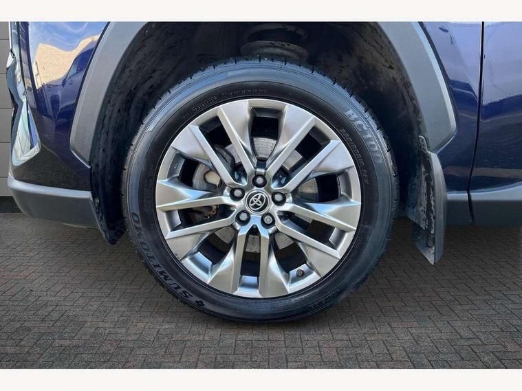7" TFT multi information display, Analog tachometer, Apple car play and Android auto, Blind spot monitoring with rear cross traffic alert, Bluetooth system, Cyclist Detection, Drive mode selector, eCall emergency call system, ECO-driving indicator, Electric power steering, EV audible alert, Front parking sensors, Full range intelligent adaptive cruise control, Hybrid system indicator, Lane departure warning system, Lane trace assist, Lights on warning, Low screen washer fluid warning, Memory on adjustable speed limiter, My T Connected services, Night Time Pedestrian Detection, Power boot opening and closing, Push button start, Rear parking camera, Rear parking sensors, Remote boot door release in cabin, Remote boot door release in key, Road sign assist - RSA, Touch 2 Go navigation system including 3D maps and voice control, Traffic sign recognition, Trip computer, Voice control system, Vehicle Stability Control (VSC), 6 speakers, 8" Multimedia display touch screen, Auxiliary socket for external MP3 player, DAB audio, Toyota touch media system, USB connection, Adaptive automatic high beam, Automatic headlamp levelling, Automatic headlights, Automatic wipers, Automatically retractable door mirrors, Black roof rails, Body colour door handles, Body colour door mirrors, Body colour rear spoiler, Body colour roof, Body coloured bumpers, Body coloured Shark-fin antenna, Door mirror puddle lights, Dual exhaust pipes, Electric adjustable door mirrors, Electrochromatic rear view mirror, Emergency brake-light signal (EBS), Follow me home headlights, Front fog lights, Front wiper de-icer, Headlight cleaners, Heated door mirrors, LED daytime running lights, LED High mounted stop lamp, LED rear combination lights, Meshed upper front grille, Power front windows, Power rear windows, Privacy glass, Projector LED headlights, Rear screen wiper - intermittent, Rear windscreen defogger, Silver front under-run, Silver rear under-run, Trailer sway control, Turning signal integrated indicators in door mirrors, 3 rear headrests, 60/40 split fold rear seat back, Boot light, Clean air filter, Driver and front passenger personal light, Driver and front passenger Whiplash Injury Lessening seats, Driver and passenger sunvisors with illuminated vanity mirrors, Driver seat memory function, Dual sided deck board in boot, Dual zone automatic air conditioning, Floor mats, Folding rear centre armrest, Front and rear bottle holders, Front centre armrest, Front footwell lights, Front headrests, Front seat and rear pockets, Front/rear roof mounted assist grips, Grey roof lining, Heated driver and front passenger seats, Heated steering wheel, Illuminated entry system, Isofix child seat preparation, Leather gear shift with chrome surround, Leather upholstery, Light blue ambient lighting on front cupholders and open tray, Manual telescopic and tilt 3-spoke leather steering wheel with Chrome insert, Manually reclining and sliding front passenger seat, Multimedia switches on steering wheel, Pollen filter, Power height-adjustable sliding reclining and lumbar support for driver seat, Rear coat hooks, Rear door armrests, Rear passenger air vents, Rear view display in display audio screen with dynamic guide lines, Reclining rear seats, Satin chrome interior door handles, Sunglasses holder, Telephone and voice recognition switches on steering wheel, 3x3 point rear seatbelts, ABS/EBD, Acoustic vehicle alerting system, Adjustable front driver and passenger seat belt extender, Brake assist function, Brake hold function, Child proof door locks, Collision mitigation braking system, Driver/Front Passenger airbags, Driver/front passenger side airbags, Drivers knee airbag, Electronic parking brake, Electronic Stability Programme (ESP), Front and rear curtain airbags, Front and rear seatbelt reminder, Front passenger airbag detector, Hill start assist, Passenger airbag cut-off device, Pedestrian detection, Pre collision system, Seatbelt pretensioners with load limiters, Toyota safety sense, Traction control, Tyre pressure warning, Glass-breaking alarm sensors, Immobiliser, Intrusion alarm, Light - on and Key in reminder, Motion sensor alarm, Remote central locking, Smart entry + Smart start, Speed sensitive auto door locking, Tilt detection sensors, Piano black centre console with silver insert, Soft-touch black lower dashboard, Soft-touch black upper dashboard with silver insert, 19" 5 spoke silver alloy wheels, Tyre repair kit,