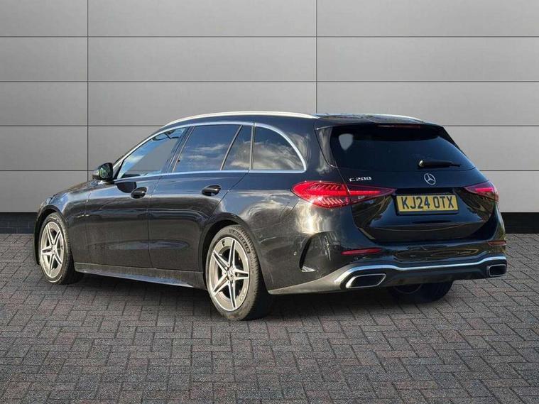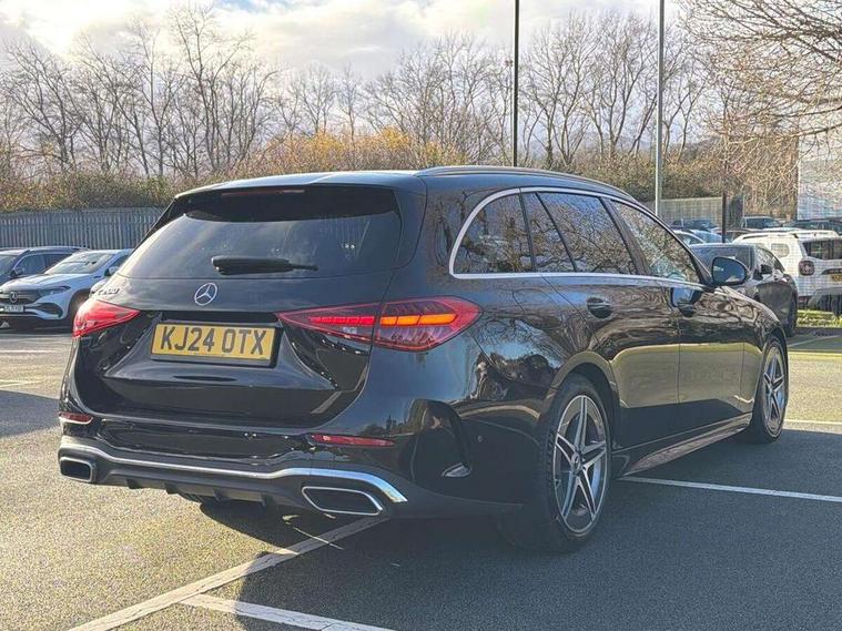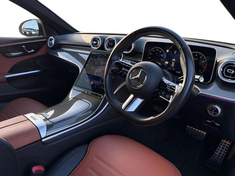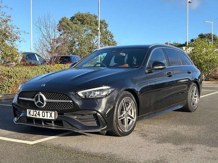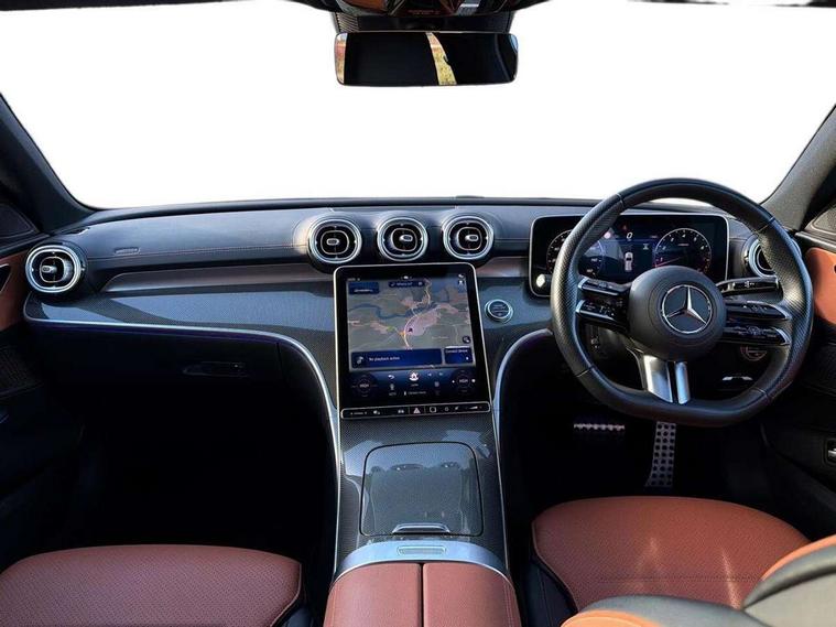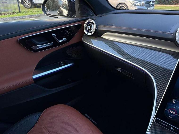 11.9" high resolution multimedia colour display, 12.3" digital instrument cluster display, Active lane keeping assist, Active parking assist with PARKTRONIC, Attention assist, Blind spot assist, Cruise control with speedtronic variable speed limiter, DYNAMIC SELECT with a choice of driving modes (Comfort, ECO, Sport, Sport+, Individual), E-call, Extended MBUX functions, Finger print sensor, Fluorescent jacket for driver, Hard disc navigation, MBUX navigation premium, Mercedes me remote services, Outside temperature gauge, Service indicator (ASSYST), Smartphone integration, Sports direct steer speed sensitive steering, Status display for rear seat belts in instrument cluster, Tailgate, Traffic sign assist, Wireless charging system for mobile devices, 9G TRONIC 9 speed automatic transmission, Petrol Particulate Filter, Sport suspension, DAB Digital radio, MBUX multimedia system, Adaptive brake lights, Adaptive high beam assist, Aluminium roof rails, AMG body styling front apron, rear apron and side skirts, AMG Line exterior, Body coloured bumpers, Body coloured door mirrors, Electric windows with one touch opening/closing and obstruction sensors, Electrically adjustable and heated door mirrors, Heat insulating dark tinted glass, LED daytime running lights, LED high performance headlamps, LED Indicators, LED tail lights, LED third brake light, Radiator diamond grille with integrated Mercedes Benz star and louvre silver with chrome pins, Rain sensor with automatic windscreen wiper activation, Rear side wing doors, Rear wiper, Two visible exhaust pipes integrated into rear bumper, 3 seat bench in 2nd row, 40:20:40 split folding rear bench seat, Ambient lighting premium, Ambient lighting with projection of brand logo, AMG floor mats, AMG line interior, Artico man-made leather upholstery, Auto Mercedes-Benz child seat recognition sensor, Black roof liner, Double cupholder in centre console, Electrically height/reach adjustable steering column, Folding rear seat backrest, Front and rear head restraints, Gearshift paddles on steering wheel, Heated front seats, Illuminated door sills with Mercedes Benz lettering, Illuminated glove compartment stowage, Load compartment cover, Multifunction sports steering wheel in nappa leather, Rear top tether child seat ISOFIX attachment, Single front passenger seat, Sports seats, Sunvisors with illuminated vanity mirrors, THERMATIC 2 zone automatic climate control, Boot comfort package - C Class, Easy pack tailgate - C Class, Interior light package - C Class, Memory package - C Class, Mirror package - C Class, Parking package with reversing camera - C Class, Stowage space pack - C Class, USB package plus - C Class, 3 rear 3 point seatbelts, Active bonnet pedestrian safety measure which detects an impact and raises bonnet, Active brake assist, Adaptive brake system with HOLD function and brake drying in the wet, Anti-lock braking system (ABS), Black seat belts, Brake calipers with Mercedes-Benz lettering + perforated front brake discs, Child proof door locks, Drivers knee airbag, Drivers pelvis airbag, Dual stage driver/passenger airbags, Electric parking brake, Electronic Stability Programme (ESP), Front centre airbag between driver and front passenger seats, Front side airbags, Tyre pressure monitoring system, Warning triangle and first aid kit, Window airbags for driver, front passenger and rear passenger, Antitheft alarm system, Interior monitoring system and Increased antitheft protection, Central locking with interior switch, automatic locking and crash sensor with emergency opening function, Chrome surround in electric key, Keyless Go, Urban guard vehicle protection plus, Dashboard, instrument panel and beltlines in ARTICO man made leather in nappa look, Metal structure trim element with centre console in metal structure finish, 18" AMG 5 spoke design aerodynamically optimised alloy wheels painted in tantalite grey with high sheen finish, TIREFIT with tyre inflation compressor,